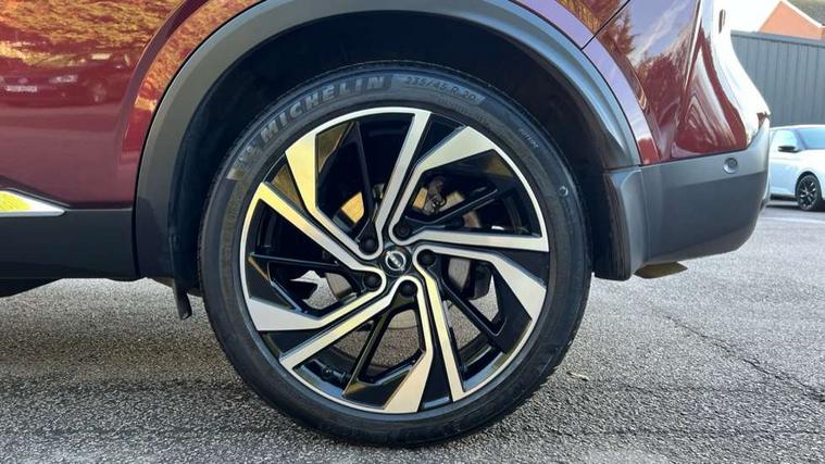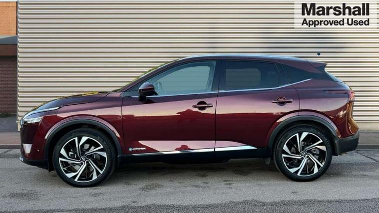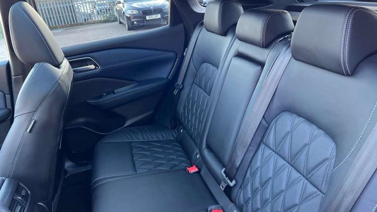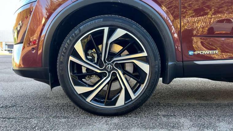 Advanced windscreen head up display, Blind spot warning, Drive modes (sport, normal, eco), e-Pedal step, Electric speed sensitive power steering, Emergency and breakdown call, Front and rear parking sensors, Full Digital 12.3" TFT Digital Combimeter, Google maps services - search, weather, 3D maps and Google street view, Hands free power tailgate, Idle stop/start system, Intelligent around view monitor, Intelligent Cruise control (ICC), Intelligent driver alert system, Intelligent forward collision warning, Intelligent lane intervention, Lane departure prevention, Lane departure warning system, Lane keep assist, Moving object detection, Nissan connect 12.3 inch touchscreen infotainment system, Nissan connect navigation, Pro pilot park assist, Push button starter, Rear cross traffic alert, Rear view camera, Remote control services - door locks, lights, horn and car locator, Telematics - notifications and connectivity services, TomTom live traffic services, Traffic sign recognition with legal speed adjustment, Trip computer, Virtual personal assistant and firmware over the air capability, Wireless Apple CarPlay and wired Android Auto, Wireless charging pad, 10 Bose speakers - 2 tweeters, 6 high and medium frequency door speakers and 2 in subwoofer, AM/FM audio system with DAB, Bluetooth audio streaming, Bose acoustimass bass box, Digital amplifier, Front USB connections (Type-A and Type-C), Rear USB charging only ports (Type-A and Type-C), Auto dimming rear view mirror, Auto rear wiper when reversing, Automatic hazard signal with emergency stop signal, Body colour mirror caps, Body coloured door handles, Bodyside mouldings, Chrome side window finisher, Door handle with button, Door mirror memory, e-POWER badging, Electric auto folding door mirrors, Electrically adjustable and heated door mirrors with LED turn indicator, Follow me home headlights, Front and rear LED turning signals, Headlights auto levelling system, Intelligent auto headlights, LED 3rd brake light, LED daytime running lights, LED front fog lights, LED headlights with adaptive driving beam, LED rear lights, One touch front and rear electric windows with remote opening and closing, Privacy glass, Rear bumper with graphite insert, Rear reversing light (bulb lighting), Rear roof spoiler, Rear side wing doors, Rear styling plate, Reverse tilting door mirrors, Shark fin antenna, Splash free rain sensing wipers, Super UV and infrared cut glass, Thermaclear heated windscreen, Three blink turn signal, 12v power socket in dashboard and luggage, 2x Rear coat hooks, 3 bench rear seats in 2nd row, 3 rear headrests, 4 folding assist grip, 6 Luggage hooks - 4 on floor, 2 on side, 60/40 split folding rear seat bench, Ambient lighting around centre console, Ambient lighting in front doors, Centre console storage tray, Chrome interior door handles, Dark black/blueish PVC wrapping, Dark headlining, Driver and front passenger sunvisors with illuminated vanity mirrors, Driver seat back pocket, Dual zone automatic climate control with pollen filter, e-POWER shifter, Electric 4-way lumbar support for drivers seat, Electric adjustable 4 way lumbar support for passenger seat, Electrically adjustable driver seat with massage and memory functions, Front and rear door storage, Front centre console and armrest, Front cupholders x 2, Front door with bottle holders, Glovebox with light, Hard trunk cover, Heated front seats, Heated steering wheel, Height adjustable driver's seat, Height adjustable front headrests, Height adjustable passenger seat, Leather steering wheel, Luggage board system, Luggage space lighting, Manually adjustable passenger (slide recline + lifter), Multifunction steering wheel, Passenger seat back pocket, Quilted premium leather upholstery, Rear armrest with 2 cupholders, Rear door bottle holders, Single front passenger seat, Soft PVC kneepad, Steering wheel switches, Tilt/telescopic adjustable steering wheel, Two rear isofix child seat anchorage points with top tether, Welcome light and doors with console tray ambient lighting, Glass roof pack with roof rails - Qashqai, 3x3 point rear seatbelt pretensioners + load limiters, ABS with EBD and brake assist, Active brake limited slip, Auto hold function, Child locks on rear doors, Curtain and front side, far side airbags, Driver and passenger airbags, Driver, passenger and 2nd row rear seat belt reminder, Electronic parking brake, Front seatbelt pretensioners + load limiters, Height adjustable front seatbelts, Hill start assist, Intelligent blind spot intervention, Intelligent front emergency braking with pedestrian, cyclist recognition and junction assist, Intelligent rear automatic braking, Tyre pressure monitoring system, Vehicle dynamic control, Advance intelligent key with driver memory storage (seats, mirrors, audio), Capless fuel filler, Engine immobiliser, Remote central door locking with deadlocking, Thatcham Cat.1 alarm, Interior instrumental panel C finisher, 20" Diamond cut alloy wheels, Tyre puncture repair kit,