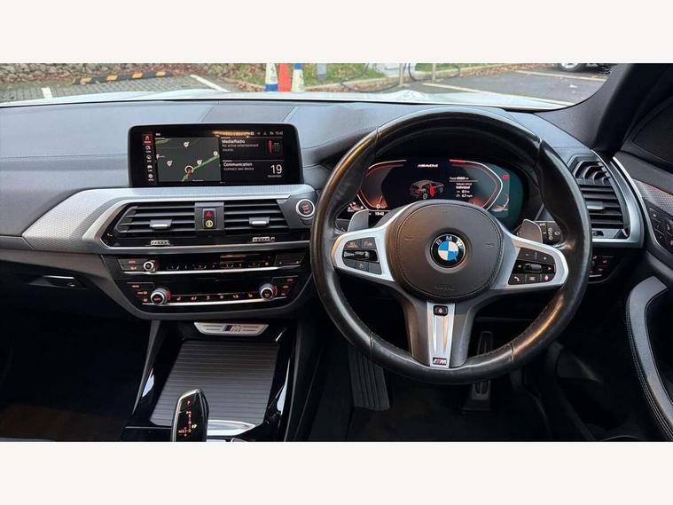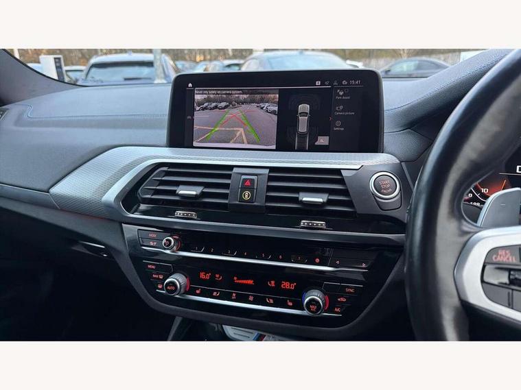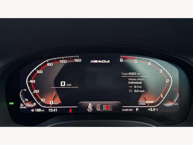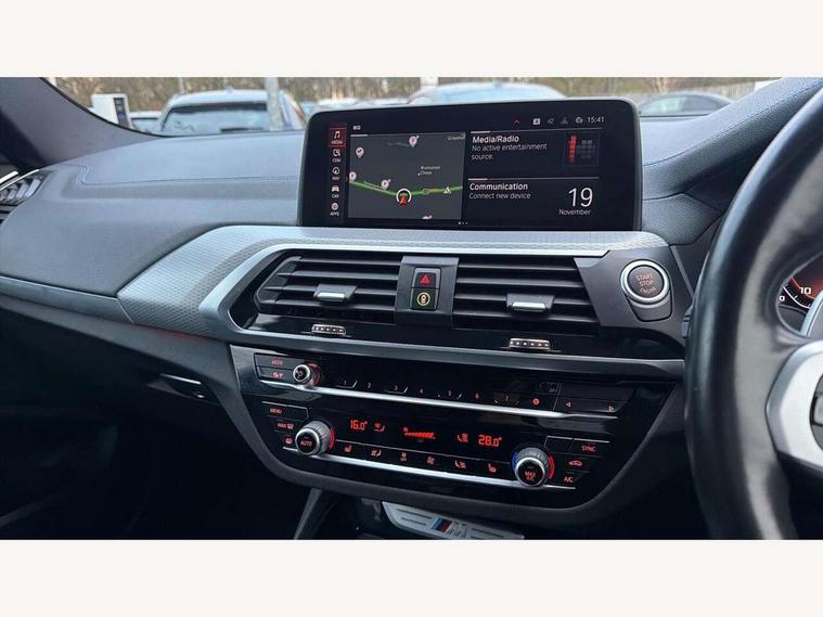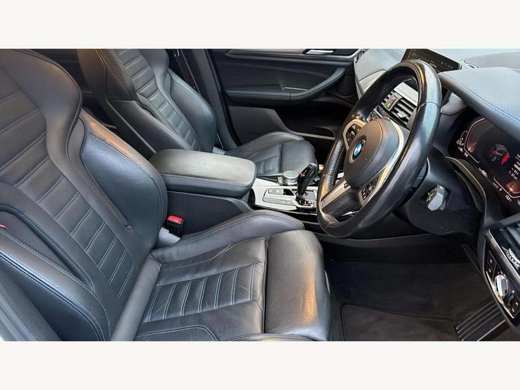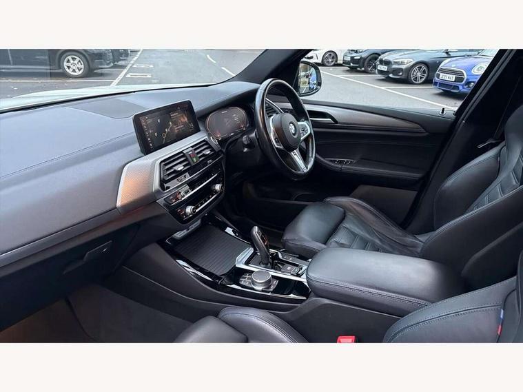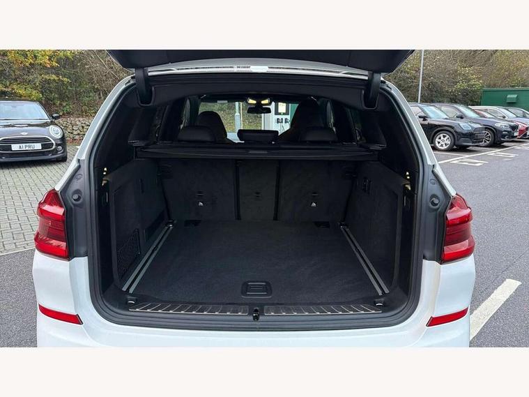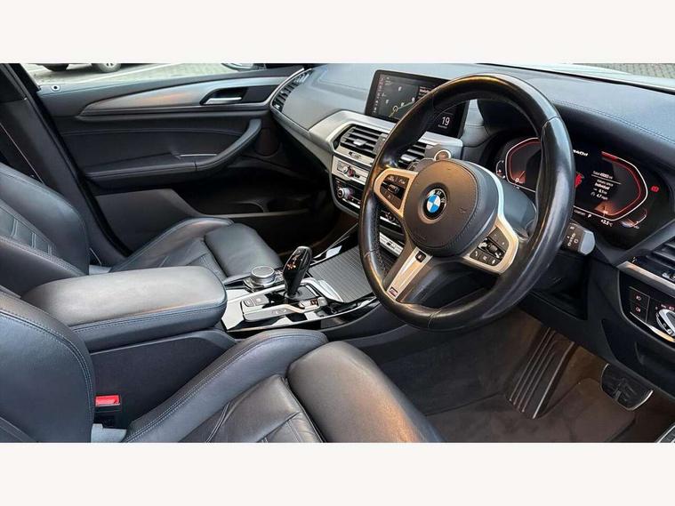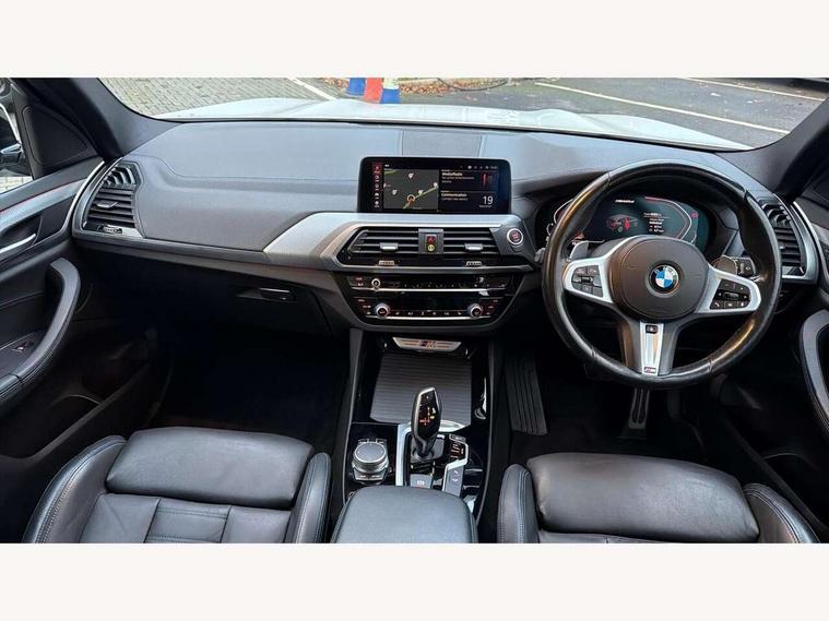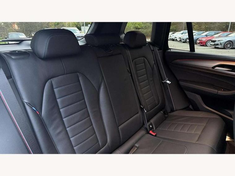 Attentiveness assist, Automatic tailgate operation, Bluetooth hands free telephone connection with USB audio interface + audio streaming, BMW Live Cockpit Professional sat nav system including 10.25" high resolution display and Intelligent Voice Assistant, BMW Online services, BMW Teleservices, Brake pad wear indicator in front and rear, Check Control warning system for monitoring of lights and door/luggage compartment open warning, Control display - 6.5" colour display screen, iDrive Controller with 8 favourite buttons, Lights on warning by audio warning signal when ignition is switched off, Navigation system - BMW Professional multimedia with Hard disc drive (HDD) and 10.25" touch display, Oil sensor for level and grade, warning by check control system, On board computer - average speed+fuel consumption, service interval, clock/date, odometer/trip meter, outside temperature display and ice warning, Optimum shift indicator, Personal Profile - automatic lock when driving away selectable, Semi digital instrument cluster, Stop/start system, Variable sports power steering, Diesel particulate filter, Drive performance control with ECO PRO comfort + sport mode, Incorrect fuelling protection, M Sport differential, Multi-link rear suspension, Performance Control, Sport automatic transmission with gearshift paddles, Auxiliary socket for external MP3 player, BMW professional radio/CD/MP3, DAB Digital radio, Acoustic glazing, Black finish on B pillars, Body colour door handles, Body colour roof mouldings, Body coloured bumpers, Cerium grey frame and kidney grille with high gloss black vertical slats, Direction indicator, side repeaters, integrated in exterior mirrors, Dual black chrome quadrilateral exhaust tips, Dynamic brake lights, Electric adjustable heated door mirrors, Exterior air inlets, mirror caps and air breather in cerium grey, Exterior mirrors - electrically folding with anti-dazzle, Fingertip control / anti-trap function on electric window, Follow me home headlights, Front and rear bumper system with replaceable deformation elements, Front and rear electric windows, Green tinted heat insulating glass, Heated windscreen washer jets, Height adjustable headlamps, High gloss black door sill finishers, High gloss black shadow line roof rails, High level 3rd brake light incorporating LED Technology, Interior rear view electrochromatic mirror with automatic anti dazzle function, LED daytime running lights, corona ring style, LED front fog lights, LED Indicators, LED tail lights, Lightweight engineering, M aerodynamic bodystyling, Model designation, Rain sensor including auto headlights activation, Rear wiper, Shark fin antenna, Side exterior M designation badges, Sun protection glass, Visible VIN plate, Welcome lighting, Windscreen wipers with adjustable interval, 12V socket in centre console and luggage area, 3 rear headrests, 3 zone automatic air conditioning, 4 lashing points to secure luggage, Ambient lighting, Anthracite headlining, Anthracite Velour floor mats, Door sill finishers with BMW Individual designation, Driver/passenger sunvisors with ticket holders + illuminated vanity mirrors, Electric adjustable seats with memory function, Foldable boot floor with storage compartment, Four grab handles integrated in roof lining, Front and rear bottle holders integrated into door trim storage compartments, Front and rear side armrests integrated into door trim, Front centre armrest with storage compartment, Front footwell lights, Front/rear courtesy lights with soft on/off dimming, Front/rear reading lights, Height adjustable front/rear head restraints, Illuminated glovebox with lock, Isofix rear child seat preparation, Leather gear knob, Luggage area underfloor compartment, Luggage compartment lighting, M sport leather steering wheel, Parcel shelf removeable and storable under boot floor, Reach and rake adjustable steering column, Rear centre armrest with 2 cupholders, Removable / retractable luggage cover, Slope adjustable rear seats, Storage compartment in rear centre console and front/rear door trims, Through loading system with 40/20/40 split folding rear seat, Toolkit located in luggage compartment, Two front cupholders with removable oddments tray/lid, Vernasca leather upholstery, Connected pack professional - X3, Visibility pack - X3, ABS/EBD, ADB - Automatic Differential Brake, Automatic Stability Control (ASC), Battery safety cut-off, BMW emergency call, Brake assist, Brake drying, Brake energy regeneration, Braking pre-tensioning, Child locks on rear doors, Cornering brake control (CBC), Crash Sensor - activation of central locking release, hazard warning light and interior lighting, Deactivation of fuel pump in the event of a crash, Driver and front passenger front and side airbags with passenger deactivation and ITS front and rear head airbags, DSC+, Dynamic brake control, Dynamic Traction Control - DTC, Electromechanical parking brake, Front seat belts warning, Hill descent control, Hill start assist, Seatbelt security check for front seats, Side impact protection, Three point seatbelts to all seats with front and outer rear pyrotechnic belt tensioners and seat belt force limiters, Two tone horn, Tyre pressure monitoring system, Ventilated front and rear disc brakes, Warning triangle and first aid kit, Central locking switch for all doors, fuel filler cap and luggage compartment, Electronic engine immobiliser, Locking wheel nuts, Remote control including two integrated key - one button for open/close all lockable content, windows and separate button for open luggage compartment, Remote control Thatcham category 1 alarm, Start/stop button with Comfort Go keyless engine start and auto Start/stop deactivation button, Sensatec instrument panel, Low rolling resistance tyres,