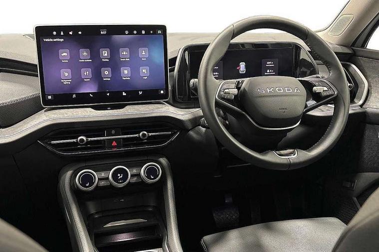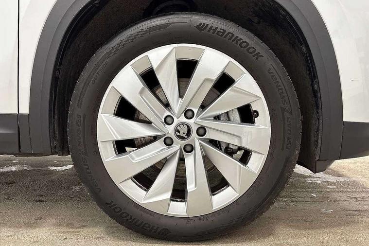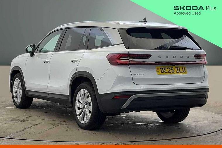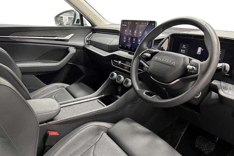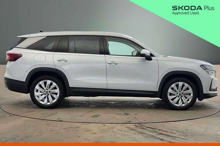 13" satellite navigation touchscreen display, Blind spot detection with door exit warning, Bluetooth system, ChatGPT functionality, Driver alert - Fatigue and drowsiness monitor, Dry display cleaner, Emergency call, Front and rear parking sensors, Front cross traffic assist, Lane assist, PAS, Rear traffic assist, Tailgate unlocking from outside, Traffic sign recognition, USB C Port x 2 in front centre console, Virtual Cockpit - 10.25" digital display, Voice control system, Wireless charging for two smartphones (15W) with cooling function, Wireless SmartLink for Apple CarPlay and Android Auto, Stop/start function, 2x USB-C in the rear, DAB Digital radio, Aero front windscreen wipers with intermittent function, Auto dimming rear view mirror, AWL (all weather lighting) and all weather light with cornering function, Black wheel arch surrounds, Body colour bumpers, Body colour door mirrors and handles, Cornering light and poor weather light, Electric folding /adjustable/separted heated/folding door mirrors, auto dimming with boarding sports and memory function, Electric front and rear windows, Exterior black decorative trims, Heat insulating glass in windshield, Heated rear window, Ice scraper in fuel tank cap, Invisible tailpipe, LED daytime running lights, LED third brake light in rear spoiler, Light assistant with automatic headlight control and coming home feature, Logo projection in door mirrors, Privacy glass, Rear roof spoiler, Rear side wing doors, Rear window wiper, Red decorative strip between rear LED lights, Safety reflectors on front and rear doors, Unique dark chrome design logo on alloy wheels, Window control switches with black trim, Windscreen wipers with rain sensor, Without engine designation, 1.5l bottle holder points in all door, 1x centre rear reading light, 2 seat bench in 3rd row, 3 configurable smart dials with 32mm coloured display, 3 seat bench in 2nd row, 4 foldable roof handles with rear coat hooks, Ambient interior lighting - Dashboard, front-door stowage compartments, front and rear door panels and footwell lighting, Automatic gear selector on steering column, Chrome interior door handles, Driver/front passenger reading lights, Fabric headlining, Fixed bench 40:60:40 split folding backrests, Front and rear floor mats, Front centre armrest with jumbo box storage compartment, cup holder and 12V socket, Height adjustable front headrests, Isofix child seat fittings in outer middle row rear seats and front passenger with top tether, Manually adjustable steering column, Pollen filter, Rear centre armrest with cupholders, Rear seat boot backrest release, Single front passenger seat, Skoda lettering on steering wheel, Storage pocket including mobile phone pockets on the backs of the front seats, Sunvisors with illuminated vanity mirrors, Three rear height adjustable headrests, Ticket holder on A Pillar, Tri zone climate control, Umbrella in door panel x1 made from sustainable materials, Upper and lower glovebox with card holder and coin compartment, USB C port by rear view mirror for charging only (15W), Exterior styling pack - Kodiaq, Auto door release and activation of warning lights in the event of an accident, Driver and front passenger airbag with knee airbag and front passenger airbag deactivation, Electric child locks, Electronic parking brake, ESC (incl. ABS+EMD+MSR+ASR+EDL+HBA+DSR+RBS+ESBS+MCB+TSA+XDS), Front assist with braking reaction to vehicles, pedestrians and cyclists, Front disc brakes, Fuel cut off safety device, Height adjustable front 3 point seatbelts + pretensioners, Hill hold assist, Junction assist with automatic emergency braking, Rear disc brakes, Safety vest holder in door, Seat belt reminder for all seats, Three point rear seat belts, Two tone horn, Tyre pressure monitor, Anti-theft wheel bolts, Immobiliser, Remote central locking with 2 keys,