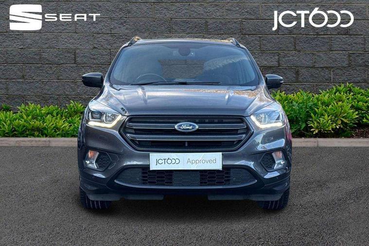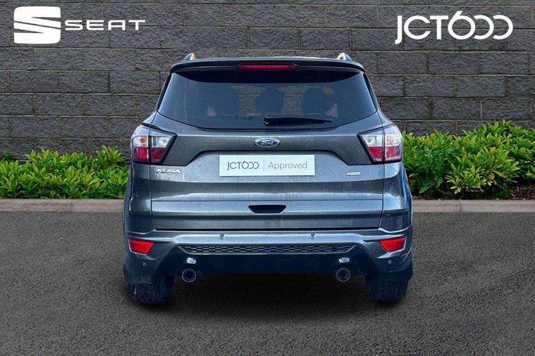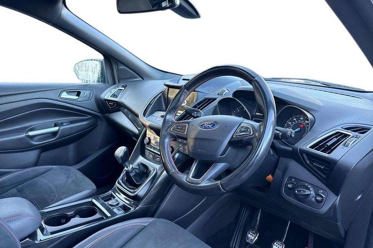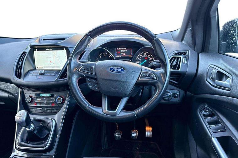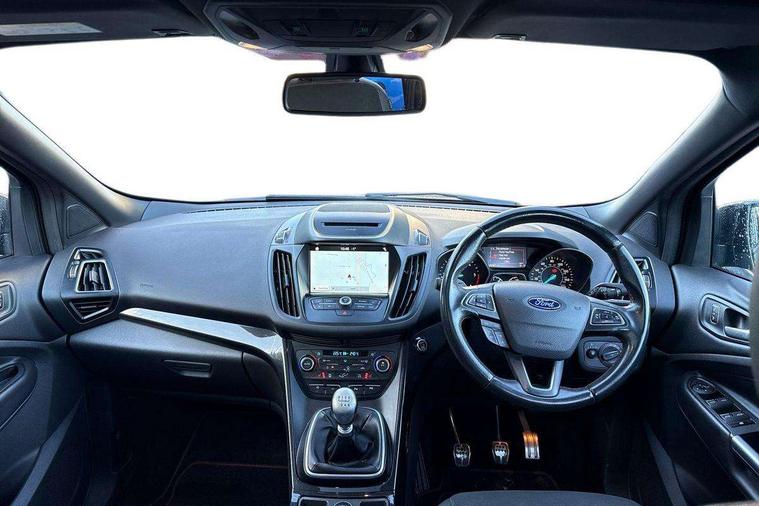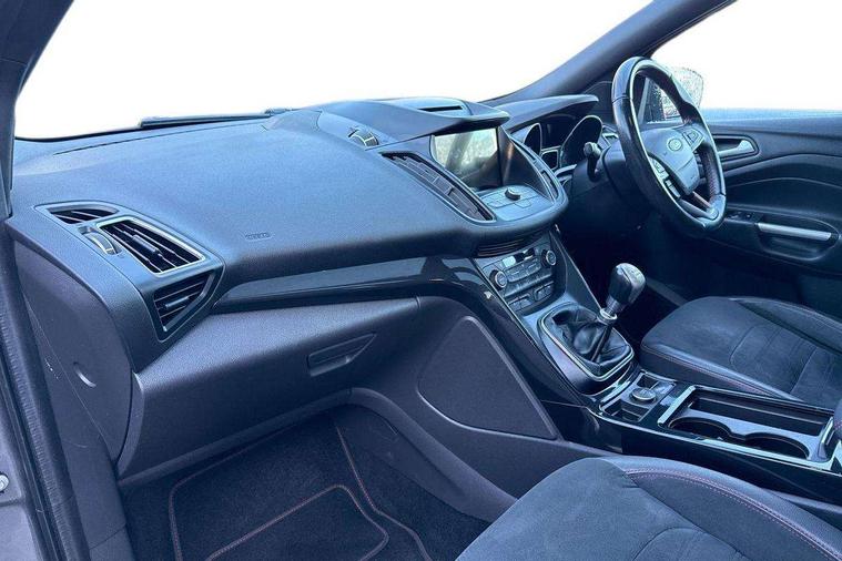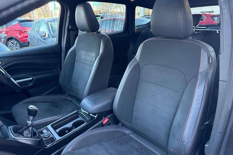 Enhanced active park assist including perpendicular parking pull out assist and flank guard, EPAS, Front parking sensor, Hands free power tailgate, Rear parking sensor, SYNC Emergency Assistance, Trip computer, Sports suspension, Auxiliary socket for external device, Remote audio controls on steering wheel, USB connection, Auto dimming rear view mirror, Automatic headlights, Black roof rails, Body colour bumpers, Body styling kit, Electric folding mirrors, Electric panoramic glass sunroof, Electrically heated door mirrors, Front scuff plate, LED daytime running lights, Power front and rear windows, Quickclear heated windscreen, Rain sensor windscreen wipers, Rear diffuser, Tailgate wash/wipe, Twin exhaust pipes, 10 way electric adjustable drivers seat, 60/40 split/folding rear back and cushion, Alloy Foot Pedals, Auxiliary power socket in luggage area, Centre console with stowage tray/bottle holder/CD stowage/front and rear 12V power point, Dark headlining, Dinamica/Leather Upholstery, Driver seat lumbar adjustment, Driver/passenger front seatback pockets, Driver/passenger seats fore/aft adjustment, Dual electronic automatic temperature control, Floor mats with red stitching, Folding rear centre armrest, Footwell courtesy lights front and rear, Front head restraints, Front overhead courtesy lights with theatre style dimming and delay, Front/rear reading lights, Heated front seats, Isofix system on outer rear seats, Leather gearknob, Leather steering wheel with red stitching, Passenger lumbar support, Reach + rake adjustable steering column, Rear floor mats, Rear head restraints, Sports style front seats, Stowage unit in upper instrument panel, Tie down hooks, Tonneau cover, Variable intensity instrument illumination, 3 point seatbelts on all 3 rear seats, ABS/EBD, Driver and passenger airbags, Driver and passenger side airbags, Electric traction assist system, Electronic parking brake, ESP+EBA, Front and rear curtain airbags, Hill start assist, Intelligent Protection System (IPS), Tyre pressure monitoring system, Immobiliser, Keyless entry system with hands free boot opening, Keyless Start, Locking wheel nuts, Remote central locking, Thatcham Cat.1 alarm, 19" 5x2 spoke black alloy wheels, Mini steel spare wheel,