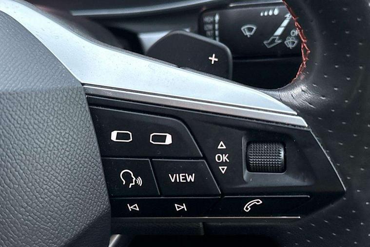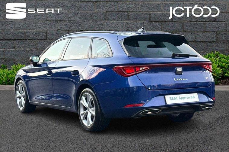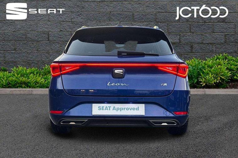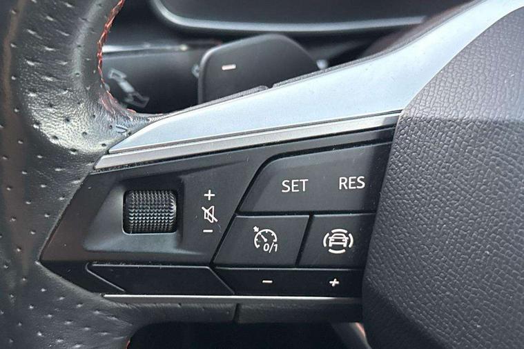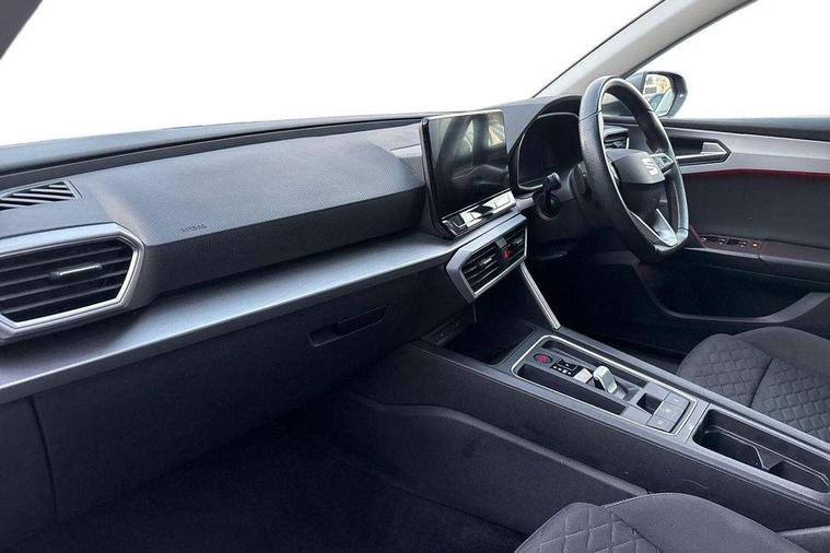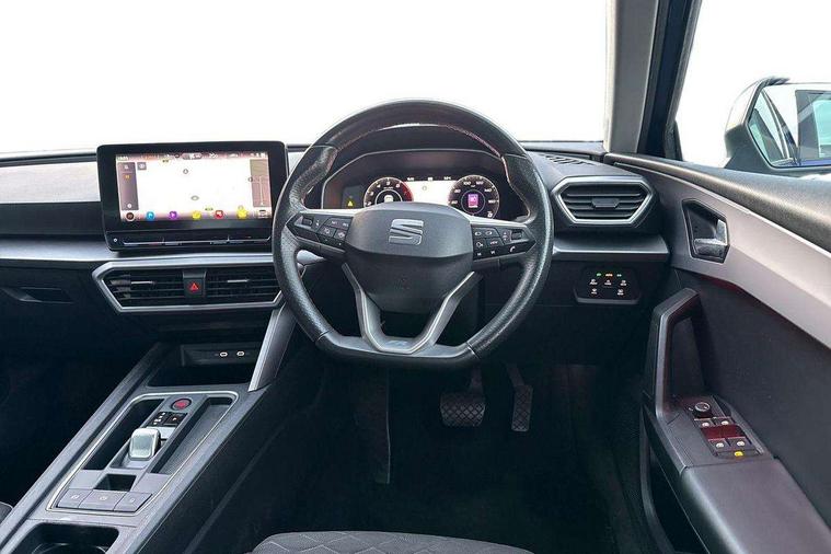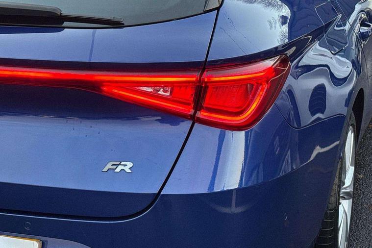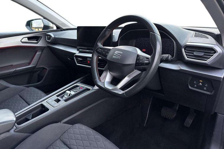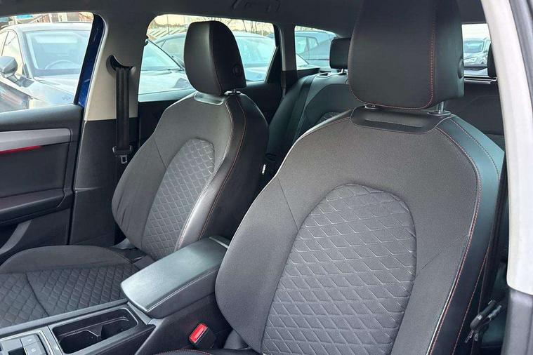 Digital cockpit, Front assist with forward collision warning braking reaction to vehicles, pedestrians and cyclists, Full link smartphone integration with Mirror Link, wireless Apple CarPlay and wired Google Android Auto, Lane keeping system, Lockable tailgate, Park assist (inc front/rear parking sensors), Power assisted speed sensitive electro-mechanical steering, RPM, trip computer, outside temp gauge, instrument light brightness, low fuel warning light, lights on reminder, gearshift indicator, SEAT drive profile with 4 modes (Eco/Normal/Sport/Individual), throttle response and gearshift mode, Service interval indicator, Start/stop system with regenerative braking, Sports suspension, XDS electronic differential lock and dynamic traction support, Auxiliary input socket, Auto dimming rear view mirror, Body colour door handles, Body coloured bumpers, Cosmo grey exterior mirrors with integrated LED indicators, Dark tinted rear windows, Electric front/rear windows, Electrically adjustable, heated and folding door mirrors, FR sports bumper, Illuminated front door sill, LED front fog lamps with cornering function, LED headlights and tail lights with dynamic turn signals, welcome light silhouette from exterior mirrors and dynamic headlight range control, LED rear fog lamp, Matt black roof rails, Rain sensing wipers, Rear wash/wipe, Separate daytime running light with automatic headlight control and coming home feature, 12V Accessory socket in the load area, 12v power point in centre console, 60/40 split rear bench seat with armrest, Ambient lighting in door trim, Cloth upholstery, Driver/passenger manual seat height adjustment, Dust/pollen filter, Front and rear height adjustable headrests, Front and rear reading lights X 4, Front centre armrest, Front seatback storage pockets, Height/reach adjust steering wheel, Interior lighting with LED lighting in sunvisor, glovebox and rear headlining, ISOFIX points in outer rear seats with top tether anchorage points, Luggage tie-down hooks, Lumbar adjustment for front seats, Sliding boot cover, Sunvisors with covered illuminated mirror, Three zone climate control, Media system plus with navigation - Leon, 3 point seatbelts on all rear seats, ABS, Brake control system - ESC and brake booster, Child proof door locks, Driver and front passenger airbags with front passenger airbag de-activation, front side and curtain airbags, Electronic parking brake, Extended safety system - seat belt tensioner, window closure and hazard lights, Hill hold control, Rear disc brakes, Seat belt reminder for front and rear seats, Tiredness recognition system, driver alert system, Tyre pressure monitoring system, Anti theft alarm system with interior monitoring in cab, backup horn and towing protection, KESSY Go (Keyless start), Locking wheel bolts, Wireless phone charging, Chrome interior detailing, 17" Dynamic Bi-spoke alloy wheels with 91W tyres, Tool kit,