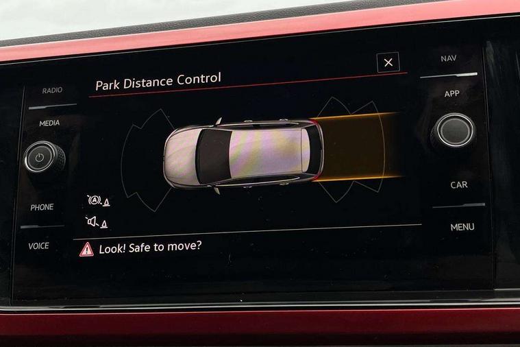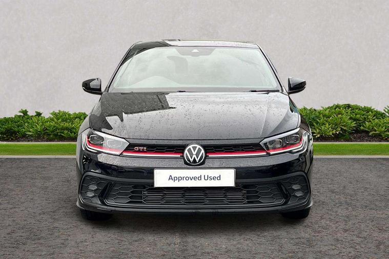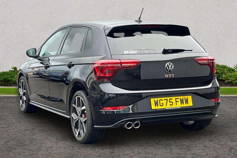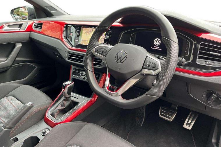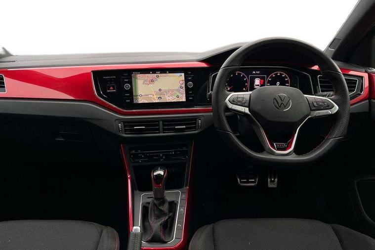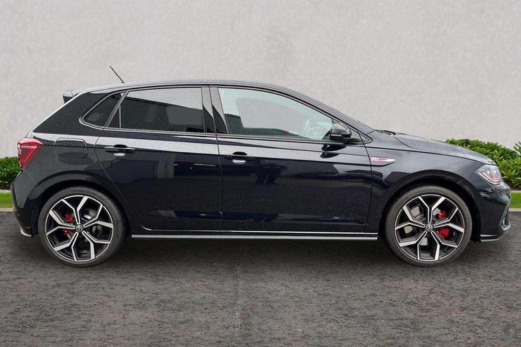 Adaptive cruise control with follow-to-stop and speed limiter, Advanced driver attention and drowsiness monitor, Bluetooth mobile phone interface, Digital Cockpit Pro with 10.25" Display, Dynamic road sign display, Eco mode, Emergency call service, Multifunction camera, Power assisted speed sensitive steering, Preparation for We connect and We connect plus, Speedo and rev counter, electronic odometer, trip, service interval display and fuel gauge, Travel Assist - Lane keeping system and traffic jam assist, Travel assist including emergency assist, Trip computer, Warning signal and warning light for front and rear seatbelts not fastened, Washer fluid level indicator, Wireless app connect, Adaptive chassis control, Front wheel drive, Heavy duty rear axle, Rear shock absorpion sports version, Sports select suspension lowered by 15mm, Start-stop system with battery regeneration (recuperation - energy recovery during braking), DAB Digital radio, Diversity antenna for FM reception, Body colour bumpers, Body colour door handles, Electric front windows, Front scuff plates in aluminium with GTI logo, Heat insulating glass windscreen, Power folding adjustable/heated exterior mirrors and front passenger exterior mirror lowering function, Rain sensor, Rear electric windows, Rear fog light, Rear side wing doors, Rear windscreen washer and wiper with interval delay, Sport bumpers with air intakes with honeycomb structure, Third brake light, Twin chrome exhaust tailpipes, 12V power socket in centre console, 2 USB-C ports in the front, 2 USB-C charging sockets on the center console in the rear, 3 rear head restraints, 60/40 split folding rear seat and rear seat bench not split, Air care climatronic air conditoning system with active combination filter and 2-zone temperature control, Black roof lining, Carpet mats, front and rear, Chrome plated radiator grille inserts, air vent surrounds and light switch surrounds, Door and side trim panel, Driver and front passenger seat height adjustment, Driver/passenger sunvisors with illuminated vanity mirrors, Front centre armrest, Front footwell illumination, Front seat backrest storage pockets, GTI sports gearshift knob in aluminium leather, Handbrake lever handle in leather, Headliner in recycled material, Isofix child seat preparation easy-fit (for two outer rear seats, and front passenger seat) compatible with I-size, LED interior light with switch off delay and dimmer, 2 reading lights front and rear, Luggage compartment cover, Luggage compartment floor, Luggage compartment lighting, Lumbar adjustment for front seats, Single front passenger seat, Stainless steel pedals, Standard pedal cluster, Three spoke leather wrapped multifunction sports steering wheel with shifting paddles, IQ LED matrix headlights pack - Polo, Light and sight pack - Polo GTI, 3 point height adj front seatbelts + pretensioners, 3x3 point rear seatbelts, ABS, Driver and front passenger airbag with front passenger airbag deactivation, Drivers and front passengers safety optimised head restraints, ESC (Electronic stability control) + EDL (Electronic Differntial lock) and ASR (Traction control), Extended and predictive pedestrian/ cyclist protection, Front and rear disc brakes with red brake calipers, Front curtain and side airbags with center airbag, Hill hold control, Manual child lock in rear doors, Two tone horn, Tyre pressure loss indicator, Alarm with interior protection, Anti-theft alarm system with interior monitoring, backup horn, and towing protection, Anti-theft wheel bolts, Electronic engine immobiliser, Chrome applications on rotary light, mirror adjustment, window regulator switches, outlet with frame in black, Low rolling resistance tyres,