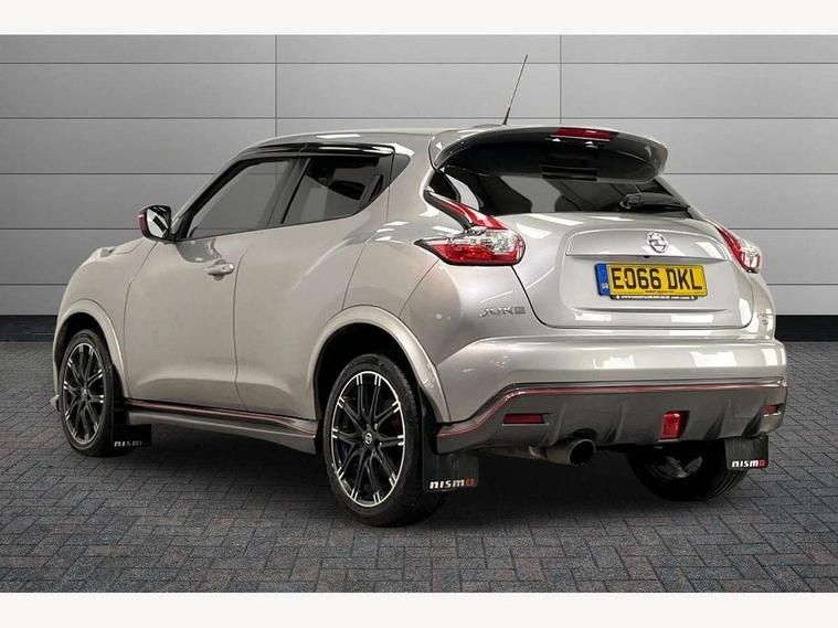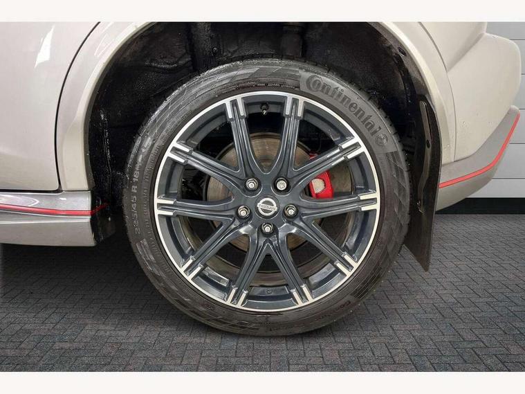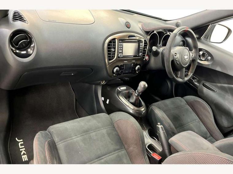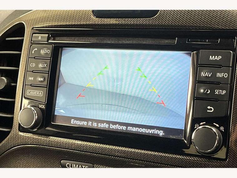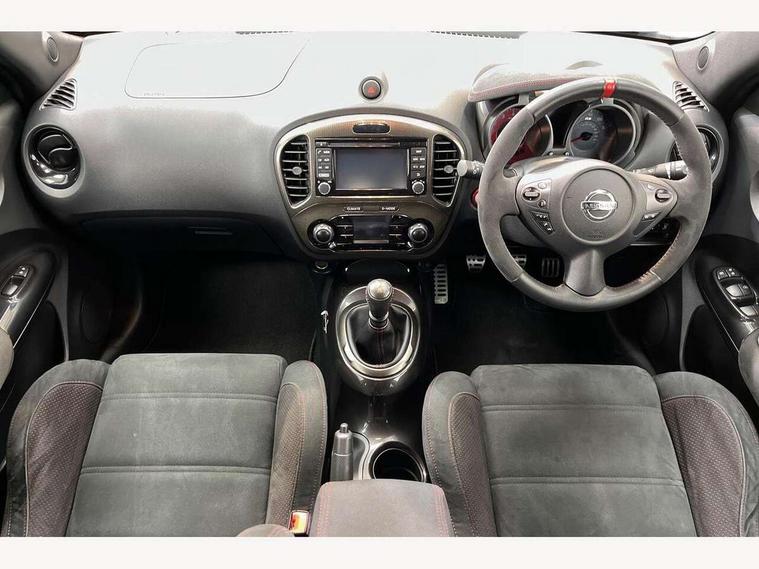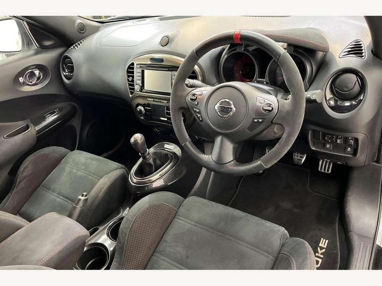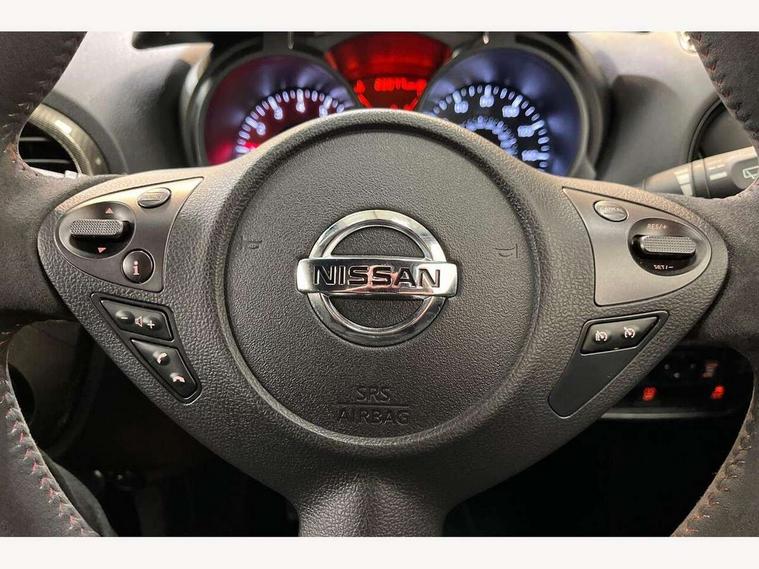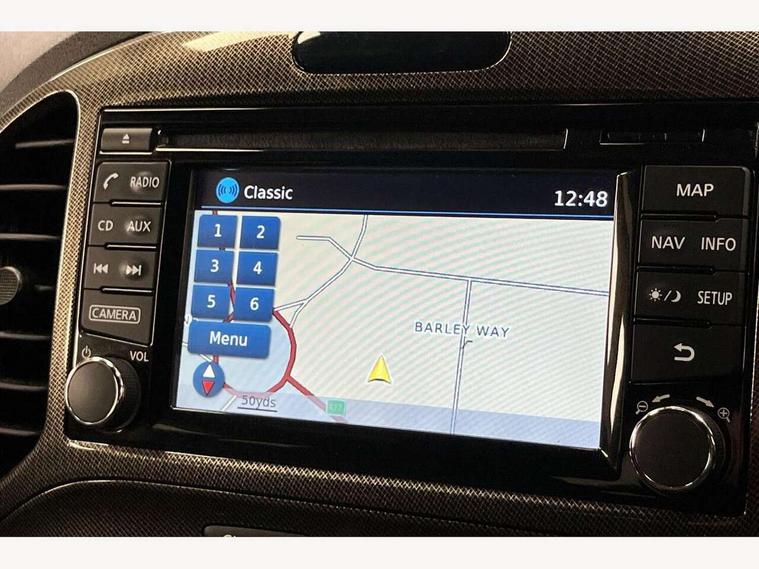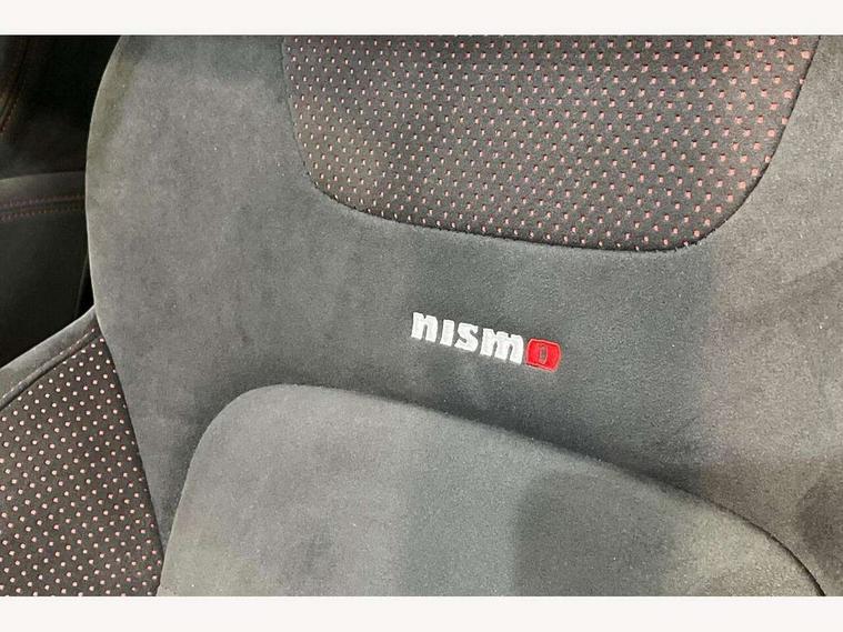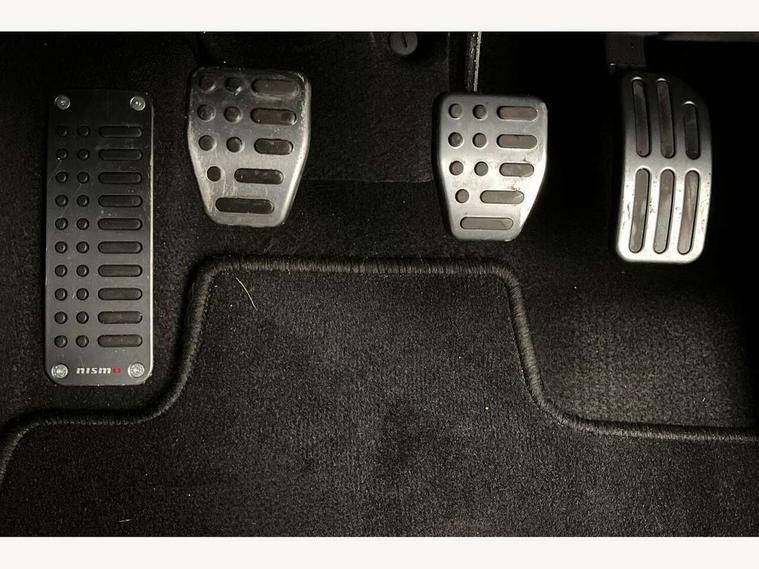 Bluetooth system, Colour rear view camera, Cruise control + speed limiter, Electric speed sensitive power steering, Nissan connect sat nav system, Push button starter, Service interval indicator, Trip computer, 6 speakers, Aux input, DAB Digital radio, Steering wheel mounted audio controls, Stereo radio/CD player and MP3 facility, USB port, 2 speed wipers+variable intermittent wipe, Automatic headlights, Body colour bumpers, Body colour door handles, Dusk sensor, Electric door mirrors, Electric folding door mirrors, Electric front/rear windows, Front fog lights, Heated door mirrors, LED daytime running lights, Privacy glass, Rain sensor, Rear diffuser, Rear wiper, Sports exhaust system, 12V socket, 60/40 split folding rear seat, Alcantara upholstery, Alcantara/leather steering wheel, Climate control, Front armrest, Front cupholders x 2, Front door pockets with bottle holders, Front head restraints, Front seat belt pre-tensioners with load limiters, Gear shift indicator, Glovebox, Heated front seats, Height adjustable driver's seat, Isofix child seat preparation, Luggage area under floor storage box, Map reading lamp, Nismo front sports seats, Passenger seat back pocket, Pollen filter, Rear headrests, Rear tonneau cover integrated into tailgate, Steering wheel rake adjustment, ABS + EBD + EBA, Child locks on rear doors, Driver and passenger airbags, Driver and passenger side airbags, ESP + traction control, Front and rear curtain airbags, Height adjustable front seatbelts, Passenger airbag deactivate switch, Red brake calipers, Three 3 point rear seatbelts, Tyre pressure monitoring system, VDC Dynamic Vehicle Control, Warning triangle and first aid kit, Alarm, Immobiliser, Intelligent Key, Remote central locking, 18" Alloy wheels, Tyre repair kit,
