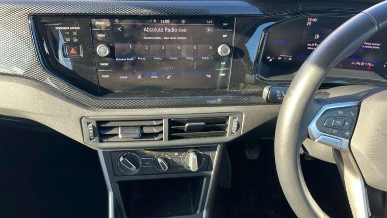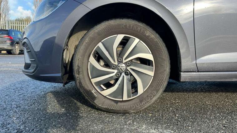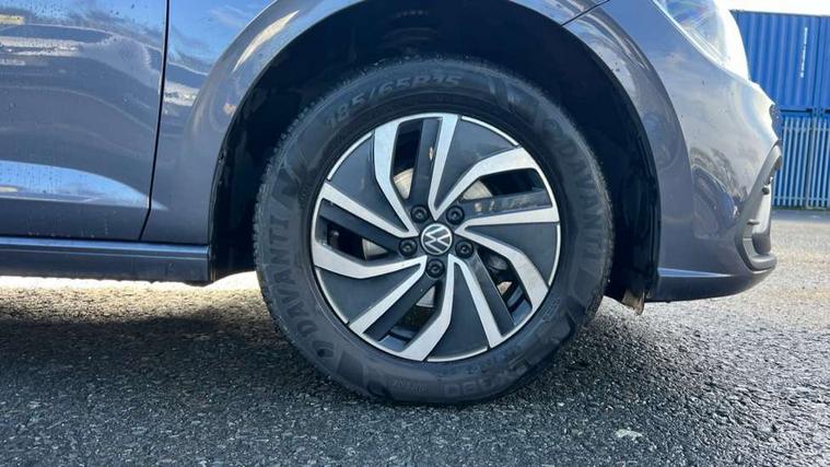 Advanced driver attention and drowsiness monitor, Bluetooth mobile phone interface, Cruise control + speed limiter, Dynamic road sign display, Emergency call service, Lane keeping system Lane Assist, Multifunction camera, Power assisted speed sensitive steering, Preparation for navigation system with media and internet package, Preparation for We connect and We connect plus, Speedo and rev counter, electronic odometer, trip, service interval display and exterior temperature gauge, Standard rear axle, Trip computer, Warning signal and warning light for front and rear seatbelts not fastened, Washer fluid level indicator, Wireless app connect, Front wheel drive, Rear shock absorpion, Start-stop system with battery regeneration (recuperation - energy recovery during braking), DAB Digital radio, Diversity antenna for FM reception, Front and rear 6 speakers, Automatic dimming interior rear view mirror, Automatic headlight control with LED separate daytime running lights with coming/leaving home function, Body colour bumpers with chrome inserts, Body colour door handles, Body colour door mirrors, Electric front windows, Engine badge deletion, Headlight range adjustment, Heat insulating and laminated safety glass windshield, LED Headlights, LED rear combination lamps, Power folding adjustable/heated exterior mirrors and front passenger exterior mirror lowering function, Rain sensor, Rear electric windows, Rear fog light, Rear side wing doors, Rear windscreen washer and wiper with interval delay, Third brake light, 12V power socket in centre console, 2 front and 2 rear reading lights with switch off delay and dimmer, 2 USB-C ports in the front, 2 USB-C charging sockets on the center console in the rear, 3 rear head restraints, 60/40 split folding rear seat and rear seat bench not split, Ceramique roof lining, Chrome plated radiator grille inserts, air vent surrounds and light switch surrounds, Door and side trim panel, Driver and front passenger seat height adjustment, Driver/passenger sunvisors with illuminated vanity mirrors, Front centre armrest, Front seat backrest storage pockets, Front standard seats, Handbrake lever handle in leather, Hartley/Thomas cloth upholstery, Headliner in recycled material, Isofix child seat preparation easy-fit (for two outer rear seats, and front passenger seat) compatible with I-size, Leather trimmed gear knob, Luggage compartment cover, Luggage compartment lighting, Removable luggage compartment floor, Single front passenger seat, Standard climatic zones, Standard pedal cluster, Three spoke leather wrapped multifunction steering wheel, Light and vision pack - Polo, 3 point height adj front seatbelts + pretensioners, 3x3 point rear seatbelts, ABS, Driver and front passenger airbag with front passenger airbag deactivation, Drivers and front passengers safety optimised head restraints, ESC (Electronic stability control) + EDL (Electronic Differntial lock) and ASR (Traction control), Extended and predictive pedestrian/ cyclist protection, Front assist with autonomous emergency braking (for Adaptive Cruise Control ACC up to 130 mph), Front curtain and side airbags with center airbag, Front disc brakes, Hill hold control, Manual child lock in rear doors, Rear drum brakes, Single tone horn, Tyre pressure loss indicator, Alarm with interior protection, Anti-theft alarm system with interior monitoring, backup horn, and towing protection, Anti-theft wheel bolts, Electronic engine immobiliser, Lava stone black gloss/matt decorative inserts in dash and front door panels, Low rolling resistance tyres,