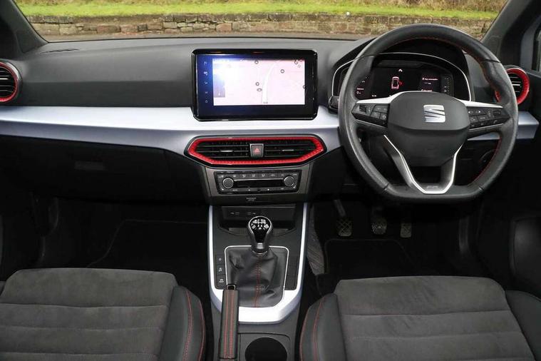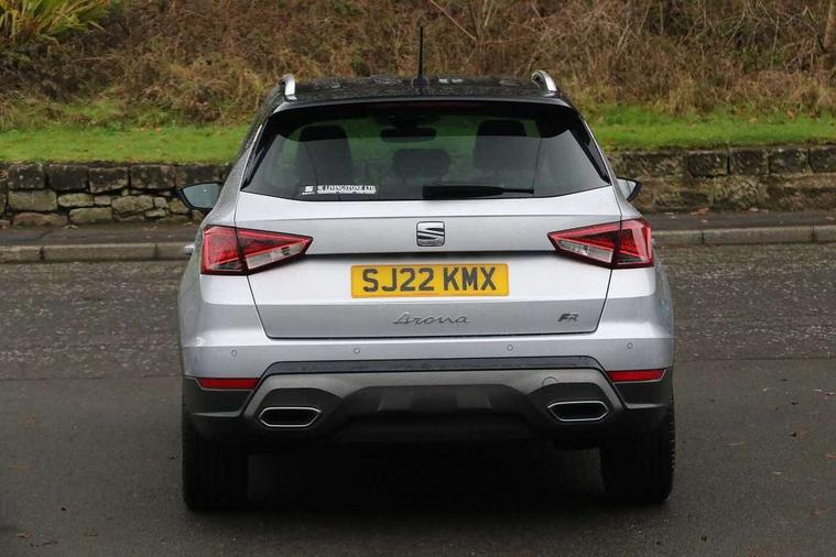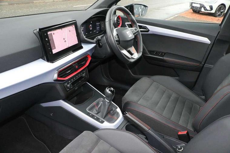 Digital cockpit, E-call, Electric speed sensitive power steering, Full Link Smartphone Integration with Mirror Link, Apple Car Play, Google Android Auto with USB Type C cable for Apple and Android compatibility, Lane keeping system, Rear parking sensor, Seat connect with safety, service, remote and online, SEAT Drive profile - Four different models normal-sport-eco-individual, steering response, throttle response, Bluetooth interface for hands free and audio streaming, DAB digital radio and AM/FM radio, Steering wheel mounted audio controls, Anti theft roof antenna, Auto dimming interior rear view mirror, Automatic activation of hazard warning lights, Body coloured bumpers, Body coloured door handle inserts, Chrome roof rails and window surrounds, Chrome window trim, Dark tinted rear windows, Electric front/rear windows, Electrically adjustable, heated and folding door mirrors, FULL LED automatic headlights with dynamic headlight range control, coming and leaving home, LED daytime running lights, LED rear tail lights and licence plate lights, Protective side mouldings, Rain sensing wipers, Rear side wing doors, Rear spoiler, Rear window wash/wipe, Roof colour door mirrors, Third brake light, Twin exhaust pipe styling hidden exhaust pipe, Visible VIN plate, Windshield wiper with intermittent control and potentiometer, 2 cupholders, 3 seat bench in 2nd row, 60/40 split folding rear seat, Aircare filter, Black interior roof, Daring red Illuminated coloured air vent, Double boot floor, Driver sunvisor with covered mirror + card holder, Dual zone climate control, Front courtesy light with 2x front and 2x rear reading lights, Front seat back storage pockets, Front sport seats, Heated front seats, Height adjustable front seats, Height/reach adjustable steering column, Illuminated boot, Interior ambient lighting, Interior light in footwell, central console and door panel, ISOFIX points in outer rear seats with top tether anchorage points, Microsuede cloth upholstery, Passenger sunvisor with vanity mirror, Perforated flat bottomed leather steering wheel/gear knob/handbrake with red stitching and FR logo, Single front passenger seat, Two front and three rear height adjustable headrests, Connectivity pack plus - Arona, Interior chrome pack - Arona, 3 point seatbelts on all rear seats, ABS, Active front headrests, Child locks on rear doors, Driver and front passenger airbags with front passenger airbag de activation, front side and curtain airbags, Electronic stability control, Emergency Brake Assist (EBA) and front assist, Front and rear seatbelt reminder, Hill hold control, Multi-Collision braking, Tiredness recognition system, Traction control, Tyre pressure monitoring system, Alarm with back-up horn, Electronic engine immobiliser, Locking wheel bolts, Remote central locking + deadlocks, Tow away protection, Titan black dashboard, 18" Performance Cosmo grey matt alloy wheels,