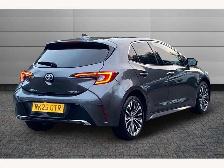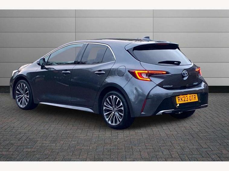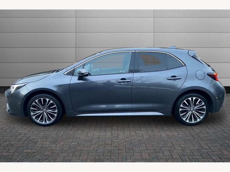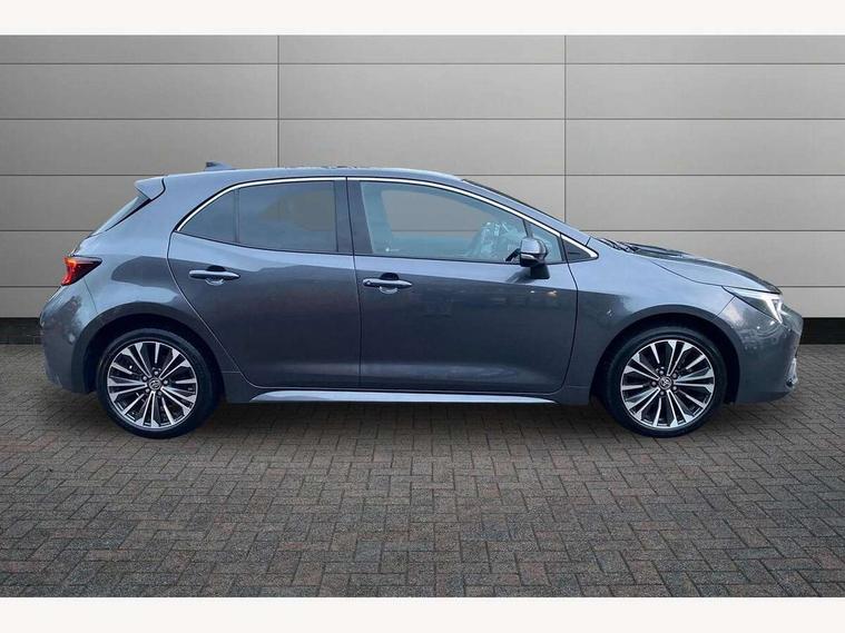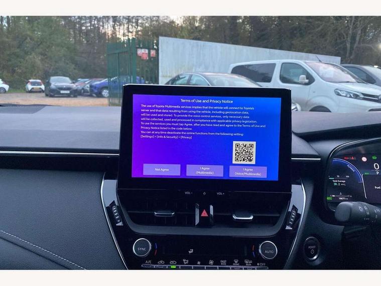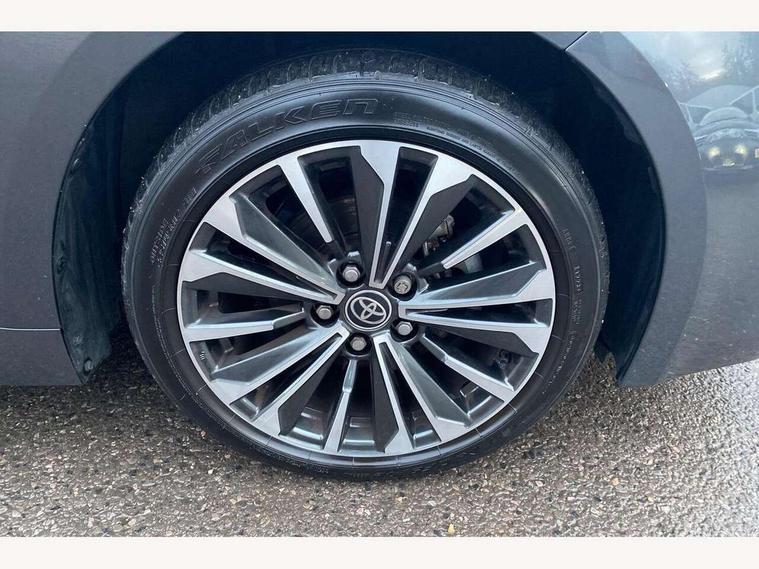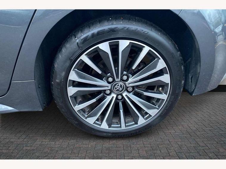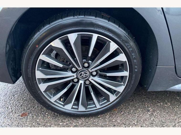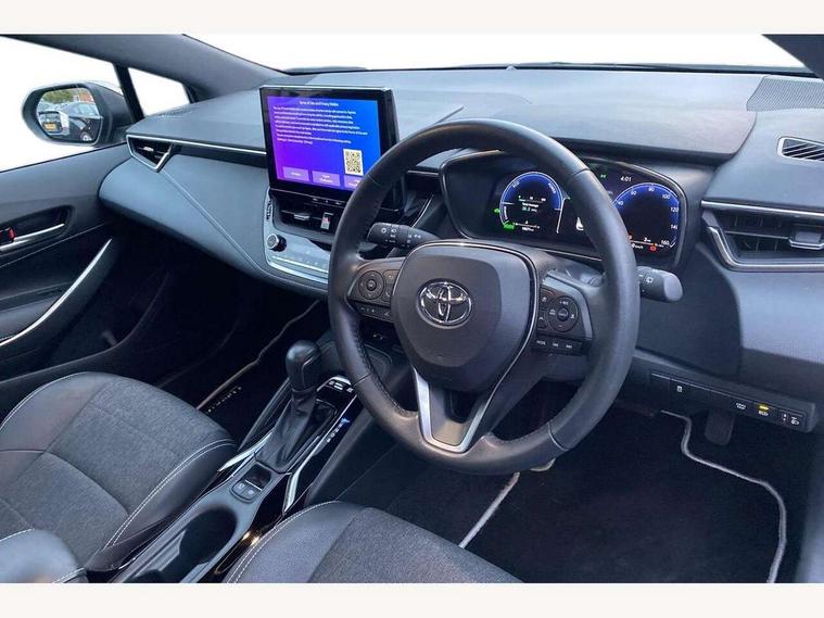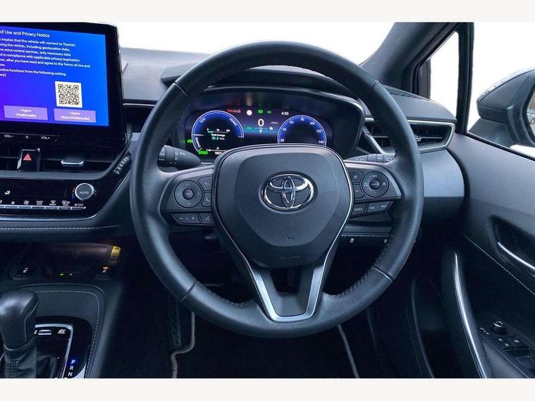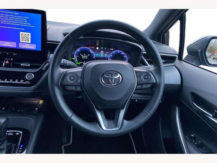 10.5" Multimedia display screen, Attention assist, Bluetooth telephone connectivity, Connected car functionality upgrade, tracker, remote status and e-care, Drive mode select (Eco, Normal), E-call, Electrically assisted power steering, EV drive indicator, Front and rear parking sensors with auto brake, Full Digital 12.3" TFT Digital Combimeter, Key reminder warning, Lane Departure Alert (LDA) switch on steering wheel, Memory on adjustable speed limiter, MyT connected services, Proactive driving assist (PDA), Reversing camera, Smartphone integration with Apple CarPlay and wired android auto, Tailgate, Toyota remote services, Toyota smart connect navigation, Wireless charger, Gasoline particulate filter, Vehicle Stability Control (VSC), 6 speakers, AM/FM radio, DAB Digital radio, Front USB-C in dashboard, Smart voice assist/ Voice recognition, USB and Aux in connectors + 12V front outlet, Anti-jam protection on power windows, Auto up and down function on all power windows, Automatic folding mirrors, Automatic headlights with high beam assist, Black centre and side air vents, Black metallic meshed front grille, Black toyota logo in front, Body coloured bumpers, Body coloured door mirrors, Body coloured front spoiler, Body coloured outside door handles, COROLLA alloy door scuff plates, Electrochromatic mirror, Follow me home headlights, LED daytime running lights, LED dual beam projector headlights, LED front fog lights, LED High mounted stop light, LED multi reflector in headlights, LED rear combi lights with LED lightguide, Manual headlight levelling system, New grille pattern, Noise reduction layer on windscreen, Piano black diffuser, Power adjustable heated door mirrors, Power front windows, Power rear windows, Privacy glass with UV filter, Rain sensing wipers, Rear bumper decoration with chrome plated inserts, Rear side wing doors, Rear under guard with chrome ornament, Rear window defogger, Rear window wiper, Reverse tilting door mirrors, Roof spoiler, Satin chrome insert on front air vents, Satin chrome insert on front door assist grips, Shark fin antenna, Tailgate release with push button, Time adjustment on intermittent wiper, Turning signal integrated indicators in door mirrors, Unique lower skirt, Unique side rocker with black insert, UV-filter on driver and passenger windows, 2 Shopping bag hooks in luggage compartment, 3 rear headrests, 3 seat bench in 2nd row, 3 spoke leather steering wheel with satin insert + gear knob, 4 tie down hooks in luggage compartment, 60/40 split folding rear seat, Adaptive cruise control (ACC) switch on steering wheel, Adjustable speed limiter switch on steering wheel, Audio, multimedia and telephone switches on steering wheel, Black armrest on centre console box, Black gear shift console, Boot light, Centre room light, Driver and front passenger personal light, Driver and passenger assist grip, Driver and passenger sun visor with mirror and light, Dual zone automatic air conditioning with ECO mode switch, Fabric/synthetic leather upholstery, Front and rear cup and bottle holders, Front door pockets, Front head restraints, Front passenger seat, Front sliding synthetic leather armrest, Heated seats, Illuminated entry system in room lamp, ISOFIX seat fixing (2 fixings on rear outer seats), Leather gear shift with satin chrome on gear shift console, Manual height adjustable for driver and front passenger seat, Manually tilt with sliding driver and front passenger seat, Parcel shelf, Passenger seat back pocket, Pollen filter, Power adjustable lumbar support on driver seat, Power window switches with satin chrome inserts, Rear armrest with 2 cupholders, Rear passenger coat hooks (2), Remote air conditioning, Satin chrome inside door handles, Satin chrome surround on heater control panel, Satin chrome surround on speedometer, Sliding armrest on centre console box, Slow opening glovebox with lights, Textile floor mats, Tilt/telescopic steering column, Voice recognition switch on steering wheel, Whiplash Injury Lessening (WIL) feature (active headrest) for seats, White ambient lighting on open tray and front cup holder, Toyota safety sense 3 pack - Corolla, 3x3 point rear seatbelts, Adjustable driver and front passenger seat belt extender to top anchor point, Anti lock braking system + Electronic brake force distribution, Brake assist function, Child locks on rear doors, Downhill Assist Control (DAC), Electronic parking brake, Emergency brake light signal (EBS), Front passenger airbag on/off switch, Front seatbelt reminder, HAC - Hill start assist control, Rear seat belt reminder, Seatbelt pretensioners and force limiters, Supplemental restraint system (SRS) 7 airbags - dual driver, dual side curtain, side impact and driver knee airbags, Traction control, Tyre pressure warning system, Acoustic vehicle alert system (AVAS), Alarm with motion sensor and immobilizer, Power passenger window lock, Remote central locking + deadlocks, Satin chrome dash trim, Soft touch texture on upper dashboard, Stitching on lower dashboard, 17" Black machined face 5 double spoke alloy wheels, Tyre repair kit, Unique wheel finish with red wheel cap,