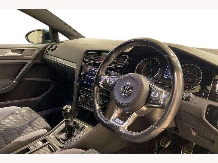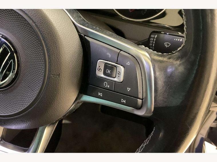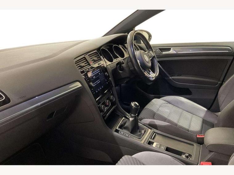'Lights On' Reminder warning buzzer, 8" touch screen, Adaptive Cruise Control with pedestrian detection and speed limiter, App-Connect, Bluetooth hands free telephone connection, Brake pad wear indicator warning light, Driver alert system, Driver profile selection, Exterior temperature gauge, Front assistant collision mitigation, Instrument cluster in white, Multifunction computer, PAS - speed related, Rev counter, Trip and service interval display, Ultrasonic front and rear optical and audible parking sensors, Warning buzzer and light for front seatbelts unfastened, Lowered sports suspension, XDS electronic differential lock, CD/MP3/WMA, USB and SD card reader, aux-in, Composition media system, DAB Digital radio, Auto dimming rear view mirror, Automatic coming/leaving home lighting function, Automatic headlights, Black front air intake and radiator grille with chrome insert, Black sports rear diffuser, Body colour bumpers, Body colour door handles, Body colour door mirrors, Body colour rear roof spoiler, Chrome grille surround, Chrome trapezoidal exhaust, Electric front windows, Electric rear windows, Electrically adjustable and heated door mirrors, Heat insulated tinted glass 65% light absorbing from B pillar back, Heated rear windscreen, LED daytime running lights, LED rear lights, Rain sensor, Rear windscreen washer and wiper with interval delay, Stainless steel door sill protection, 12V socket in luggage compartment, 3 rear headrests, 3 spoke steering wheel, 60/40 split folding rear seat, Bag hook in luggage compartment, Black headlining, Boot lashing points, Cooled glovebox, Courtesy light delay, Cover for storage compartment in centre, Dust/pollen filter, Front + rear carpet mats, Front centre armrest with storage box and rear air vents, Front passenger seat height adjust, Front reading lights, Front seat back storage pockets, Grab handles, Height/reach adjust steering wheel, Illuminated vanity mirrors, Isofix preparation for 2 rear child seats, Leather gear knob and handbrake grip, Load through provision with rear centre armrest and cupholders x2, Luggage compartment cover, Luggage compartment lighting, Multifunction leather steering wheel with grey stitching leather trimmed gear knob including paddle shift, Overhead storage box, Stainless steel pedals, Storage box in luggage compartment, Storage compartments in doors, Sun visors, Variable boot floor, height adjustable and removable, Ambient lighting pack - Golf, Mirror pack - Golf, 3 point height adj front seatbelts + pretensioners, 3 rear 3 point seatbelts, ABS, Automatic post collision braking, Child locks on rear doors, Driver/Front Passenger airbags, Driver/Passenger whiplash optimised head restraints, Drivers knee airbag, Electronic parking brake with auto hold, ESP with EDL + ASR, Front and rear curtain airbags, Front passenger airbag deactivation, Front side airbags, Pre crash system, Tyre pressure monitor, Alarm with interior protection, Electronic engine immobiliser, Remote central locking with 2 remote folding keys, Chrome-plated light switch surround, Dark Diamond decorative inserts in dash and door panels, Piano black centre console with aluminium inlay, Steel space saver spare wheel,