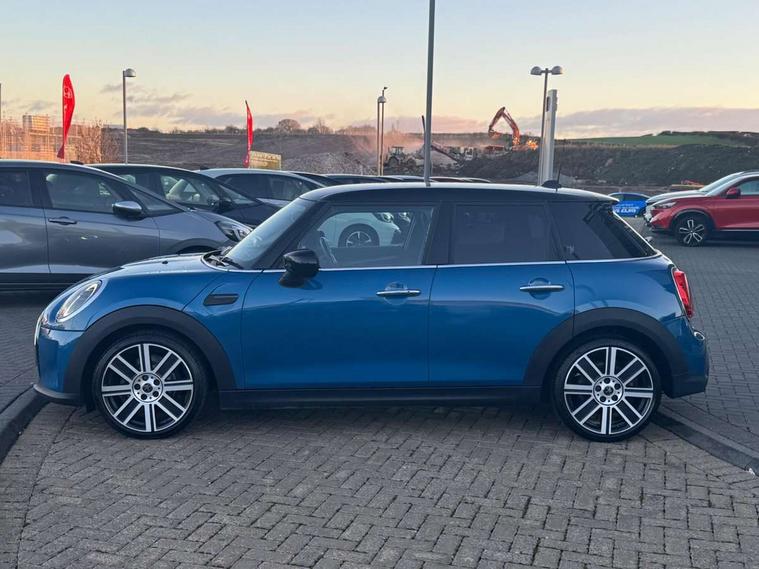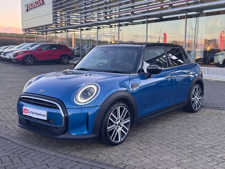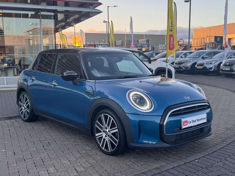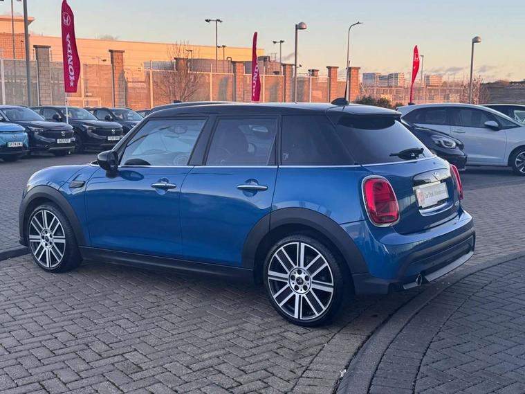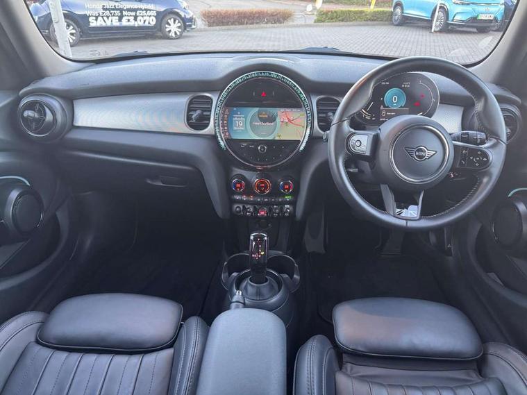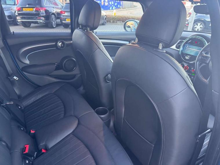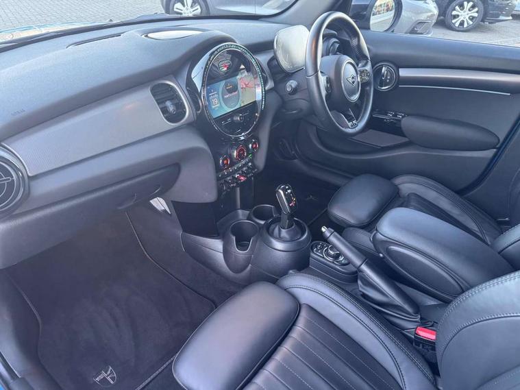 Automatic start/stop function with brake energy recuperation, Compatible mobile phone bluetooth with audio streaming, Cruise control with brake assist, Electro-mechanical speed dependant steering assistance, Flexible car sharing preparation, Instrument cluster, MINI Driving Modes - centre toggle switch to control driving setting (sport, mid and green), Mini E-call, MINI TeleServices, On board computer, Rear park distance control, Service interval indicator, Double Vanos system, Fully variable valve control, Gear change indicator display, High precision injection, Performance Control, Steptronic transmission with double clutch, 6 speakers in front door trims and underneath front seats, 8.8" touchscreen with LED ring, FM tuner and DAB digital radio, Automatic headlight activation switch, Body colour fuel filler cap, Chrome line exterior - radiator grille bars, tailgate handle, lower front grille grating and rear central fog-light, Dynamic brake lights, Electric front+rear windows, Heated rear window, Heated windscreen washer jets, LED headlight with closed ring and daytime driving lights, Metal door sill strips with MINI imprint, Model logo Cooper on right of tailgate, Rain sensor window wipers, Rear fog lights, Rear LED lights with union jack design, Rear window wiper, Side scuttle panel with integrated indicator, Sun/heat protection glass, White indicator lenses, 12V Accessory socket in centre console, 4 lashing eyes in luggage compartment, 60/40 split folding rear seat, Anthracite headliner including grab handles and clothes hooks, Carbon black colour line - Knee roll and door armrest, Chrome interior highlights, Chrome line interior - air vents, gear lever base, door handles and speakers in doors, Cupholders, Front and rear head restraints, Front and rear isofix with front passenger airbag deactivation, Glove compartment, Height and length steering column adjustment, Interior lighting with 12 different colours across the dashboard, underneath door bezel with illuminated laser-engraved design on central display, Leatherette gearshift lever and handbrake gaiters, LED reading lights, vanity mirror lights, front foot well light and spotlight on front seats, Manual air conditioning, Mechanical seat adjustment - forward/back & backrest for front seats and driver seat height adjust, MINI yours badge on exterior pillar, Multifunction steering wheel, Storage compartments in doors, Sunvisors with vanity mirrors, Tool kit, Velour floor mats, Walknappa leather steering wheel with grey seam and MINI Yours badge on Piano Black lower steering wheel spoke, 3 point seatbelts on all five seats, 6 Airbags - front, side, head and seat belt tensioners, Anti-lock braking system (ABS), DSC - Dynamic Stability Control, Front and rear disc brakes, Hill start assist, Single tone fanfare horn, Tyre pressure monitoring system, Alarm system with tilt sensor, monitoring doors, bonnet interior and tailgate, Electronic vehicle immobiliser, Start/stop toggle with keyless go,