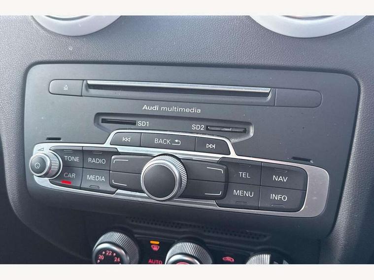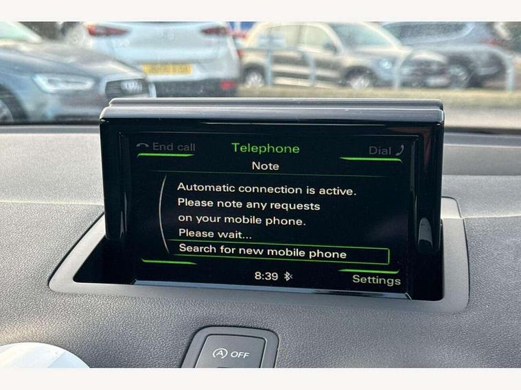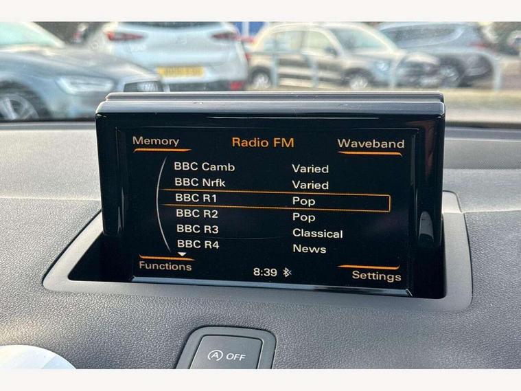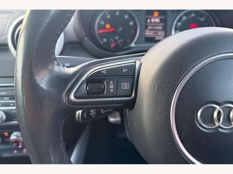 Electro-mechanical PAS, Low washer fluid indicator, Service interval indicator, Voice control system, Additional SD card reader, Audi music interface, Bluetooth audio streaming, DAB Digital radio, Adaptive brake lights, Body coloured bumpers, Body coloured door mirrors, Electric adjustable door mirrors, Electric front windows, Front fog lights, Heat insulating glass, Heated door mirrors, Heated rear windscreen, Rear wiper, 12V Accessory socket in centre console, 3 spoke leather multifunction sports steering wheel, Adjustable rear head restraints, Cupholders in centre console, Door sills trims with aluminium inlays, Front floor mats, Front head restraints, Front seats - 'Easy Entry', Front sports seats, Height adjustable front seats, Illuminated glovebox, Isofix attachments on outer rear seats, Jack and tool kit, Leather handbrake, Lumbar adjustment for front seats, Rake/reach adjustable steering wheel, Split folding rear seats, ABS/EBD, Brake assist function, Driver and passenger side airbags, Driver/Front Passenger airbags, EDL, ESP with ASR, First aid kit, Front and rear seatbelt reminder, Front passenger airbag deactivation, Head airbags, Height adjustable front seatbelts, Rear three point seatbelts x 2, Tyre pressure monitor, Warning triangle, Locking wheel bolts, Remote control central locking, Thatcham category 1 alarm + immobiliser, Tyre repair kit,