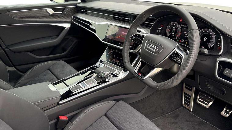 Audi connect safety and service (e-call), Audi connect with Amazon Alexa Integration, Audi drive select, Audi parking system plus - acoustic and visual park assist system for front and rear, Audi virtual cockpit, Automatic start/stop system with coasting functionality, Bluetooth interface, Camera based traffic sign recognition, Electric boot lid release, Lane departure warning system, MMI navigation plus with 10.1" and 8.6" touch screens, Progressive steering, Rear view camera, Service interval indicator, Smartphone interface includes wireless Apple carplay/Android Auto, Voice control system, Sports suspension, Audi front music interface, Audi sound system, Auxiliary input socket, DAB Digital radio, USB connection, Audi beam, Electric front/rear windows, Electrically adjustable heated and folding + automatically dimming exterior mirrors with memory function, Frameless auto dimming interior rear view mirror, Front intermittent wipers, Heat insulating darkened glass in side and rear windows, Heat insulating glass in windshield, LED rear lights with dynamic indicators, LED signature front daytime running light, LED third brake light, Matrix LED headlights, Matt black rear diffuser with diffuser strip and tailpipes in chrome, Matt black side air intake grille with inlay in matt aluminium, Omission of output/technology badging, Privacy glass, Radiator grille in anthracite black matt, single frame in chrome and horizontal struts in matt aluminium silver, Rain and light sensors, Rear boot, Rear side wing doors, 2 zone deluxe electronic climate control, 40/20/40 split folding 3 rear seat bench in 3 parts with rear centre armrest, Audi phone box light, Black cloth headlining, Electrically adjustable front seats including seat height, fore/aft position, backrest angle and 4-way lumbar with memory for driver's seat, Front and rear floor mats, Front centre armrest, Front head restraints, Heated front seats, Height/reach adjust steering wheel, Illuminated door sill trims with S logo, Illuminated sun visors with vanity mirrors, Leather gear knob, Rear headrests, Single front passenger seat, Stainless steel pedals and foot rest, Tool kit and car jack, Black styling package plus - A6 Black edition, LED Interior Ambient Lighting Pack - A6, Non smoking pack - A6, S line exterior style pack - A6, 3 point seatbelts on all seats, Airbags - Front side, front and rear including head, Audi pre-sense front, EBD - Electronic brakeforce distribution, Electromechanical parking brake, Electronic Stability Control (ESC) including ABS, ASR and EDL, Extended pedestrian protection measures, ISOFIX child seat mounting for front passenger seat and ISOFIX child seat mounting with Top Tether for outer rear seats, Manual child proof rear door locks, Seatbelt monitoring, Tyre pressure warning light, Warning triangle and first aid kit, Anti theft alarm with tow away protection, Anti-theft wheel bolts and wheel loosening detection, Immobiliser, Keyless Go, Remote central locking, Carbon twill inlays,