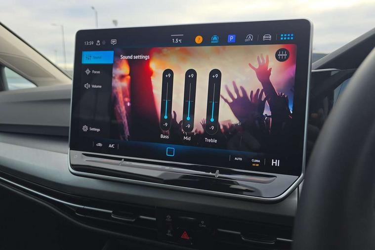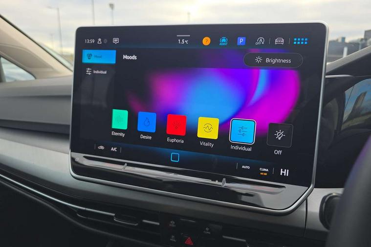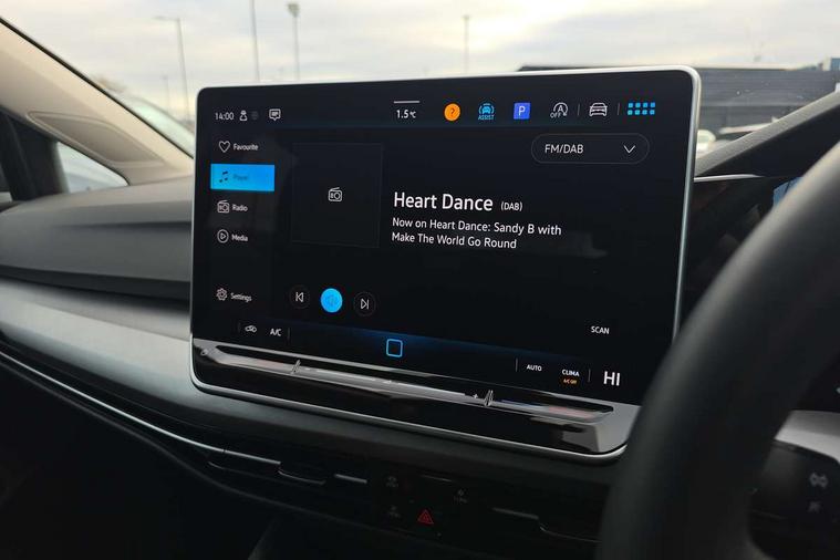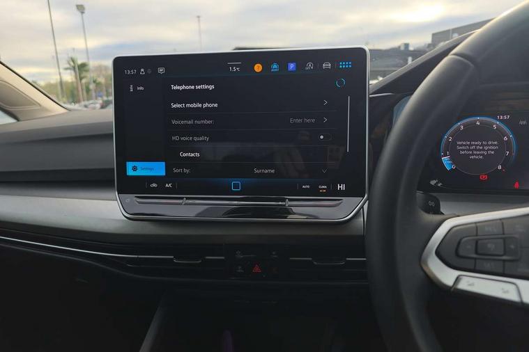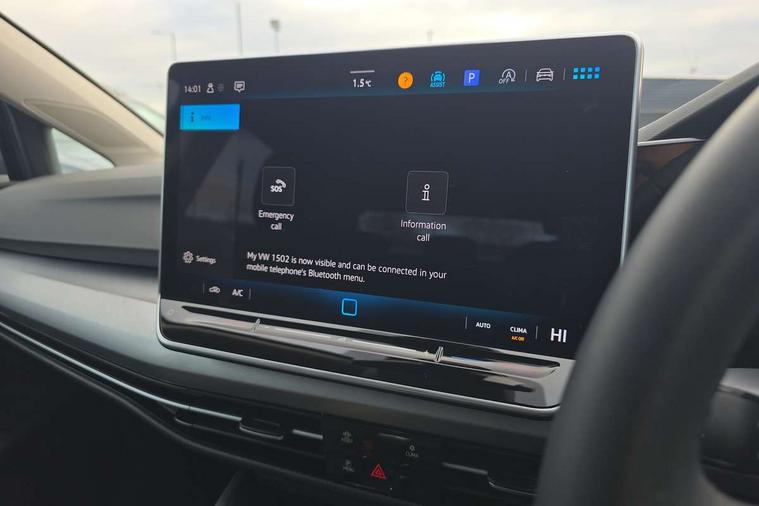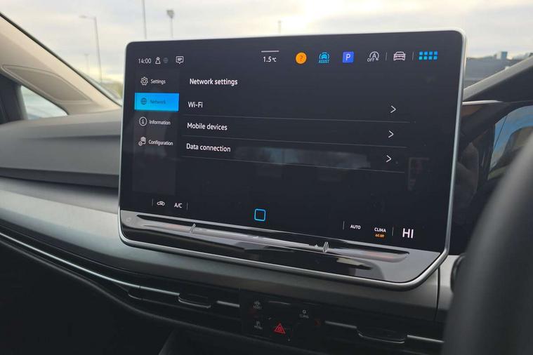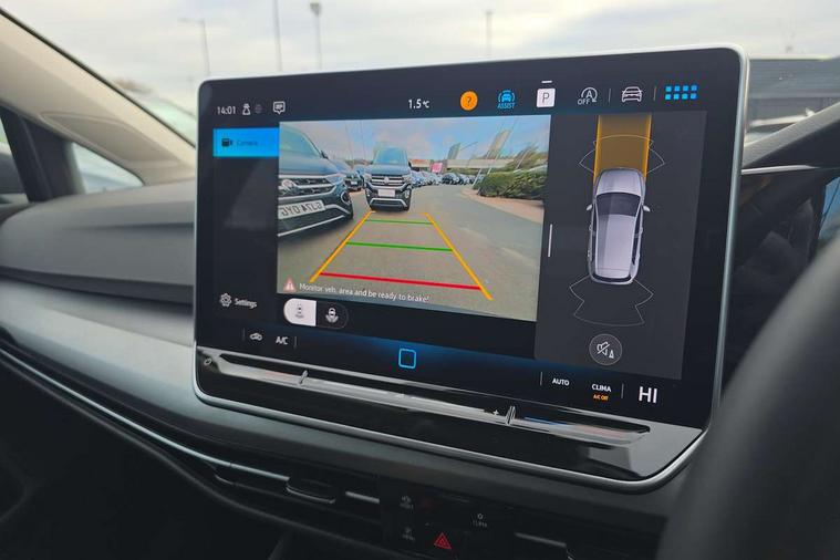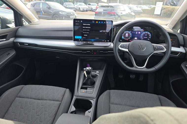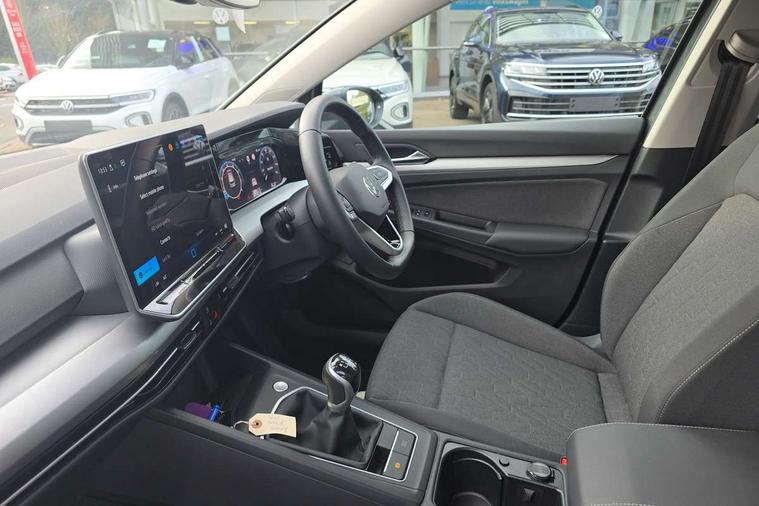 Activated carbon canister, Adaptive cruise control (ACC), Advanced driver attention and drowsiness monitor, Dynamic road sign display, E-Sim card for online connectivity, eCall emergency call system, Multi-color Digital cockpit pro, selection of different info profile possible, Multifunction front facing camera for distance control, Navigation system, Oncoming vehicle braking when turning including swerve support, Preparation for light assist system, Speed limiter, Speedo, rev counter, electronic odometer, trip, service interval display, exterior temperature and fuel gauge, Voice enhancer and voice control, Warning signal and warning light for front and rear seatbelts not fastened, We connect plus preparation, We connect preparation, Wireless app connect, Petrol Particulate Filter, Start-stop system with battery regeneration (recuperation - energy recovery during braking), XDS electronic differential lock for improved traction and handling, 2 USB C ports in front, 2 USB charging sockets on the centre console in the rear charging capacity upto 45W, Comfort telephony + wireless charging, without wireless aerial connection, Digital radio reception (DAB), Diversity antenna for FM reception, Gaming platform via car app, Infotainment system with 12.9" display, Mobile phone interface with inductive charging feature, 3rd brake light, Auto dimming rear view mirror, Auto headlights, Automatic headlamp activation with Coming home and Leaving home feature, Body colour door handles, Body colour door mirrors, Exterior ambient lighting with illuminated door handles, Exterior mirrors convex on the left and aspherical on the right, Front and rear electric windows, Heat insulating windshield made of laminated glass, LED daytime running lights, Rain sensor, Rear exhaust tailpipe, Rear fog light on one side and reversing lights on both sides, Rear side wing doors, Rear tinted glass 65% light absorbing from B pillar backwards, Rear windscreen washer and wiper with interval delay, Remote electrically foldable door mirrors, puddle lights and reverse activated passenger's door mirror, Standard bumpers, Welcome light with surround lighting, 12V socket in front centre console, 12V socket in luggage compartment, 3 rear head restraints, 3 seat bench in 2nd row, Chrome plated radiator grille inserts, air vent surrounds and light switch surrounds, Front centre armrest, Front head restraints, ISOFIX anchors for child seats on outer rear bench seats and on front passanger seat compatible for i-Size, Leather gearshift handle, Luggage compartment lighting, Rear cupholder and loadthough, Single front passenger seat, Soul black instrument panel, Split folding backrest with centre armrest and unsplit rear seat bench, Standard pedal cluster, Storm grey roof lining, Sun visors with illuminated vanity mirrors, Parking and comfort pack - Golf Estate/Hatchback, 3 point height adj front seatbelts + pretensioners, 3 rear three point seatbelts, ABS, Autonomous emergency braking front assist with pedestrian and cyclist monitoring, Child locks on rear doors, Driver and front passenger airbag with front passenger airbag deactivation, Electronic parking brake with auto hold, ESC (Electronic Stability Control), Extended pedestrian protection measures, Rear disc brakes, Two tone horn, Tyre pressure loss indicator, Volkswagen roadside assistance, Alarm with interior protection, Anti theft wheel bolts, Keyless start with SAFE lock, Preparation for alcohol interlock, Nature cross brushed decorative inserts for dashboard and front door panels,