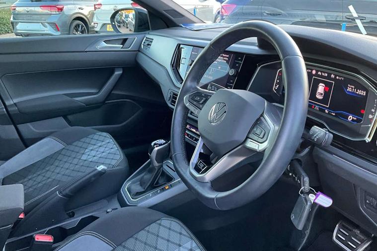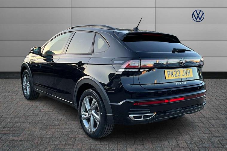 Adaptive cruise control, App-Connect including App-Connect Wireless, Digital cockpit pro - 10.25" high resolution TFT dash display screen with customizable menus and information, Driver alert system, Driving profile selection, e-Call (emergency call), Power Steering, Travel assist including emergency assist, Washer fluid level indicator, Wireless Charging including Bluetooth, Start-stop system with battery regeneration (recuperation - energy recovery during braking), XDS electronic differential lock for improved traction and handling, Digital radio reception (DAB+), Diversity antenna for FM reception, WeConnect plus, Ambient lighting with logo projection, Aspherical driver's exterior mirror, Auto headlights, Body coloured bumpers, Body coloured exterior mirror housings and door handles, Bumpers in R-Line style, Electric windows, External USB type C socket and charging sockets, Front fog lamps with cornering function, Front scuff plates with R-Line logo, Headlight range control, LED headlamps, LED rear combination lamp, LED third brake light, Left convex exterior mirror, Power folding adjustable/heated exterior mirrors and front passenger exterior mirror lowering function, Rear fog light on one side, reversing light on both sides, Rear side wing doors, Rear wash/wipe with intermittent wipe setting, 12V socket in centre console, 2 front reading lights, 3 rear head restraints, 3 seat bench in 2nd row, Air care climatronic air conditoning system with active combination filter and 2-zone temperature control, Black carpets, Black roof lining, Child seat anchor for child seat system i-Size, 2x top tether and child seat anchor in front on front passenger side, Chrome bezel for instrument cluster, vents, door handles + gear shift, Driver and front passenger seat height adjustment, Front + rear carpet mats, Front centre armrest, Front footwell illumination, Front sports comfort seats, Height and reach adjustable steering wheel, Interior ambient lighting and surround lighting, Karoso artvelours cloth upholstery, Leather trimmed gear knob, Leather wrapped multifunction steering wheel, Luggage compartment floor, Luggage compartment light, Lumbar support for driver's and front passengers seat, Seat covers in grey + titanium black, Single front passenger seat, Split folding backrest with centre armrest and unsplit rear seat bench, Stainless steel pedals, Storage compartment under front seats, Sun visors with illuminated vanity mirrors, Chrome Package - Taigo, Drivers assistance pack - Taigo, Light and Sight pack including High beam assist - Taigo, 2 x 3-point seatbelts/outer rear seats with ECE label, 3-point seat belts in front with pretensioner and height adjustment, 3-point seatbelt for centre rear seat, Driver and front passenger airbags with front passenger airbag de-activation, front side and curtain airbags, Driver and front passenger safety-optimised head restraints, Electronic stability control, Extended and predictive pedestrian/ cyclist protection, Front and rear disc brakes, Front curtain and side airbags with center airbag, Hill start assist, Manual rear child locks, Single tone horn, Tyre pressure loss indicator, Anti-theft alarm system with interior monitoring, backup horn, and towing protection, Anti-theft wheel bolts, Grey anodised matte decorative inserts in dash and front door panels, Low rolling resistance tyres,