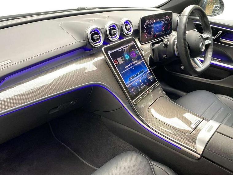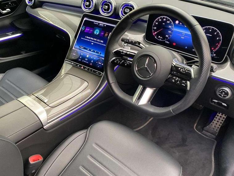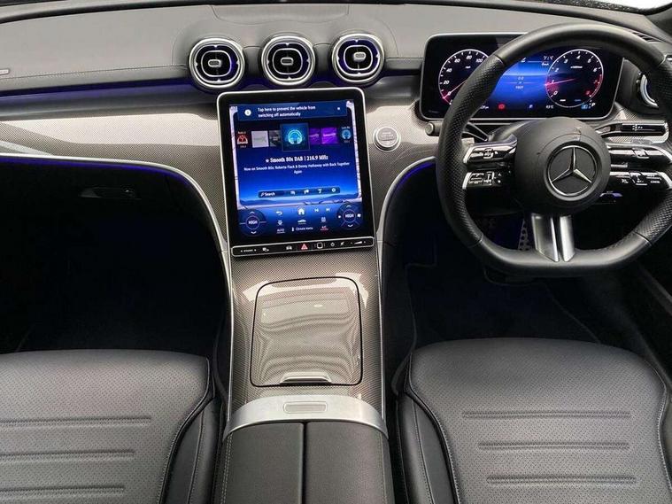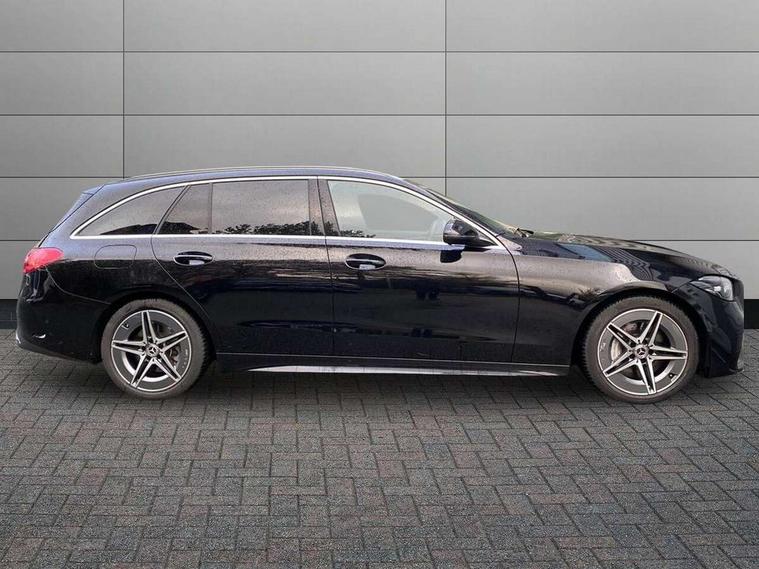 11.9" high resolution multimedia colour display, 12.3" digital instrument cluster display, Active lane keeping assist, Active parking assist with PARKTRONIC, Attention assist, Blind spot assist, Cruise control with speedtronic variable speed limiter, DYNAMIC SELECT with a choice of driving modes (Comfort, ECO, Sport, Sport+, Individual), E-call, Extended MBUX functions, Finger print sensor, Fluorescent jacket for driver, Hard disc navigation, MBUX navigation premium, Mercedes me remote services, Outside temperature gauge, Service indicator (ASSYST), Smartphone integration, Sports direct steer speed sensitive steering, Status display for rear seat belts in instrument cluster, Tailgate, Traffic sign assist, Wireless charging system for mobile devices, 9G TRONIC 9 speed automatic transmission, Petrol Particulate Filter, Sport suspension, DAB Digital radio, MBUX multimedia system, Adaptive brake lights, Adaptive high beam assist, Aluminium roof rails, AMG body styling front apron, rear apron and side skirts, AMG Line exterior, Body coloured bumpers, Body coloured door mirrors, Electric windows with one touch opening/closing and obstruction sensors, Electrically adjustable and heated door mirrors, Heat insulating dark tinted glass, LED daytime running lights, LED high performance headlamps, LED Indicators, LED tail lights, LED third brake light, Radiator diamond grille with integrated Mercedes Benz star and louvre silver with chrome pins, Rain sensor with automatic windscreen wiper activation, Rear side wing doors, Rear wiper, Two visible exhaust pipes integrated into rear bumper, 3 seat bench in 2nd row, 40:20:40 split folding rear bench seat, Ambient lighting premium, Ambient lighting with projection of brand logo, AMG floor mats, AMG line interior, Artico man-made leather upholstery, Auto Mercedes-Benz child seat recognition sensor, Black roof liner, Double cupholder in centre console, Electrically height/reach adjustable steering column, Folding rear seat backrest, Front and rear head restraints, Gearshift paddles on steering wheel, Heated front seats, Illuminated door sills with Mercedes Benz lettering, Illuminated glove compartment stowage, Load compartment cover, Multifunction sports steering wheel in nappa leather, Rear top tether child seat ISOFIX attachment, Single front passenger seat, Sports seats, Sunvisors with illuminated vanity mirrors, THERMATIC 2 zone automatic climate control, Boot comfort package - C Class, Easy pack tailgate - C Class, Interior light package - C Class, Memory package - C Class, Mirror package - C Class, Parking package with reversing camera - C Class, Stowage space pack - C Class, USB package plus - C Class, 3 rear 3 point seatbelts, Active bonnet pedestrian safety measure which detects an impact and raises bonnet, Active brake assist, Adaptive brake system with HOLD function and brake drying in the wet, Anti-lock braking system (ABS), Black seat belts, Brake calipers with Mercedes-Benz lettering + perforated front brake discs, Child proof door locks, Drivers knee airbag, Drivers pelvis airbag, Dual stage driver/passenger airbags, Electric parking brake, Electronic Stability Programme (ESP), Front centre airbag between driver and front passenger seats, Front side airbags, Tyre pressure monitoring system, Warning triangle and first aid kit, Window airbags for driver, front passenger and rear passenger, Antitheft alarm system, Interior monitoring system and Increased antitheft protection, Central locking with interior switch, automatic locking and crash sensor with emergency opening function, Chrome surround in electric key, Keyless Go, Urban guard vehicle protection plus, Dashboard, instrument panel and beltlines in ARTICO man made leather in nappa look, Metal structure trim element with centre console in metal structure finish, 18" AMG 5 spoke design aerodynamically optimised alloy wheels painted in tantalite grey with high sheen finish, TIREFIT with tyre inflation compressor,