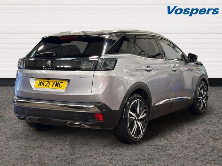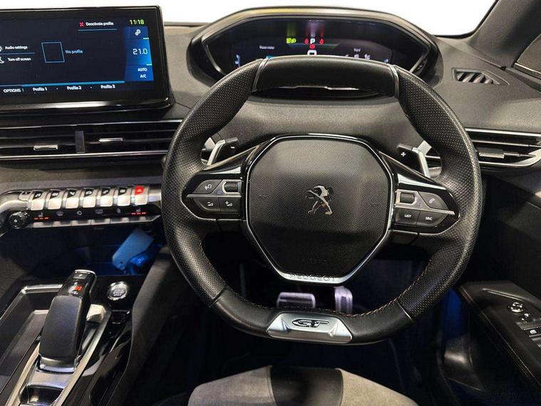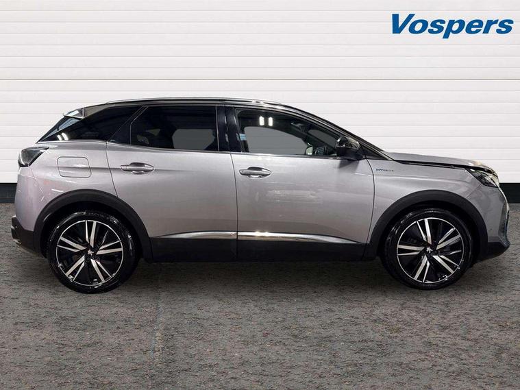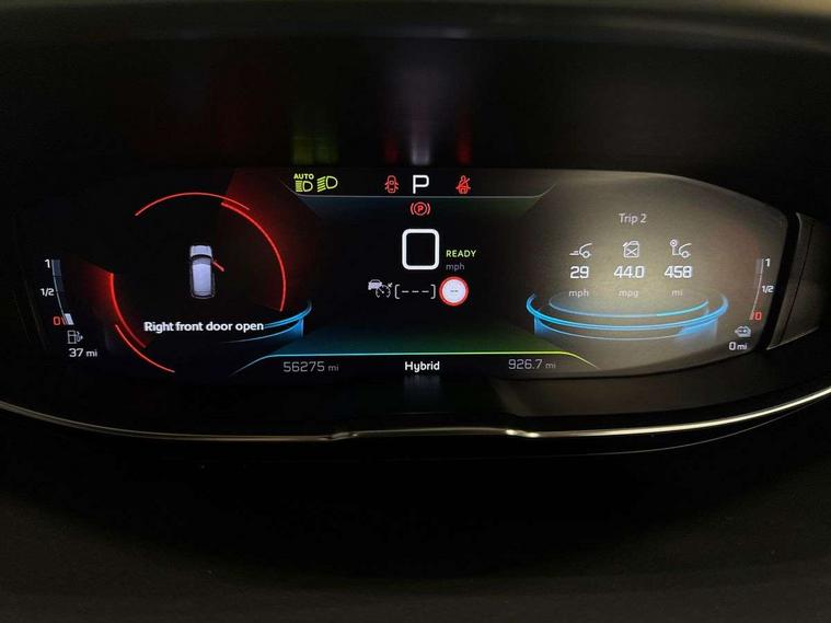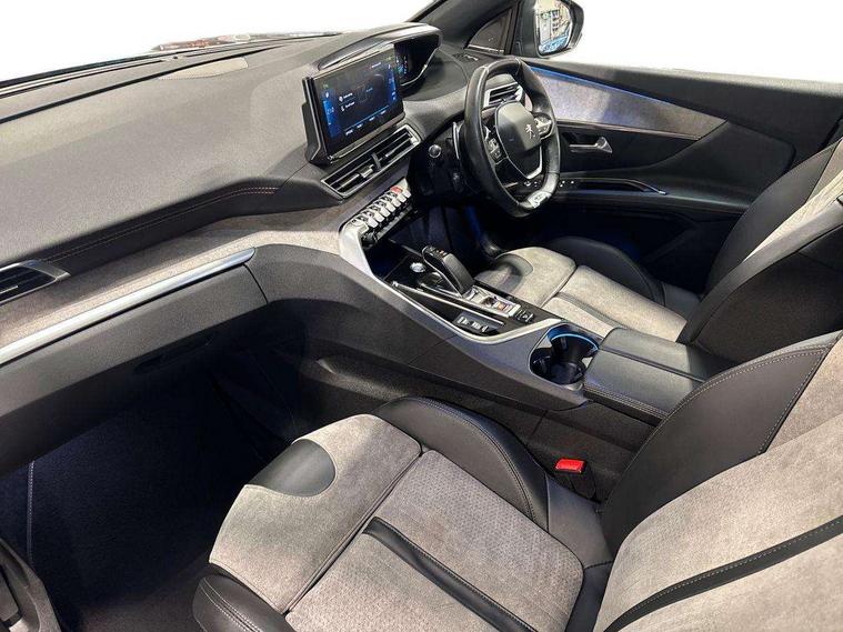 3D connected navigation with 10" HD touchscreen + voice recognition system, Bluetooth telephone facility, Driver attention alert system, Extended traffic sign recognition, Exterior temperature indicator with ice warning, Front parking sensors, Lane departure warning system, Mirror screen with mirror link, apple carplay and android auto, Multi function trip computer, Passive blind spot monitoring without Steering correction, Peugeot connect SOS and assistance, PEUGEOT i-Cockpit with 8.0" capacitive touchscreen in centre console, Peugeot i-cockpit with compact multi-function sports steering wheel, PEUGEOT i-Cockpit with configurable 12.3" Head-up digital instrument panel, Rear parking aid, Rear passenger USB charging sockets (x2) (type A), Speed limit recognition and recommendation, Dynamic stability control and electronic anti-skid system, Mode 3 type 2 cable for wallbox charging, 6 speakers radio with mp3 compatible, DAB Digital radio, USB socket, Aluminium longitudinal roof bars, Automatic hazard light activation upon heavy brake application, Automatic triggered rear windscreen wiper in reverse gear, Body colour door handles, Body colour rear roof spoiler with stainless steel edging trim, Body protectors (bottom of front and rear bumpers + wheel arches + protection at bottom of doors) in black, Chrome front wing trim, Chrome rear bumper facia, Chrome side window trim, Dark tinted rear side windows + tailgate window, Electric operated/heated door mirrors, Fog Mode, Frameless electrochrome rear view mirror, Front door sills with stainless steel insert featuring 'PEUGEOT' lettering, Front windscreen wiper with magic wash cleaning system, Full LED headlights with LED fog lights with static cornering function, Gloss black B and C pillar and aerodynamic deflector trim, Gloss black front bumper air scoops, Gloss black rear cluster connecting strip, Headlights left on audible warning, Heated rear windscreen with integrated antenna, HYBRID4 emblem on front wings and tailgate, LED daytime running lights, LED rear number plate lighting, LED side indicator lights integrated into door mirrors, LED third brake light, Nera black door mirrors, One touch electric front/rear windows with pinch protection, Power folding door mirrors with auto dipping function in reverse gear, Radiator grille in chrome edge trim and facets, Rear LED Peugeot signature 'Claw Effect' lights, Rear side wing doors, Stainless steel roof arches, Twin exhaust tailpipe, 1/3 to 2/3 split folding rear seats, 12V Sockets in dashboard, rear cabin and load area, 2 cupholders in front centre console, 2x Rear coat hooks, 3x Isofix child seat fittings in the front passenger and outer rear seats, 4 Grab handles retractable and damped, Aikinite stitching in armrest, gear lever and dashboard facia, Aluminium pedals, Blue ambient lighting for connecting zone, Blue ambient lighting to front door panels, central storage and cupholders, Centre front armrest with butterfly wing opening and illuminated storage compartment, Dual zone automatic climate control, Electric power steering with reach and rake adjustable steering column, Flocked front door pocket interior with blue ambient lighting, Flocked glovebox interior, Foldable front passenger seat, Footwell illumination, Front interior light with 2 reading spotlights and rear interior light with timer, Front seat back map pockets, Gear shift indicator, Height adjustable front seats, Illuminated glovebox, Individual left and right controls in boot for seat folding, LED interior lighting in storage spaces and load area, Mistral floor mats with Aikinite contrast stitching, Mistral full grain perforated leather steering wheel with aikinite stitch detail and satin chrome 'GT' emblem, Rear bench seat with central armrest and ski hatch, Rear centre console ventilation system, Roof lining - Mistral black, Satin chrome dashboard trim, Satin chrome digital instrument panel and touchscreen trim, Satin chrome front door panel recess trim, Satin chrome interior door handles, Satin chrome scorpion's tail and toggle switch trim, Seatbelt not fastened audible and visual alert for front seats, Seatbelt unfastened on the move audible and visual alert for front and rear seats, Sunvisors with illuminated vanity mirrors, Drive assist plus pack - 3008, Driver sport pack - 3008 Auto, Visibility pack - 3008, 3x Rear three-point retractable seatbelts with force limiters in the outer rear seats, ABS (Anti-lock Braking System) with EBD (Electronic Braking Distribution) and EBA (Emergency Braking Assistance), Adaptive driver and front passenger airbags with passenger airbag deactivation function, Driver and front passenger side airbags, Electric child locking functionality on rear windows and doors, Electric parking brake, Front and rear curtain airbags, Front optimised safety headrests and 3 x rear retractable headrests with height adjustable, Front three point retractable seatbelts with pre tensioners and force limiters, Front ventilated disc brakes and rear disc brakes, Hill start assist, Two tone horn, Automatic door locking when moving off, Electronic immobiliser, key operated exterior door lock from the left hand door, Perimetric and volumetric alarm with lift and tilt sensor, Peugeot Open and Go System, Remote control central locking with two plip keys, Grey greval alcantara dashboard and door panel inserts, 18" Detroit onyx black diamond cut alloy wheels, Puncture repair kit including compressor, sealant cartridge and towing eye,