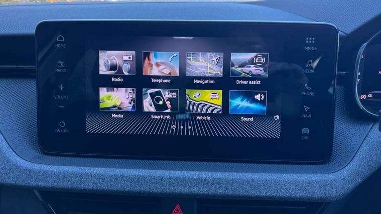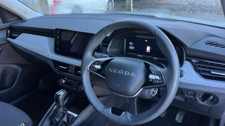 Advanced driver attention and drowsiness monitor, Bluetooth system, E-call, Front assist system, PAS, Rear parking sensors, Rear view camera, Service indicator, Speed limiter, Traffic sign recognition, Virtual cockpit with 10.25" display, Voice control system, Wireless smartlink, 4 USB C ports, 8 Speakers, 8.25" Skoda infotainment display, 9.2" Skoda navigation display, DAB Digital radio, Auto dimming rear view mirror, Automatic headlight control with coming home and leaving home feature, Black roof rails, Body colour bumpers, Body colour door mirrors and handles, Chrome grille surround, Front and rear electric windows, Full LED headlights, Heated rear window, LED brake lights, LED daytime running lights, LED front turning lights, LED high beam, LED low beam, LED third brake light, Rear LED fog light, Rear side wing doors, Rear wiper, Ticket holder inside windscreen, 12V socket in luggage compartment, 3 seat bench in 2nd row, Black hotstamping, Cargo elements, Chrome inner door handles, Driver and passenger sun visors with vanity mirror, Dual zone climate control, Front and rear roof lights, Front centre armrest, Front head restraints, Glove compartment with illumination, Height adjustable driver seat, Height adjustable front passenger seat, Ice scraper, Inner circulation control with pollen filter, ISOFIX on front passenger seat, Isofix preparation for back seats, Krepp recycled decor inserts, Leather gearknob and handbrake lever, Loft cloth upholstery, Manual lumbar support for front seats, Net package and top tether hooks in boot space, Net under rear shelf, Overhead glasses storage compartment, Pocket on the back of both front seats include mobile phone pockets, Rake/reach adjustable steering wheel, Reading lights, Satin black door inserts, Single front passenger seat, Textile floor mats, Third rear headrest, Top tether for front passenger seat, Umbrella in driver's door, 3x3 point rear seatbelts, Airbags - driver and front passenger, Disc brakes, ESP, Extended and predictive pedestrian/cyclist protection, Front passenger airbag deactivation switch, Front side airbags with curtain airbags, Hill hold control, Manual leather parking brake, Manual rear child locks, One tone horn, Seatbelt reminder for driver an co-driver, Traction control, Tyre pressure monitor, Anti-theft alarm system with interior monitoring, backup horn, towing protection and remote central locking with SAFE system, Anti-theft wheel bolts, Electronic engine immobilizer,
