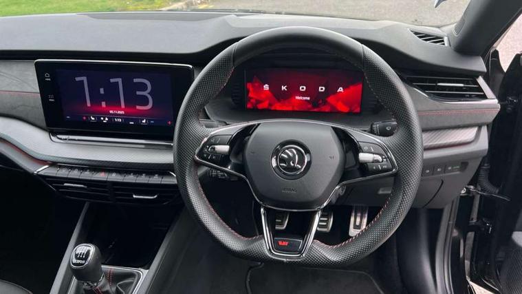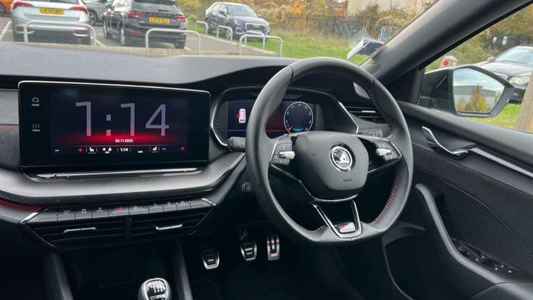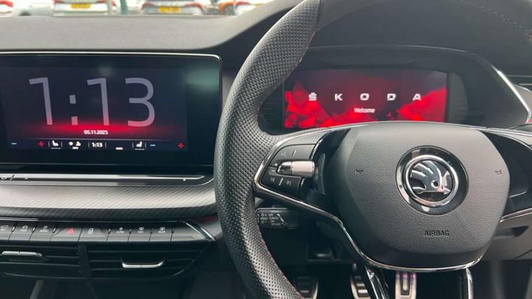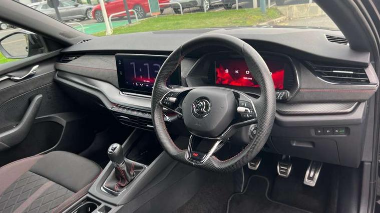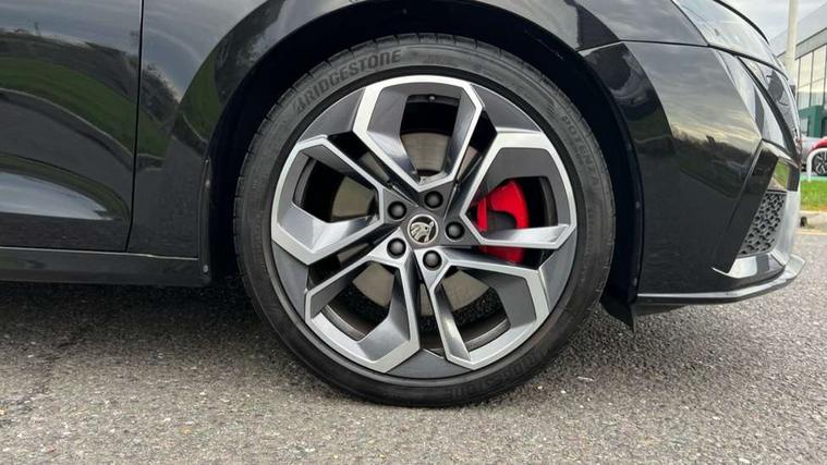 1x USB Type C port in rear view mirror (charging only), 2x USB Type C ports in rear of front centre armrest (charging only), Bluetooth system, Columbus satellite navigation with 10" touchscreen display, Driver fatigue sensor, eCall emergency system, Front and rear parking sensors with manoeuvre assist, Front assist system, Progressive dynamic steering, Speed limiter, Turn Assist, Virtual Cockpit - 10.25" digital display, Virtual pedal with electrically operated boot door (Rear LED lights (high functionality), dynamic indicators - Estate, Voice control system, Wireless SmartLink for Apple Car Play, Electronically controlled limited slip differential, Front and rear stabilizers, 2x USB Type C ports (for charging and data transfer), 8 speakers, DAB Digital radio, Aero front windscreen wipers with intermittent function, Auto dimming rear view mirror, Black roof rails, Body colour door handles, Chrome exhaust tailpipes, Door sills with vRS logo, Electric front and rear windows, Exterior gloss black sports styling including front grille, side strip, window surrounds, door mirror and badging, Full LED Matrix headlights with AFS, rear LED lights (high functionality) and dynamic indicators and cornering front fog lights, Headlight washers, Heated rear windscreen, High level third brake light, Ice scraper in fuel cap, LED daytime running lights, Rain and light sensors, Rear fog light on one side, Rear privacy glass, Rear side wing doors, Rear spoiler, Rear window wiper, 3 seat bench in 2nd row, 4 foldable roof handles, Aluminium pedals, Black headlining, Black microsuede padded dash panel with red contrast stitching, Chrome inner door handles, Front centre armrest, Front head restraints, Heated front seats, Illuminated glovebox, Leather trimmed gearshift lever, Luggage compartment lighting with two side lamps, Mechanical rear seat release, Parcel shelf - rolling, Single front passenger seat, Sunglasses storage, Textile floor mat set, Three spoke leather sports multifunction steering wheel, Ticket holder, Umbrella in door panel, Unsplit rear bench seat and split folding backrest, LED interior light pack - Octavia, 3 point front/outer rear seatbelts+pre-tensioners, Alarm with interior monitoring, tilt sensor and back up horn, Automatic door unlocking in case of crash, Automatic fuel cut off in case of crash, Automatic warning lights in case of emergency braking, Curtain airbags and front side airbags, Driver and front passenger airbags, Drivers knee airbag, Electronic parking brake, ESC including ABS, EBV, MSR, ASR, EDS, HBA, DSR, Front and rear disc brakes, Front central airbag, Hill hold control, Hill start assist, ISOFIX on front passenger seat and outer rear seats, Manual rear child locks, Passenger airbag deactivate switch, Pro active services, Red brake calipers, Two tone horn, Tyre pressure monitor, Visual and acoustic seat belt reminder, Warning reflectors in front door, Door locks with immobiliser, Keyless entry and start/stop including rear doors, Remote central locking, Carbon optic decorative inserts, Gloss black air vent surrounds, 19" Altair anthracite alloy wheels,