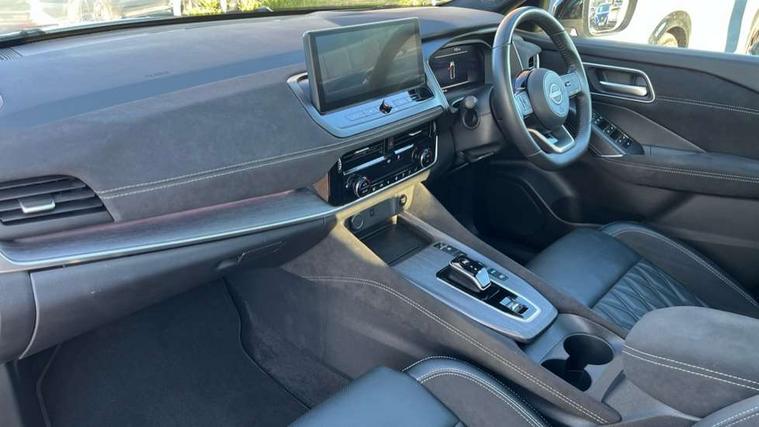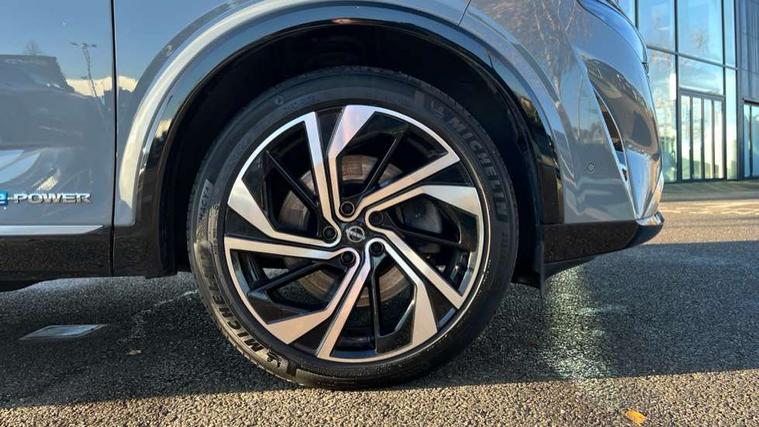 2 front USB-C ports, 2 rear USB-C ports, 360 degree Intelligent around view monitor with moving object detection, Advanced windscreen head up display, Blind spot intervention, Blind spot warning, Drive assist custom mode, Drive modes (sport, normal, eco), Driver drowsiness and attention warning, e-Pedal step, Electric speed sensitive power steering, Emergency and breakdown call, Emergency lane keep assist, Emergency Stop Signal (ESS), Engine start/stop button, EV mode switch, Event data recorder, Front and rear parking sensors, Full Digital 12.3" TFT Digital Combimeter, Google virtual personal assistance, Hands free power tailgate, Idle stop/start system, In-car WIFI hotspot, Intelligent Cruise control (ICC), Intelligent forward collision warning, Intelligent speed assist, Lane departure warning system, Nissan connect 12.3 inch touchscreen infotainment system, Nissan connect navigation with google maps, Nissan connect services 2.0 (Google Automotive System), Outside temperature sensor, Rear cross traffic alert, Reversing detection, Traffic jam pilot, Wireless Apple CarPlay/Android Auto, Wireless charging pad, Limited slip differential, Multi link suspension, 10 Bose speakers - 2 tweeters, 6 high and medium frequency door speakers and 2 in subwoofer, AM/FM audio system with DAB, Bluetooth audio streaming, Bose acoustimass bass box, Auto dimming frameless rear view mirror, Auto rear wiper when reversing, Body colour mirror caps, Body coloured bumpers, Body coloured door handles, Bodyside mouldings, Chrome side window finisher, e-POWER badging, Electric auto folding door mirrors, Electrically adjustable and heated door mirrors with LED turn indicator, Follow me home headlights, Glossy black bumper inserts and fenders, High beam assist, Intelligent auto headlights, LED 3rd brake light, LED daytime running lights, LED headlights with adaptive driving beam, LED rear lights, LED sequential turn lights, One touch front and rear electric windows with remote opening and closing, One touch passenger window, Rear privacy glass, Rear roof spoiler, Rear side wing doors, Rear styling plate, Reverse tilting door mirrors, Shark fin antenna, Silver roof rails, Splash free rain sensing wipers, Super RED rear LED lights, Super UV and infrared cut glass, Thermaclear heated windscreen, 3 bench rear seats in 2nd row, 3 rear headrests, 60/40 split folding rear seat bench, Chrome interior door handles, Dark headlining, Driver seat back pocket, Dual zone automatic climate control with pollen filter, e-POWER shifter, Fixed Glass roof with electric sunshade, Front door with bottle holders, Heated front seats, Heated steering wheel, Height adjustable front headrests, Luggage board system, Luggage space lighting, Multifunction steering wheel, Passenger seat back pocket, Quilted premium leather upholstery, Rear door bottle holders, RGB ambient light (Full area coverage), Single front passenger seat, Smooth leather steering wheel, Tilt/telescopic adjustable steering wheel, Two rear isofix child seat anchorage points with top tether, 3x3 point rear seatbelt pretensioners + load limiters, Autonomous emergency braking, Child locks on rear doors, Curtain and front side, far side airbags, Driver and passenger airbags, Driver, passenger and 2nd row rear seat belt reminder, Electric handbrake with auto hold function, Front seatbelt pretensioners + load limiters, Height adjustable front seatbelts, Hill start assist, intelligent front emergency braking, Rear automatic braking, Tyre pressure monitoring system, Vehicle dynamic control, Engine immobiliser, Intelligent key with walk away lock and approach unlock functions, Remote central door locking with deadlocking, Thatcham alarm, 20" Diamond cut alloy wheels, Tyre puncture repair kit,
