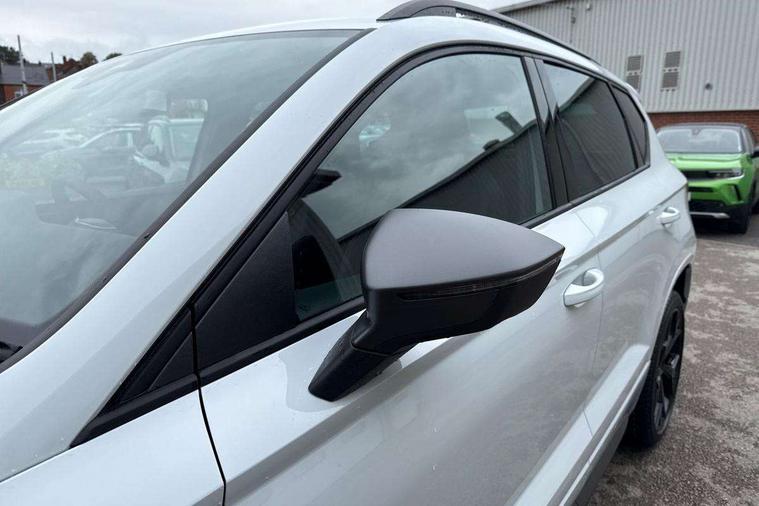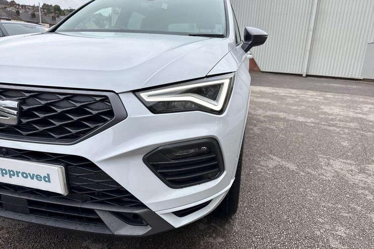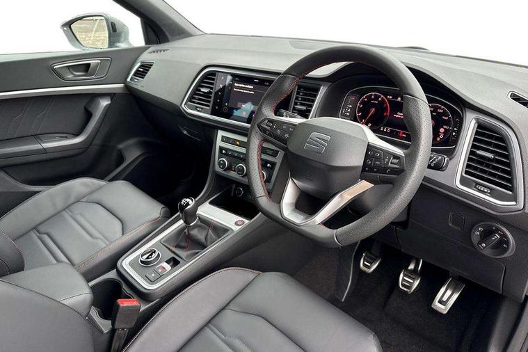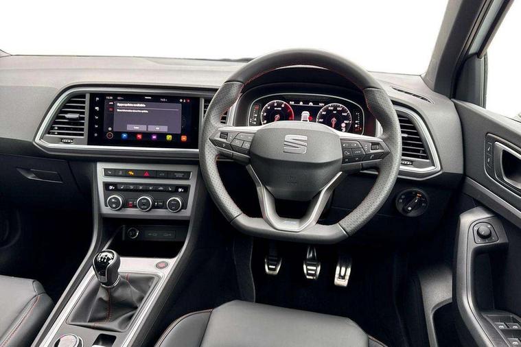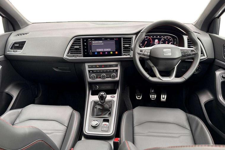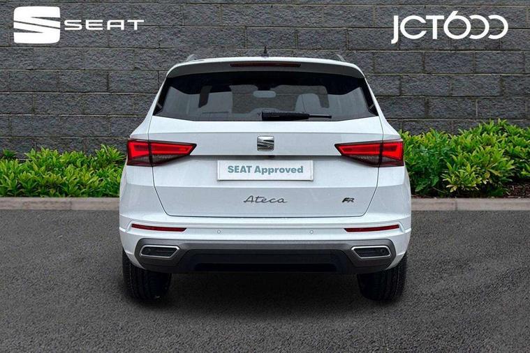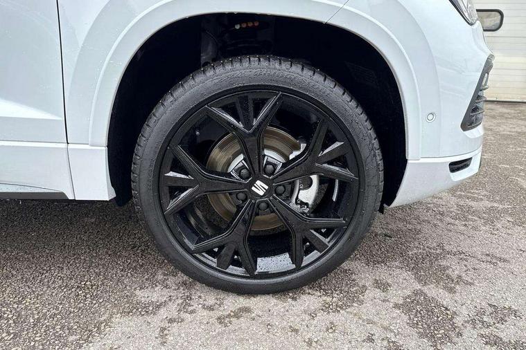 10" Digital cockpit, Bluetooth audio streaming with handsfree system, E-call, Electric tailgate with virtual pedal, Outside temperature gauge, Progressive power assisted steering, SEAT drive profile with driving experience button - Normal, Sport, Eco and Individual mode, steering and throttle response, Self parking functionality (includes front and rear parking sensors), Speed limiter, Start/stop system, Top view camera with rear view camera, Trip computer, wired and wireless full link smartphone integration, Wireless phone charger, Steering wheel mounted audio/phone controls, Black roof rails, Black side window trim, Body colour bumpers, Body coloured wheel arch surrounds, Chrome front grille frame, Dark tinted rear windows, Daytime running lights, Door mirrors with welcome light silhouette, Dynamic headlight range control with self adjusting whilst driving, Electric adjustable/heated/folding door mirrors, Front and rear electric windows, Illuminated aluminium front door sill, LED 3rd brake light, LED headlamps with lens and LED front fog lamps with cornering function, LED rear tail lights with dynamic indicators, Rear exhaust tailpipe, Rear fog lights, Rear side wing doors, Rear spoiler, Rear wash/wipe, Variable front intermittent wipers, 12V socket in front, 3 seat bench in 2nd row, 60/40 split folding rear seat, Aluminium pedals, Black greenhouse interior roof, Dual zone climate control, Electric adjustable driver seat with memory function, Front and rear head restraints, Front centre armrest, Front seat back storage pockets, Heated front seats, Height adjustable passenger seats with lumbar adjustment, ISOFIX points in outer rear seats with top tether anchorage points, Leather sports steering wheel and gear knob, Leather upholstery with front comfort seats, Rear armrest and easy back seat release mechanism from boot, Single front passenger seat, Convenience pack - Ateca, Interior lighting pack - Ateca, Navigation system pack with DAB - Ateca, Safety and driving pack (L) - Ateca, Safety and driving pack with attention and drowsiness assist - Ateca, 3x3 point rear seatbelts, ABS, Traction control system (TCS), Electronic stability control (ESC) and Electronic differential lock system (XDS), Airbags - Driver and front passenger airbag with deactivation, front side, two curtain and driver's knee airbags, Electric parking brake with auto hold function, Front and rear seatbelt reminder, Hill hold control, Manual rear child locks, Single tone horn, Tyre pressure monitoring system, Alarm, Keyless entry, Locking wheel bolts, Remote central locking, Chrome interior detailing, 19" Exclusive alloy whelels 36/10 in glossy black, Tool kit,