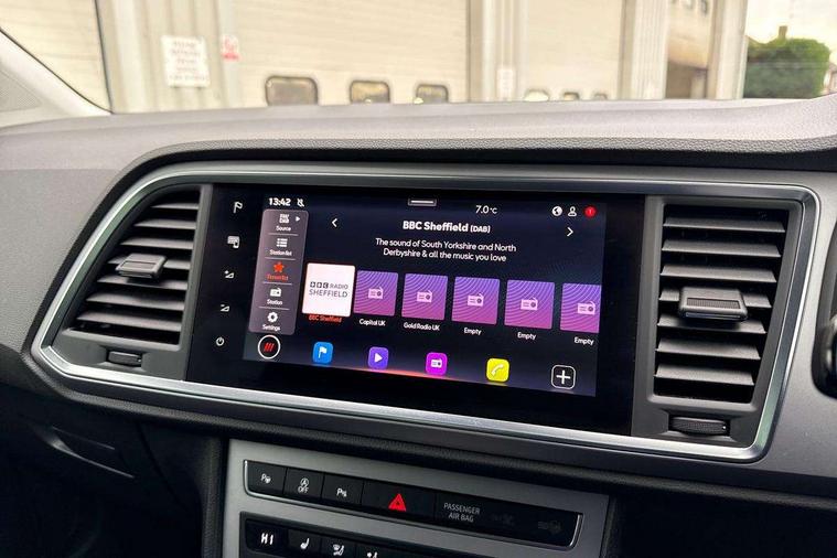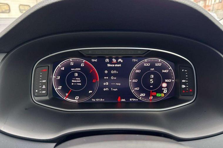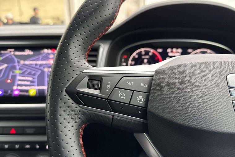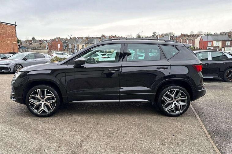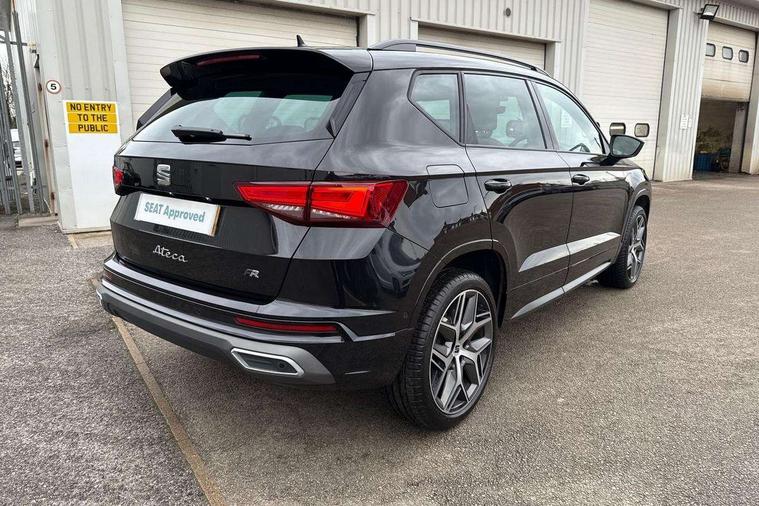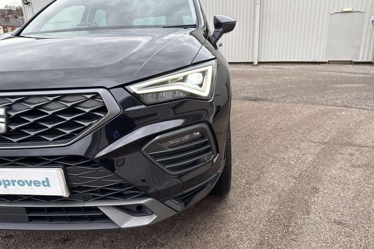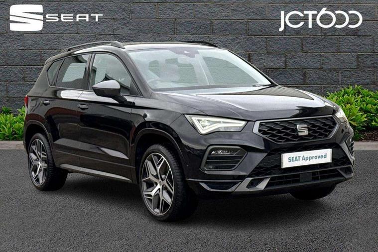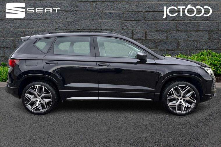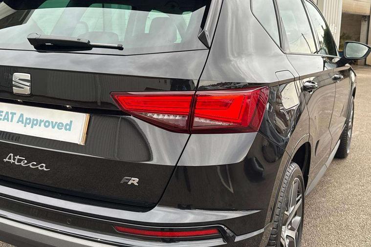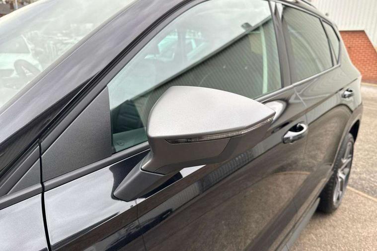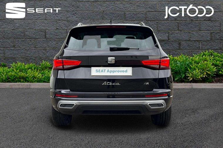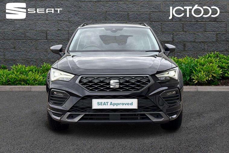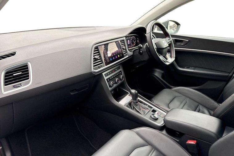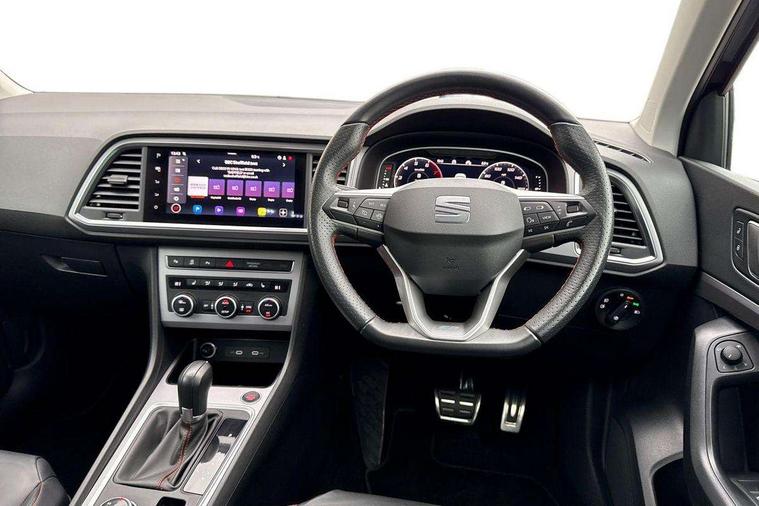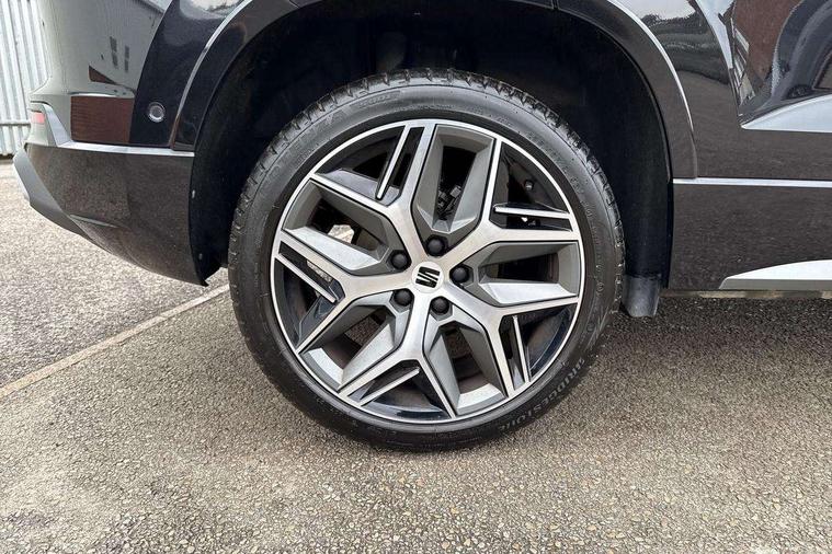 10" Digital cockpit, Cruise control system with speed limiter, E-call, Outside temperature gauge, Progressive power assisted steering, SEAT drive profile with driving experience button - Normal, Sport, Eco and Individual mode, gearshift, steering and throttle response, Self parking functionality (includes front and rear parking sensors), Start/stop system, Tailgate, Trip computer, wired and wireless full link smartphone integration, Wireless phone charger, Steering wheel mounted audio/phone controls, Black roof rails, Black side window trim, Body colour bumpers, Body coloured wheel arch surrounds, Chrome front grille frame, Dark tinted rear windows, Daytime running lights, Door mirrors with welcome light silhouette, Dynamic headlight range control with self adjusting whilst driving, Electric adjustable/heated/folding door mirrors, Front and rear electric windows, Full LED headlamps with lens and LED front fog lamps with cornering function, Illuminated aluminium front door sill, LED 3rd brake light, LED rear tail lights with dynamic indicators, Rear exhaust tailpipe, Rear fog lights, Rear side wing doors, Rear wash/wipe, Roof spoiler, Variable front intermittent wipers, 12V socket in front, 3 seat bench in 2nd row, 60/40 split folding rear seat, Aluminium pedals, Dual zone climate control, Electric adjustable driver seat with memory function, Front and rear head restraints, Front centre armrest, Front seat back storage pockets, Heated front seats, Height adjustable passenger seats with lumbar adjustment, ISOFIX points in outer rear seats with top tether anchorage points, Leather sports steering wheel and gear knob, Leather upholstery with front comfort seats, Manual lumbar support on driver seat, Rear armrest and easy back seat release mechanism from boot, Single front passenger seat, Steering wheel mounted gearshift paddles, Convenience pack - Ateca, Interior lighting pack - Ateca, Navigation system pack with DAB - Ateca, Safety and driving pack with attention and drowsiness assist - Ateca, 3x3 point rear seatbelts, ABS, Traction control system (TCS), Electronic stability control (ESC) and Electronic differential lock system (XDS), Airbags - Driver and front passenger airbag with deactivation, front side, two curtain and driver's knee airbags, Electric parking brake with auto hold function, Front and rear seatbelt reminder, Front assist with autonomous emergency braking, Hill hold control, Manual rear child locks, Single tone horn, Tiredness recognition system, Tyre pressure monitoring system, Alarm, Keyless entry, Locking wheel bolts, Remote central locking, Chrome interior detailing, 19" Exclusive machined alloy wheels with decorative inserts 36/7 in cosmo grey,