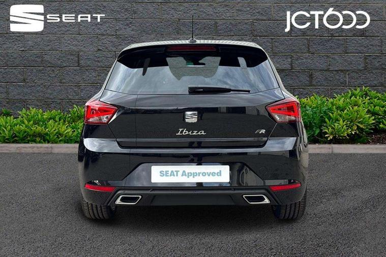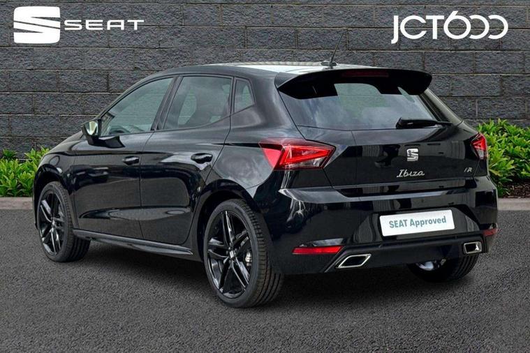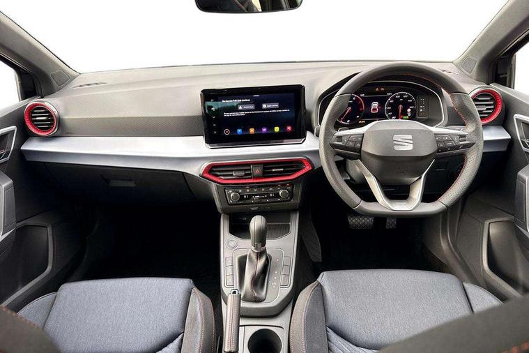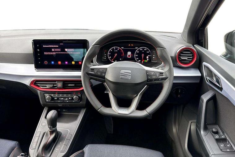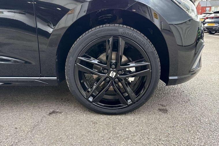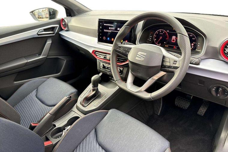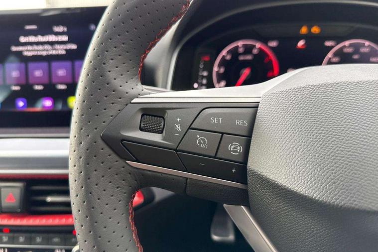 'Lights On' Reminder warning buzzer, 10" Digital cockpit, 9.2" touchscreen navigation system with type C USB socket, Voice control and DAB/AM/FM radio, Auto start and stop system, Bluetooth audio streaming with handsfree system, Digital clock, E-call, Full link smartphone integration with mirror link, wireless apple carplay, Google android auto + USB Type C cable for apple and android devices, Lane assist, Low fuel warning light, Outside temperature gauge, Power Steering, Rear parking sensor, Seat connect plus with safety, service, remote and online, SEAT drive profiles and ECO function, SEAT logo boot release, Speed limiter, Traffic sign recognition, Trip computer, Sports suspension, Auxiliary input socket, Radio/MP3 player, SD card slot, Steering wheel mounted controls, Anti theft roof antenna, Auto dimming rear view mirror, Automatic rain sensing wipers, Black door mirror caps, Black roof spoiler, Black side skirts, Body colour bumpers, Body colour door handles, Brilliant black window surrounds, Dark tinted rear windows, Electric adjustable/heated/folding door mirrors, Electric front windows, Electric headlight adjustment, Electric panoramic sunroof, Electric rear windows, Front/rear fog lights, FULL LED automatic headlights with dynamic headlight range control, coming and leaving home, LED daytime running lights, LED 3rd brake light, LED tail lights, Rear roof spoiler with FR twin exhausts, Rear side wing doors, Rear wiper, 3 seat bench in 2nd row, 60/40 split folding rear seat, Ambient interior lighting, Chrome detailing and black headlining, Dual zone climate control with combination filter, Front courtesy lights, Front cupholders x 2, Front reading lights, Front sport bucket seats, Gear shift indicator, Glovebox, Heated front seats, Height adjustable front and rear headrests (five), Height adjustable front seats, Height/reach adjust steering wheel, Illuminated air vent surrounds, Illuminated boot, Instrument lighting with brightness control, Isofix, Leather multifunction flat bottomed sports steering wheel with gearshift paddles, Microsuede cloth upholstery, Passenger sunvisor, Single front passenger seat, Storage pockets on back of front seats, Sunvisors with mirror and driver side card holder, Safety and driving pack (S) - Ibiza, ABS, Active front headrests, Child locks on rear doors, Electronic stability control, Energy recovery system, Front driver and passenger side airbags with curtain airbag and front passenger airbag deactivation, Hill hold control, Multi-Collision braking, Seat belt reminder for front and rear seats, Tiredness recognition system, Tyre pressure monitoring system, KESSY Keyless entry and go, Locking wheel bolts, Perimeter alarm and interior monitoring with backup horn and tow away protection, Remote central locking + deadlocks, 18" Performance alloy wheels in glossy black,