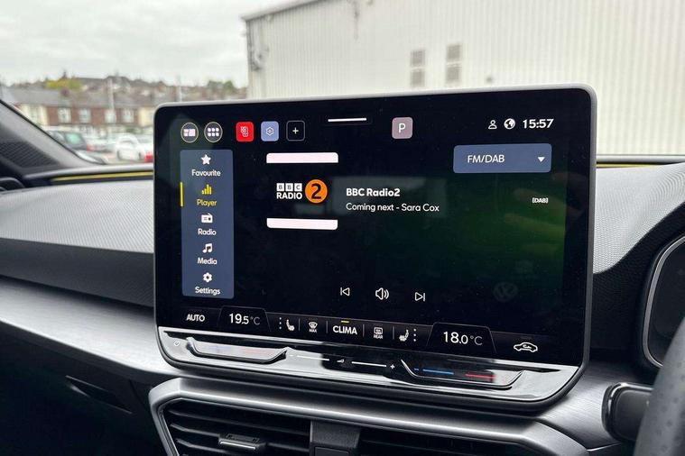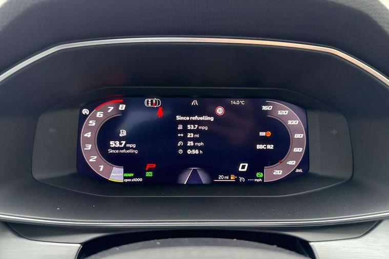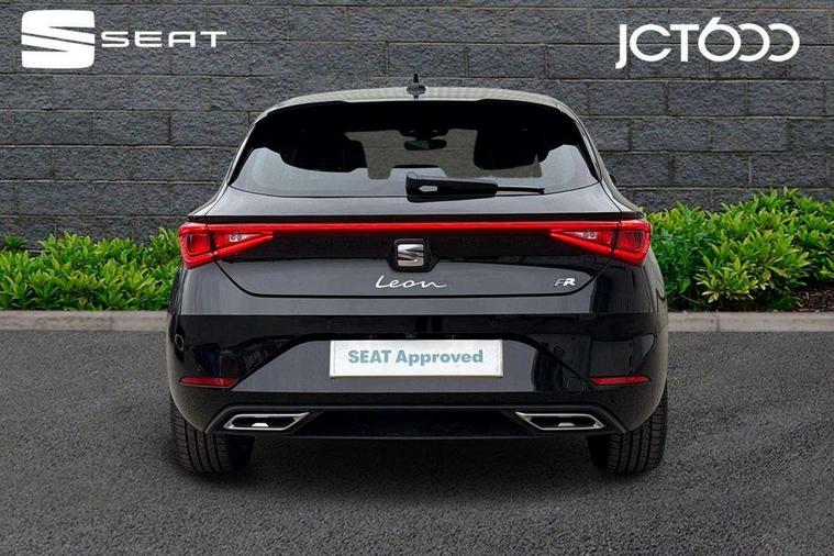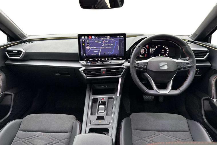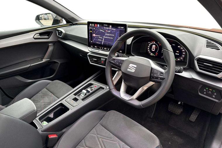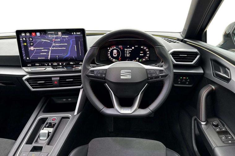 Digital cockpit with multifunction display, Driver attention alert with drowsiness warning, E-call, Front assist with forward collision warning braking reaction to vehicles, pedestrians and cyclists, Full link smartphone integration with Mirror Link, wireless Apple CarPlay and wired Google Android Auto, Intelligent speed assist, Lane assist, Lockable tailgate, Park assist (inc front/rear parking sensors), Power assisted speed sensitive electro-mechanical steering, Rear view camera, RPM, trip computer, outside temp gauge, instrument light brightness, low fuel warning light, lights on reminder, gearshift indicator, SEAT drive profile with 4 modes (Eco/Normal/Sport/Individual), throttle response and gearshift mode, Service interval indicator, Start/stop system with regenerative braking, Sports suspension, XDS electronic differential lock and dynamic traction support, 2 front and 2 rear USB-C ports, Auxiliary input socket, Auto dimming rear view mirror, Black door mirror housings, Black roof spoiler, Black side skirts, Body colour door handles, Body coloured bumpers, Dark tinted rear windows, Door mirror LED indicator lights, Dynamic headlight range control, Electric front/rear windows, Electrically adjustable, heated and folding door mirrors, FR sports bumper, Illuminated front door sill, LED front fog lamps, LED rear fog lamp with rear coast to coast light, Matrix LED headlights and beams with variable light distribution, LED rear light and dynamic turn signals, Panoramic sunroof, Rear side wing doors, Rear wash/wipe, Separate daytime running light with automatic headlight control and coming home feature, Third brake light, Welcome light silhouette from exterior mirrors, Windshield wiper intermittent control with light/rain sensor, 12v power point in centre console, 3 seat bench in 2nd row, 60/40 split rear bench seat with armrest, Ambient lighting with glovebox, footwell and single monocolour, Black headlining, Dust/pollen filter, Folding boot cover, Front and rear height adjustable headrests, Front and rear reading lights X 4, Front centre armrest, Front seatback storage pockets, Heated front seats, Height/reach adjust steering wheel, Interior wraparound lighting (FR), ISOFIX points in outer rear seats with top tether anchorage points, Luggage tie-down hooks, Lumbar adjustment for front seats, Manual driver seat with memory and height adjustable passenger seat, Microsuede cloth upholstery, Single front passenger seat, Sunvisors with covered illuminated mirror, Three zone climate control, Media system plus with navigation - Leon, 3 point seatbelts on all rear seats, ABS, Brake control system - ESC and brake booster, Child proof door locks, Driver and front passenger airbags with front passenger airbag de-activation, front side and curtain airbags, Electronic parking brake, Extended safety system - seat belt tensioner, window closure and hazard lights, Hill hold control, Rear disc brakes, Seat belt reminder for front and rear seats, Tyre pressure monitoring system, Anti theft alarm system with interior monitoring in cab, backup horn and towing protection, KESSY Advanced - Keyless start, keyless entry, Locking wheel bolts, Wireless phone charging, Chrome interior detailing, 18" Black alloy wheels, Tool kit without jack,
