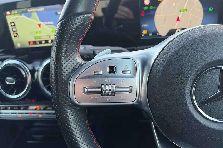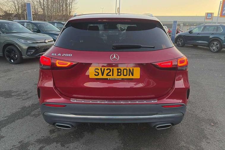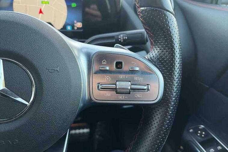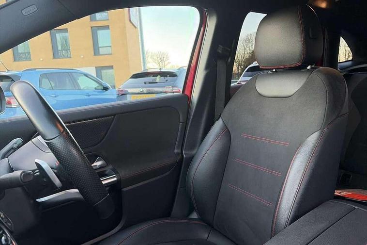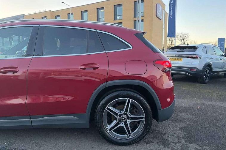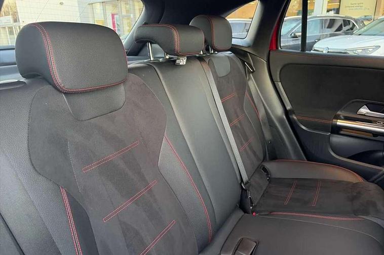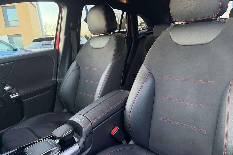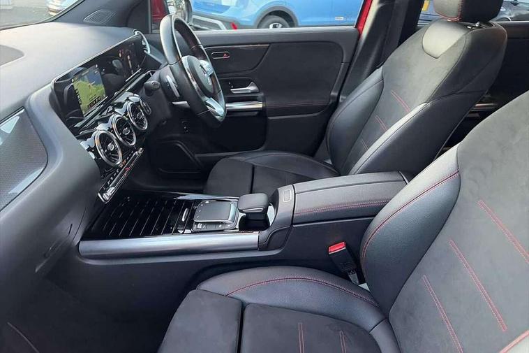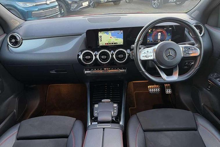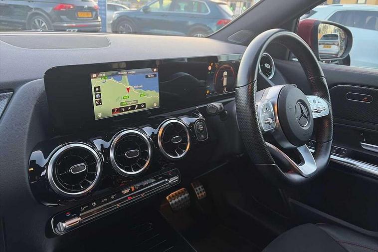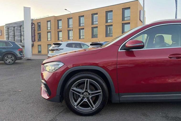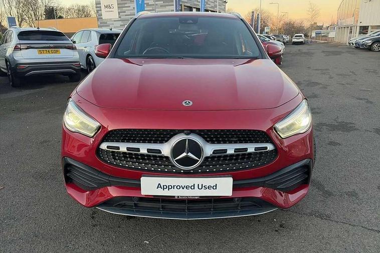 180 degree reversing camera with parking guidelines, 7 inch digital instrument cluster display, 7" touchscreen media display, Active lane keeping assist, Attention assist, Cruise control + speed limiter, Direct steering, DYNAMIC SELECT with a choice of driving modes (ECO, Comfort, Sport and Individual), Easy-pack tailgate, ECO start/stop function, Fluid level warning indicator for fuel, oil, coolant and washer fluid, Hard-disk navigation, Hey Mercedes Voice activation, Lamp failure indicator, Mercedes me connect including emergency call system, accident recovery, breakdown and maintenance management, Mercedes me remote services, Multi function trip computer, Outside temperature gauge, Owners manual and service booklet in English, Pre-installation of private car share, Radio aerial integrated into front and rear windshields, Service indicator (ASSYST), Speed limit assist, Status display for rear seat belts in instrument cluster, Lowered comfort suspension, Rear axle multi-link, 2 USB ports (type C) in rear stowage compartment and one in front of center console, Bluetooth connectivity including audio streaming, DAB Digital radio, MBUX multimedia system, Media interface, Mercedes-Benz sound system - 100W, Adaptive brake lights, Aerial for GPS, Aluminium roof rails, AMG front and rear apron, AMG specific/dual flow exhaust pipes in chrome (non-functional), Automatic headlamp activation, Beltline strips and weather strip in chrome, Black grained claddings with chrome parts, Body colour bumpers, Body colour door handles, Body colour door mirrors, Car wash function, Dark privacy glass from B-pillar backwards, Electric front windows, Electric rear windows, Electrically adjustable and heated door mirrors with integrated LED indicators, Front door sills with Mercedes-Benz lettering, Heated glass rear windscreen + timer control, Heated windscreen wash system, Interior mirror with black reading lamps and frameless, LED high performance headlamps with integrated LED daytime running lights, LED tail lights in two piece design, LED third brake light, Matt titanium grey front and rear apron trim, Rain sensor windscreen wipers, Rear fog lights, Roof spoiler, Single lamella raditor grille with chrome dotted diamond grille and inlay, 12V power socket in centre console, 3 spoke multifunction sports steering wheel in nappa leather with flattened bottom and perforated grip area, 40:20:40 split folding rear seat backrests, Adjustable head restraints, Air conditioning - Two zone thermotronic luxury automatic climate control with display, Ambient lighting in front headrests, AMG floor mats with AMG lettering and stiched edging, Artico man-made leather/Microfibre Dinamica upholstery with red contrast stitching, Auto Mercedes-Benz child seat recognition sensor, Black roof lining, Brushed door pulls in silver chrome, Courtesy light in boot, Front centre armrest with stowage, Galvanished gear shift paddles on steering wheel, Heated front seats, Illuminated glovebox, Leather trimmed gearknob, Luggage net on driver/front passenger seat backrest, Manually height and reach adjustable steering column, Multi-gesture touchpad control on center console, Sports pedals in brushed stainless steel with black rubber studs, Sports seats, Stowage compartment in centre console, Stowage compartment with retractable cover, Sunvisors with illuminated vanity mirrors, Twin front cup holders, Two outer rear seat isofix and top tether child seat fixing points, AMG body styling pack - GLA, Comfort seat pack - GLA Class, Interior lighting with light and sight pack - GLA, Load compartment pack - GLA, 3 rear 3 point seatbelts, ABS with Brake Assist, Active bonnet pedestrain safety measure which detects an impact and raises bonnet by 65mm, Active brake assist includes forward collision warning system with autonomous braking, Adaptive brake assist with hold function and hill start assist, Bonnet with power domes, Brake pad wear warning indicator, Childproof locks manually operated for rear doors and electrically operated for rear power windows, Crash responsive emergency lighting, Driver and passenger head and side airbags, Drivers knee airbag, Dual stage driver/passenger airbags, Electronic parking brake, ESP curve dynamic assist, ESP with ASR, Front and rear seatbelt reminder, Front brake callipers with Mercedes Benz logo lettering on front, Front brake discs internally ventilated and perforated, Front passenger seat occupancy sensor, Tyre pressure monitoring system, Warning triangle and first aid kit, Window airbags, Alarm system with immobiliser and interior protection -Thatcham category 1, Keyless Go starting function, Remote central locking and crash sensor with emergency opening function, Urban guard vehicle protection, Vehicle key with decorative surround in chrome, Carbon structure trim, Chrome air vent surrounds, 19" AMG 5 twin spoke light alloy wheels aerodynamically optimised painted in tantalite grey with a high sheen finish, Summer tyres, Tirefit tyre sealant kit,