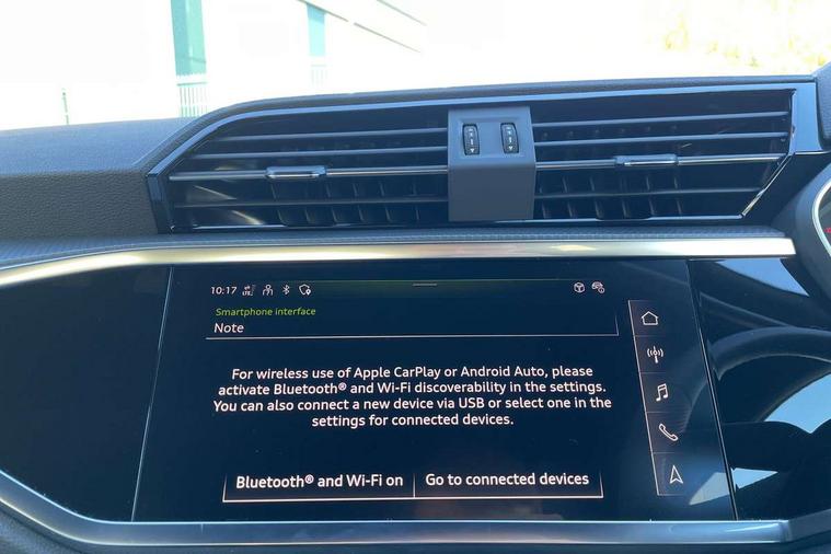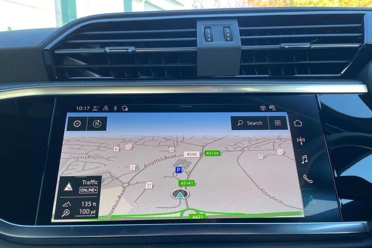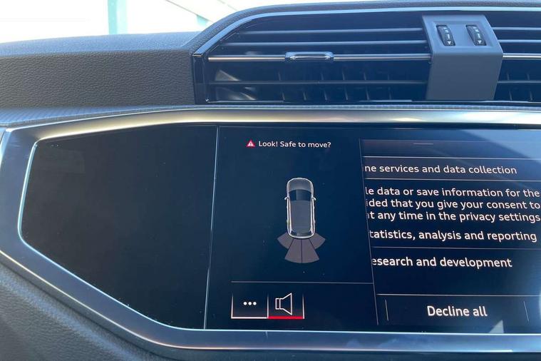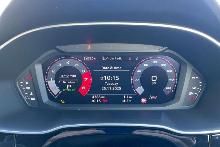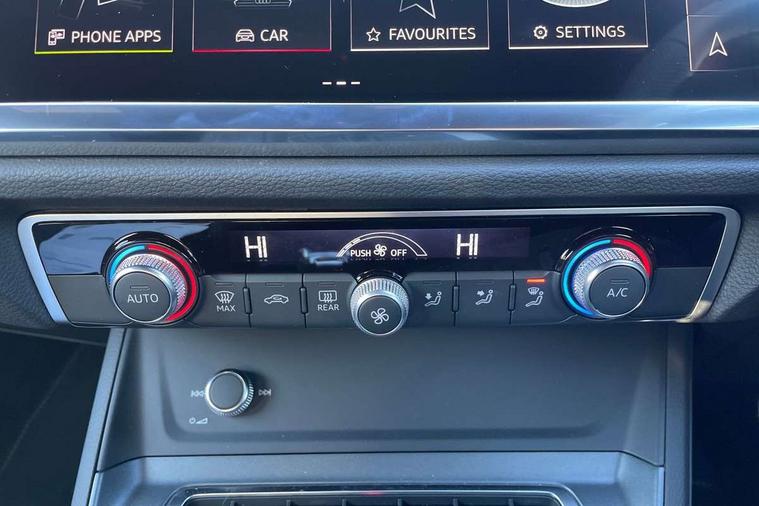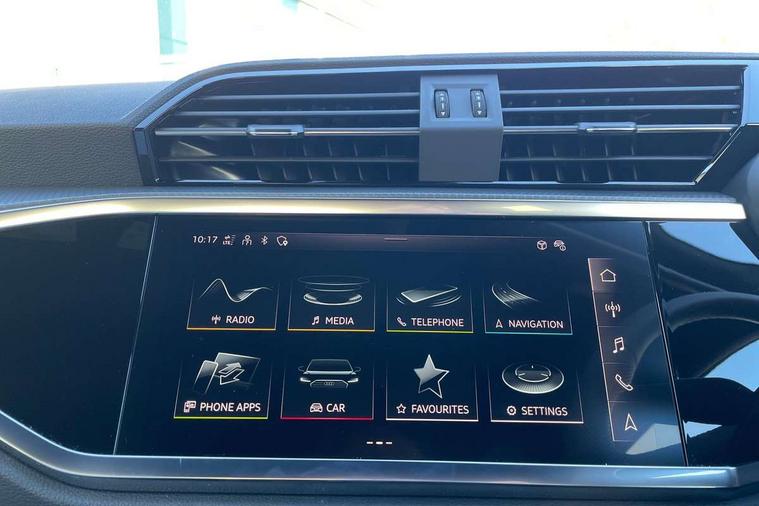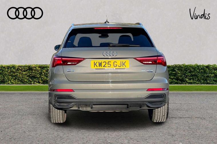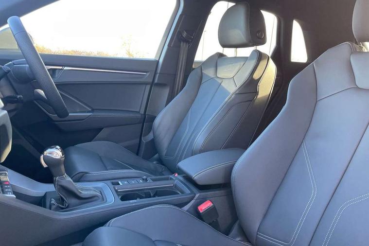 Amazon alexa Integration, Audi connect safety and service, Audi drive select, Audi lane departure warning, Audi Virtual Cockpit - 10.25" display, Bluetooth interface, Camera based traffic sign recognition, Distraction and Fatigue warning, Legal emergency call, MMI Navigation Plus with high resolution 10.1 inch touchscreen colour display, Power operated tailgate, Progressive steering, Service interval indicator, Smartphone interface includes wireless Apple carplay/Android Auto, Start stop system with recuperation, Voice control system with natural language interaction, Sports suspension, 2 USB-C ports with charge and data functions, 6 passive loudspeakers, DAB digital radio module, Acoustic windscreen, Aluminium roof rails, Aluminium window trim, Anthracite black radiator grille, Auto dimming door mirrors, Auto dimming frameless rear view mirror, Body colour front spoiler blade, Electrically folding, adjustable and heated door mirrors with integrated LED side indicators and kerb view function for passenger side, Front and rear electric windows, Front fog lights, Front side air inlets in matt platinum grey, Grille vertical bars in aluminium silver/Matt, High gloss black finish B and C pillars, LED Dynamic rear indicators, LED headlights with LED daytime running lights, LED rear lights, LED third brake light, Privacy glass dark tinted rear and rear-side windows (from B-pillar backwards), Rain and light sensors, Rear diffuser grille in grained matt black, Rear diffuser strip in matt anthracite black, Rear side wing doors, Rear wiper, S line badges on front wings, S line front and rear bumpers and side skirts in contrasting Manhattan grey paint finish, Side skirt insert in matt Platinium grey, Variable front intermittent wipers, 12V socket in rear centre console, 3 seat bench in 2nd row, 3 spoke leather multifunction steering wheel features S badging and grips in perforated leather with contrast stitching, 40:20:40 folding with manual adjustment for 60:40 forwards/backwards position and backrest angle, Adjustable rear seat bench/backrest with centre armrest and cupholder, Black cloth headlining, Dual zone electronic climate control, Electric lumbar support, Front and rear black floor mats with contrast stitching in rock grey, Front and rear headrests, Front centre armrest, Height and reach adjustable steering wheel, Illuminated door sill trims with S logo, ISOFIX child seat mounting for front passenger with airbag deactivation and outer rear seat including top tether attachment point for outer rear seats, Manual front seats with height adjustment, Perforated leather gearknob, Single front passenger seat, Stainless steel luggage compartment sill finisher, Stainless steel pedals, Twin leather upholstery with front sport seats + S embossing, Non smoking pack - Q3, 3x3 point rear seatbelts, 6 airbags - Driver, front passenger, curtain and side windows, Audi pre-sense front with pedestrain and cyclist recognition, Electrically operated child locks on rear doors, Electromechanical parking brake, Electronic stabilisation control including ABS, ASR and EDL, Front seatbelt reminder, Hill descent control, Hill hold assist, Pre sense basic, Seatbelt monitoring, Tyre pressure warning, Warning triangle and first aid kit, Anti theft wheel bolts, Immobiliser, Remote central locking, Thatcham approved category 1 anti theft alarm, Aluminium look interior elements, Dark matt brushed aluminium inlay, Detail dashboard around MMI touch colour display in glass look, black with surround in aluminium look, Leatherette door armrest,