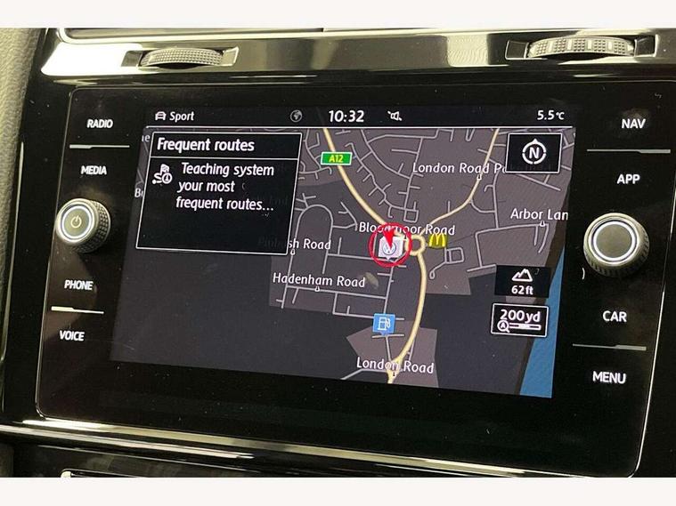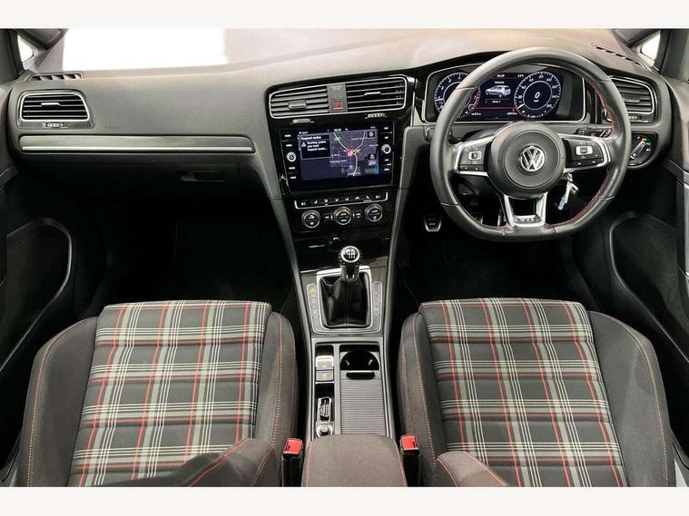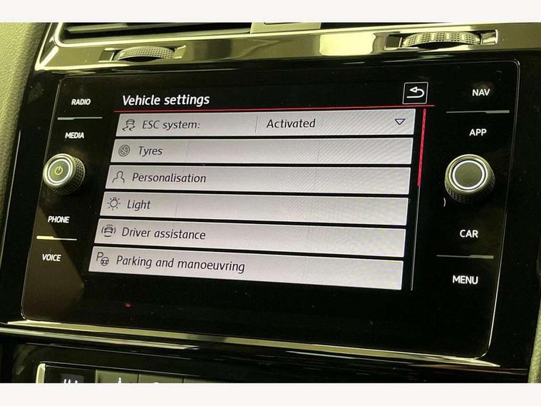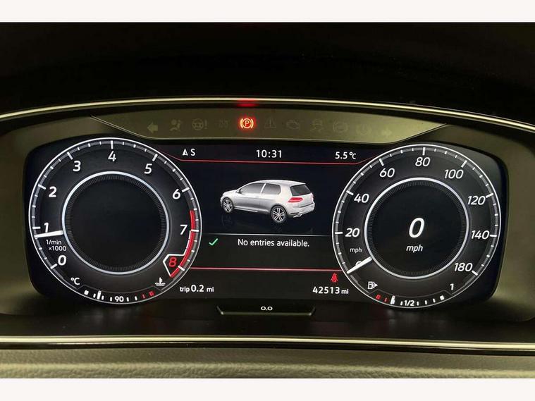 'Lights On' Reminder warning buzzer, 8" touch screen, Active information display, Adaptive Cruise Control with pedestrian detection and speed limiter, App-Connect, Bluetooth hands free telephone connection, Brake pad wear indicator warning light, Driver alert system, Driver profile selection, Exterior temperature gauge, Front assistant collision mitigation, Instrument cluster in white, Multifunction computer, Progressive power assisted steering, Rev counter, Trip and service interval display, Ultrasonic front and rear optical and audible parking sensors, Warning buzzer and light for front seatbelts unfastened, Limited slip differential, Lowered sports suspension, CD/MP3/WMA, USB and SD card reader, aux-in, Composition media system, DAB Digital radio, 3D-LED-SBBR with sweeping indicator, Auto dimming rear view mirror, Automatic coming/leaving home lighting function, Automatic headlights, Black rear diffuser, Body colour door handles, Body colour door mirrors, Body colour rear roof spoiler, Body colour sports bumpers, Darkened rear light clusters, Electric front windows, Electrically adjustable and heated door mirrors, Heated rear windscreen, Honeycomb radiator grille - black, LED daytime running lights, LED front fog lights, LED headlights with dynamic curve lighting, LED rear lights, Rain sensor, Rear windscreen washer and wiper with interval delay, Twin exhaust tailpipe, 12V socket in luggage compartment, 3 rear headrests, 3 spoke steering wheel, 60/40 split folding rear seat, Air conditioning - 2 zone electronic climate control, Bag hook in luggage compartment, Black headlining, Boot lashing points, Cooled glovebox, Courtesy light delay, Cover for storage compartment in centre, Dust/pollen filter, Easy entry slide seats (access to rear seats), Front + rear carpet mats, Front centre armrest with storage box and rear air vents, Front passenger seat height adjust, Front reading lights, Front seat back storage pockets, Grab handles, Height adjustable driver's seat, Height/reach adjust steering wheel, Illuminated door sills, Illuminated vanity mirrors, Isofix preparation for 2 rear child seats, Leather gear knob and handbrake grip, Load through provision with rear centre armrest and cupholders x2, Luggage compartment cover, Luggage compartment lighting, Multi-function leather steering wheel with red stitching, Overhead storage box, Stainless steel pedals, Storage box in luggage compartment, Storage compartments in doors, Sun visors, Variable boot floor, height adjustable and removable, Ambient lighting pack - Golf, Mirror pack - Golf, 3 point height adj front seatbelts + pretensioners, 3 rear 3 point seatbelts, ABS, Automatic post collision braking, Child locks on rear doors, Driver/Front Passenger airbags, Driver/Passenger whiplash optimised head restraints, Drivers knee airbag, Electronic parking brake with auto hold, ESP with EDL + ASR, Front and rear curtain airbags, Front passenger airbag deactivation, Front side airbags, Pre crash system, Red brake calipers, Tyre pressure monitor, Uprated front disc brakes + calipers, Alarm with interior protection, Electronic engine immobiliser, Remote central locking with 2 remote folding keys, Chrome-plated light switch surround, Honeycomb black decorative inserts, Piano black centre console, Space saver spare wheel,