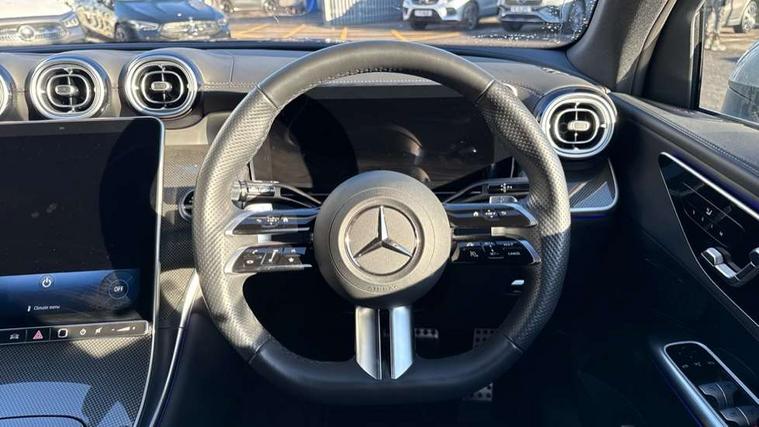 11.9" high resolution multimedia colour display, 12.3" Digital individually configurable instrument display, Acoustic presence indicator, Active lane keeping assist, Attention assist, Blind spot assist, Bluetooth interface for hands free telephone, Collision prevention assist plus, Cruise control with speedtronic variable speed limiter, Dashcam - front camera for video recording, Direct steer speed sensitive steering, DYNAMIC SELECT with a choice of driving modes (ECO, Comfort, Sport, Sport+ and Individual), eCall emergency call system, ECO start/stop function, Fingerprint scanner, Fluorescent jacket for driver, Hard disc navigation, Instrument display in miles with English lettering, MBUX augmented reality for navigation, MBUX navigation premium, MBUX voice control activated by keywords "Hey Mercedes", Mercedes me connect, Outside temperature display, Remote boot release, Remote services, Road sign recognition system, Service indicator (ASSYST), Smartphone integration, Status display for rear seat belts in instrument cluster, Traffic sign assist, Trip computer, Wireless charging, 48V Mild hybrid technology, 4MATIC permanent four wheel drive, 62 litre fuel tank, 9G TRONIC plus automatic transmission, Diesel particulate filter, Sport suspension, DAB digital radio tuner, MBUX extended functions, Mercedes benz sound system, Pre installation for Mercedes Benz Link, Adaptive brake lights, Adaptive high beam assist plus, Aluminium look running boards with rubber studs, Aluminium roof rails, AMG bodystyling front apron, rear apron and side skirts, AMG Line exterior, Auto headlights, Body colour bumpers, Body colour door mirrors, Digital light LED headlights, Electrically adjustable door mirrors, Front and rear electric windows, Headlight washers, Heat insulating dark tinted glass, Heated rear window, High level LED brake light, Integrated LED daytime running lights, LED indicator lights, LED rear fog lights, LED tail lamp, Motor way mode function and locator lighting, Noise acoustic glass, Radiator grille with Mercedes Benz pattern and integreated Mercedes star and louvre in dark grey matt with chrome inlay and black frame, Rain sensor windscreen wipers, Range adjustable headlights, Rear side wing doors, Rear wiper, Transparent Bonnet, Two chrome plated tailpipe trim elements, Variable front intermittent wipers, Welcome and follow-me home light functionality, Wider wheel arch for AMG wheels, 3 seat bench in 2nd row, 40:20:40 split folding rear seats, Ambient lighting premium, AMG line interior, Artico man-made leather upholstery, Audio and onboard settings control on multifunction steering wheel, Automatic child seat recognition sensor, Black fabric roof lining, Black floor mats with AMG lettering, Double cup holder in centre console, Easy-pack removable load compartment cover, Electrically height/reach adjustable steering column, Front centre armrest with stowage compartment, Front head restraints, Galvanised steering wheel gearshift paddles, Heated front seats, Illuminated door sill panels with Mercedes Benz lettering, Illuminated glove compartment, Instrument panel and beltlines in ARTICO manmade leather in nappa look, Multifunction sports steering wheel in nappa leather, Rear centre headrest, Rear head restraints, Rear top tether child seat ISOFIX attachment, Single front passenger seat, Sports pedals with stainless steel surfaces and rubber studs, Sports seats, Sun visors, THERMATIC 2 zone automatic climate control, Anti theft protection package - GLC, Boot comfort package - GLC, Exterior chrome package - GLC, Interior chrome package - GLC, Interior lighting pack - GLC, Keyless-Go comfort package - GLC, Memory pack - GLC, Mirror pack - GLC, Parking package with 360 degree camera - GLC, Seat comfort package - GLC, Stowage space package - GLC, USB Plus Pack - GLC, 3 rear 3 point seatbelts, Active braking assist, Anti-lock braking system (ABS), ASR traction control, Automatic front passenger airbag deactivation, Black seat belts, Brake calipers with Mercedes-Benz lettering + perforated brake discs, Braking system with larger brake discs on the front axle, Child proof door locks, Dual-stage airbags - driver and front passenger, driver knee bag and window bags for driver, front passenger and rear passengers, Electronic parking brake, Electronic stability programme (ESP) with curve dynamic assist and cross wind assist, Front and rear seatbelt reminder, Front passenger seat occupancy sensor, Front seatbelt pretensioners, Hill start assist, Tyre pressure monitoring system, Warning triangle and first aid kit, Automatic door locking, Guard 360 degree vehicle protection plus, Interior protection/immobiliser, Remote central locking, Centre console in metal structure finish, Metal structure trim, 20" AMG 5 spoke aerodynamically optimised light alloy wheels in painted black with high sheen finish, Summer tyres, TIREFIT with tyre inflation compressor,