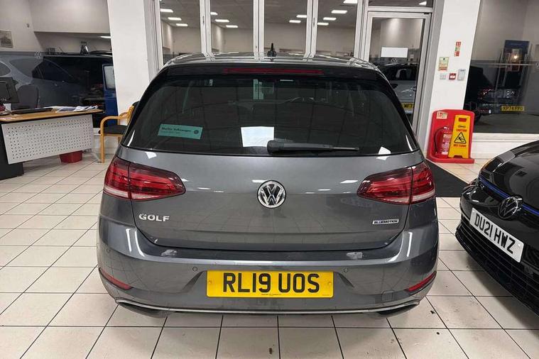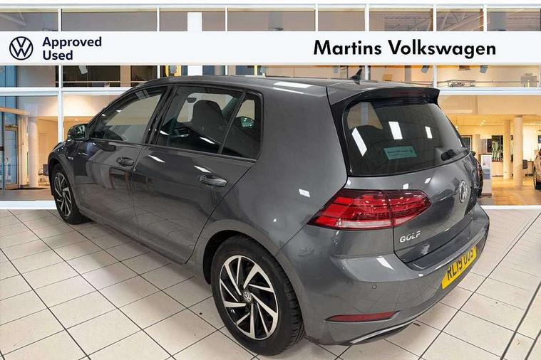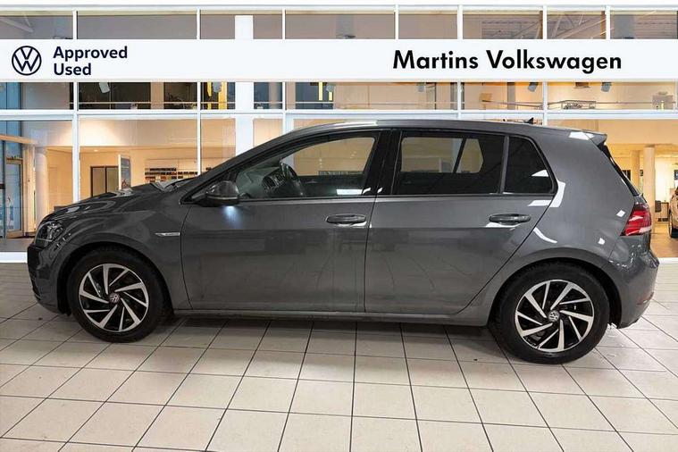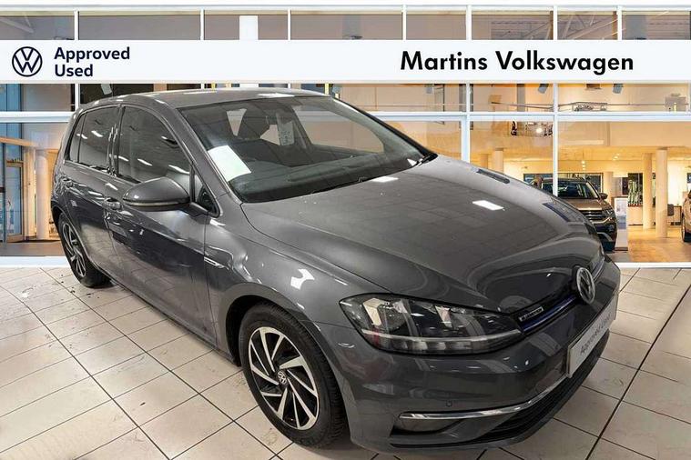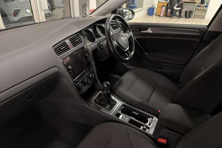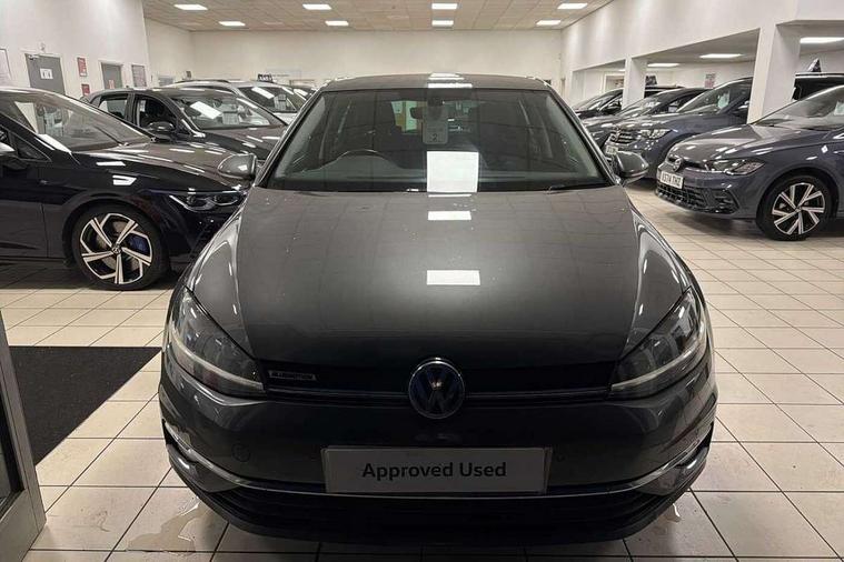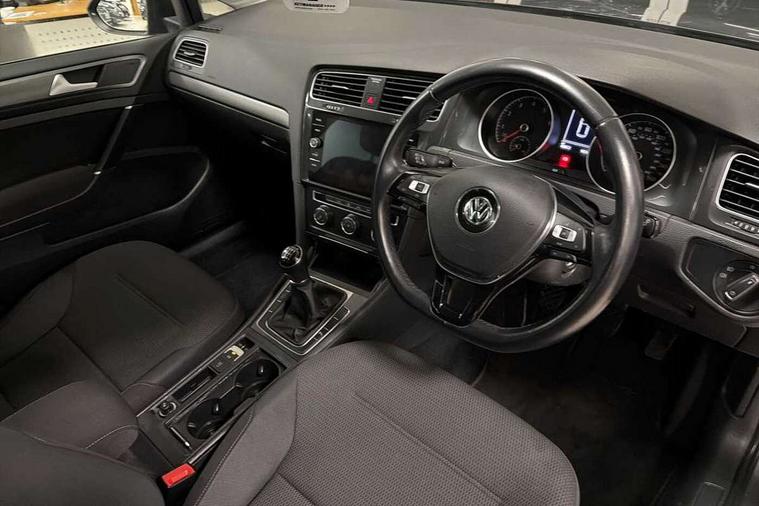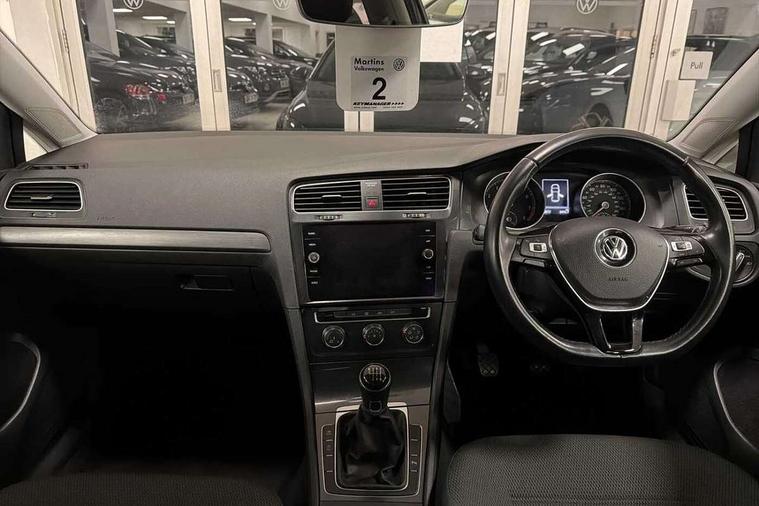 'Lights On' Reminder warning buzzer, ACC - Adaptive cruise control with front assist, forward collision warning, distance monitoring, city emergency brake and speed limiter, Bluetooth telephone and audio connection for compatible devices, Brake pad wear indicator warning light, Driver alert system, Driving Mode Selection with four preset modes - Eco, normal, sport or individual modes, Instrument cluster in white, Multifunction computer with visual gear change recommendation for fuel consumption, Power assisted speed sensitive electro-mechanical steering, Push tank flap, Speed limit display, Speedo, rev counter, electronic odometer, trip, service interval display, exterior temperature and fuel gauge, Stop/start system, Think blue trainer driver tips and journey analysis, Warning buzzer and light for front seatbelts unfastened, We Connect Go Dongle, Battery regeneration during braking, Standard suspension, XDS electronic differential lock, Composition media system, DAB Digital radio receiver, Driver Personalisation profile selection, MP3/WMA compatability, Multi device interface (MDI) with USB connection, Personalisation 1.1 profile for media, Premium USB cable in choice of either Apple or Android smartphone compatibility, SMS Functionality, Title and cover art display, 4 X 20W output, USB connection and socket, USB and SD card connectivity, Aerodynamic black radiator grille with chrome trimmed insert, Auto dimming rear view mirror, Black rear diffuser, Body colour bumpers, Body colour door handles, Body colour door mirrors with integrated indicators, Dusk sensor + automatic driving lights, Electric front windows, Electric rear windows, Electrically adjustable and heated door mirrors, Fully galvanised body, Heated rear windscreen, Hidden exhaust pipe, High level 3rd brake light incorporating LED Technology, LED front fog lights with static cornering light function, Range adjustable headlights via infotainment system with LED daytime running lights, Rear fog lamp, Rear number plate lights incorporating LED technology, Rear tinted glass 65% light absorbing from B pillar backwards, Rear window aerial, Rear window wash/wipe with intermittent wipe, Reflectors in all doors, Remote electrically foldable door mirrors, door mirror puddle lights and reverse activated kerb-view adjustment on passengers door mirror, Tailgate with integrated rear roof spoiler, Windscreen wipers/ intermittent wipe + 4 position delay, 12V socket in luggage compartment, 3 rear headrests, 4 load lashing points in luggage compartment, 60/40 split folding rear seat backrest, Auto fold down lever in rear seat backrest, Bag hook in luggage compartment x 2, Cooled glovebox, Cover for storage compartment in centre, Cupholder cover, Dust/pollen filter, Front and rear reading lights X 2, Front centre armrest with storage compartment and two rear air vents, Front seat back storage pockets, Grab handles front x 2, rear x 2 with integrated coat hooks, Height and reach adjustable steering wheel, Illuminated vanity mirrors, Instrument lighting white adjustable panel illumination, Interior light delay, Isofix preparation for 2 rear child seats, Load through provision with rear centre armrest and cupholders x2, Luggage compartment lighting, Overhead storage box, Passenger underseat drawer, Pearl grey headlining, Storage box in luggage compartment, Storage compartment in roof console with cover, Storage compartments in centre console, Storage compartments in front doors, Storage compartments in rear doors, Stowable luggage compartment cover, Sun visors, Variable boot floor, height adjustable and removable, Convenience Pack - Golf, Light and Sight pack - Golf, Mirror pack - Golf, 3 rear three point seatbelts, Airbags - Driver's and front passenger's, curtain airbag, Driver's knee, front side impact and passenger's airbag deactivation switch, Anti-lock Braking System (ABS) with Hydraulic Brake Assist (HBA), Automatic post collision braking system, Child locks on rear doors, Driver/Passenger optimised head restraints, Electronic parking brake with auto hold, Electronic stability control (ESC) including Electronic differential lock (EDL) and ASR (Traction control) with deactivation via infotainment system, Front ventilated disc brakes and rear disc brakes, Pre crash preventive occupant protection, Three point height adjustable front seatbelts with tensioners, Tyre pressure loss indicator, Alarm with interior protection and deactivation via infotainment system, Electronic engine immobiliser, Brushed dark silver decorative inserts in dash and door panels, Chrome plated air vent surround, Chrome-plated light switch surround, Polar night black decorative inserts in centre console, Steel space saver spare wheel,