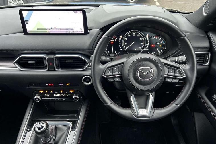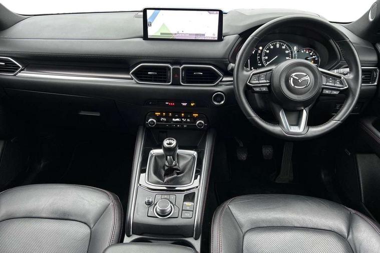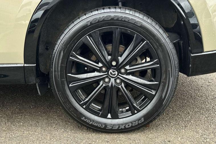 10.25" display with Mazda Connect infotainment, 7" colour TFT display, Advanced blind spot monitoring, Bluetooth connectivity with voice control, Collision prevention assist, Connected services, Cruising Traffic Support, Electric power steering, Emergency stop signalling system, Engine start/stop button, Forward collision warning, Front and rear parking sensors, Integrated navigation system, Intelligent speed assist, Lane departure warning system, Lane keep assist, Power liftgate, Qi wireless phone charging, Radar cruise control, Rear cross traffic alert, Reversing camera, Service indicator, Traffic sign recognition (TSR), Trip computer, Windscreen projected colour active driving display (HUD) with memory, Wireless apple car play/android Auto, Cylinder Deactivation, i-stop, AM/FM radio, Bluetooth audio streaming, Bose premium sound system with 10 speakers, DAB Digital radio, Multimedia Commander including separate volume dial, Steering wheel mounted audio controls, Adaptive front lighting system, Auto dimming rear view mirror, Automatic headlights, Black honeycomb door trim decoration panel, Black honeycomb interior decoration panel, Body colour roof spoiler, Coming/leaving home lighting function, Door mirror integrated indicators, Dual large chrome tailpipes, Dusk sensitive headlamps, Electric front/rear windows with one touch auto up/down, Front grille in gloss black finish, Front grille in gloss black with red accent + gloss black signature wing, Gloss black B and C pillars garnish, Gloss black door mirrors, Gloss black front and rear lower bumper mouldings, Gloss black tire arch and side mouldings, High beam assist, Intermittent rear wash/wipe, LED auto levelling, LED daytime running lights, LED front fog lights, LED Headlights, LED third brake light, Power folding and heated door mirrors, Power tilt/slide sunroof, Privacy glass (rear side windows only), Rain sensing front wipers, Rear side wing doors, Red front grille accent, Red stitching and accents on door trim, knee pad, console lid, steering wheel, shift boots, Scuff plates, Shark fin antenna, Signature LED rear combination lights, Variable intermittent front wash/wipe, Windscreen wiper de-icer, 12v electrical power outlet, 3 seat bench in 2nd row, 3 stage heated front seats, 40:20:40 Karakuri fold-flat seat system, 6 way electric adjustable passenger seat, 8 way electric driver seat with lumbar support + memory, Black roof lining, Cargo room flat floor board with waterproof undertray, Driver seat power slide, recline and height adjustment, Driver, Front passenger and two rear grab handles with coat hooks, Driver/passenger front seatback pockets, Driver/passenger sunvisors + illuminated vanity mirrors (drivers with ticket holder), Dual zone climate control, Folding centre armrest with 2 cup holders, Front and rear door pockets, Front centre storage with two cupholders, Front passenger seat power slide, recline and height adjustment, Gear shift indicator, Heated steering wheel, Humidity sensor, Illuminated glovebox, Interior dome light with integral spotlight, ISOFIX child seat anchorage points attached on outer rear seats, Karakuri tonneau cover, Leather upholstery, Leather wrapped steering wheel and gear knob, Luggage compartment LED lighting, Luggage compartment power outlet, Rear air vents, Rear headrests, Rear seat recline, Roof mounted sunglasses holder, Single front passenger seat, Three height adjustable head restraints, Tilt/height adjustable steering wheel, USB Connectivity (2x front Type-C, 2x rear Type-B), White interior LED illumination lighting, 3 point front seatbelts with pre-tensioners, 3 rear 3 point seatbelts, ABS, Advanced Smart City Brake Support - SCBS, Child locks on rear doors, Driver and front passenger side airbags, DSTC-Dynamic Stability and Traction Control, Dual front airbags, Electronic brake force distribution, Electronic parking brake with auto hold, ESP, Front and rear curtain airbags, Front passenger airbag deactivation, G-Vectoring control, Hill hold assist, Seatbelt reminder front and rear, Single stage passenger airbags, Smart brake support with forward obstruction warning, Tyre pressure monitoring system, Automatic door locking when moving off, Deadlock, Immobiliser, Power door locks, Remote central locking, Smart keyless entry, Thatcham Cat.1 alarm, 19" Black alloy wheels, Tyre repair kit,