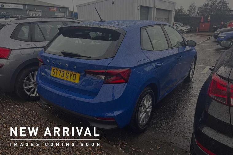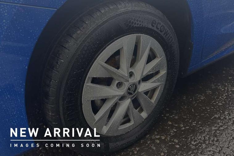 Bluetooth connection, Driver alert system - DAS, Electromechanical power steering, Exterior temperature gauge, Lane assist including road edge detection, Multifunction trip computer in black and white, Service interval indicator, Speed limiter, 2x USB-C in the front (for data transmission and charging), 4 speakers in front, Auxiliary socket for external MP3 player, DAB digital radio reception, Radio Swing with 6.5" colour display, Basic LED Headlights, Body colour door mirrors, Body coloured bumpers, Dimming rear view mirror with black frame, Door mirror integrated indicators, Electrically adjustable and heated door mirrors, Electrically adjustable front windows with function auto up/down, Front fog lights, Front window wiper intermittent control, Headlight range control - Automatic, Ice scraper in fuel cap, LED daytime running lights with coming and leaving home feature, Mechanical adjustable rear windows, Rain sensor, Rear LED fog light, Rear side wing doors, Rear window wiper with washing nozzles, Roof mounted spoiler, SKODA tailgate lettering in chrome, Third brake light, 2 reading lights in front and 2 reading lights in rear, 2 spoke leather multifunction steering wheel, 3 rear headrests, Backrest split and folding, Central console with fixed cup holder and storage box, Chrome handbrake release button, Fabric upholstery, Gearshift knob/handle in leather, Grain satin black interior door handles, Hand brake lever handle in leather, Height adjustable front headrests, Height adjustable front seats, Height adjustable steering wheel, ISOFIX and TopTether anchorage points to the outer rear seats, ISOFIX and TopTether on the front passenger seat, Luggage compartment lighting, Manual air conditioning, Manually adjustable lumbar support in front seats, Pollen filter, Rear seat bench unsplit, Single front passenger seat, Storm grey headlining, Sun visors with mirror and airbag label on passenger side, Ticket holder, 3-point height adjustable front seats belts with pretensioner and force limiter, Automatic warning lights in case of crash, Driver and passengers airbag with switch off function, e-Call+, ESC including ABS, MSR, ASR, EDS, HBA and XDS, Front and rear seat belt warning, FRONT ASSIST (AEB City and AEB Inter Urban), Front side airbags, Head airbags, One tone horn, Pedestrian protection, Three rear 3-points safety seat belts with pretensioner and force limiter including stop function for outer rear seat belts, Tyre pressure monitoring system, Anti-theft alarm system including immobiliser, interior monitoring, backup horn, and towing protection, Central locking with radio remote control, interior controls, SAFE function and 2 foldable keys, Black painted air vents, Glossy black decorative trim, Grain satin black central console cover, Grain satin black lower decorative trim, Satin black door and side trim panel in front, Anti-theft wheel bolts protection, Super-low rolling resistance tyres,