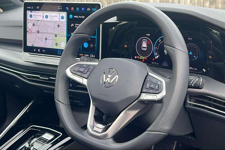 Activated carbon canister, Adaptive cruise control (ACC), Advanced driver attention and drowsiness monitor, Dynamic road sign display, Dynamic steering, E-Sim card for online connectivity, eCall emergency call system, Multi-color Digital cockpit pro, selection of different info profile possible, Multifunction front facing camera for distance control, Navigation system, Oncoming vehicle braking when turning including swerve support, Preparation for light assist system, Speed limiter, Speedo, rev counter, electronic odometer, trip, service interval display, exterior temperature and fuel gauge, Traffic jam assist, Voice enhancer and voice control, Warning signal and warning light for front and rear seatbelts not fastened, We connect plus preparation, We connect preparation, Wireless app connect, Diesel particulate filter, Hybrid propulsion system, Start-stop system with battery regeneration (recuperation - energy recovery during braking), XDS electronic differential lock for improved traction and handling, 2 USB C ports in front, 2 USB charging sockets on the centre console in the rear charging capacity upto 45W, Comfort telephony + wireless charging, without wireless aerial connection, Digital radio reception (DAB), Diversity antenna for FM reception, Gaming platform via car app, Infotainment system with 12.9" display, Mobile phone interface with inductive charging feature, 3rd brake light, Auto headlights, Automatic headlamp activation with Coming home and Leaving home feature, Body colored bumpers in R-Line style, Body colour door handles, Exterior ambient lighting with illuminated door handles, Exterior mirrors convex on the left and aspherical on the right, Front and rear electric windows, Heat insulating windshield made of laminated glass, LED daytime running lights, Rear exhaust tailpipe, Rear fog light on one side and reversing lights on both sides, Rear side wing doors, Rear windscreen washer and wiper with interval delay, Remote electrically foldable door mirrors, puddle lights and reverse activated passenger's door mirror, Welcome light with surround lighting, 12V socket in front centre console, 12V socket in luggage compartment, 3 rear head restraints, 3 seat bench in 2nd row, Ambient lighting with 30 colour including LED light unit in front footwell with selectable light colour, Brushed stainless steel pedals, Carpet mats, front and rear, Chrome plated radiator grille inserts, air vent surrounds and light switch surrounds, Front centre armrest, Integrated front head restraints, ISOFIX anchors for child seats on outer rear bench seats and on front passanger seat compatible for i-Size, Luggage compartment lighting, Plastic gear knob, Premium sports seats in front, Rear cupholder and loadthough, Single front passenger seat, Soul black instrument panel, Split folding backrest with centre armrest and unsplit rear seat bench, Storm grey roof lining, Sun visors with illuminated vanity mirrors, 3 point height adj front seatbelts + pretensioners, 3 rear three point seatbelts, ABS, Autonomous emergency braking front assist with pedestrian and cyclist monitoring, Child locks on rear doors, Driver and front passenger airbag with front passenger airbag deactivation, Electronic parking brake with auto hold, ESC (Electronic Stability Control), Extended pedestrian protection measures, Hill start assist, Rear disc brakes, Two tone horn, Tyre pressure loss indicator, Volkswagen roadside assistance, Anti theft wheel bolts, Preparation for alcohol interlock, Decorative inserts carbon grey for dashboard and front door trim panels,