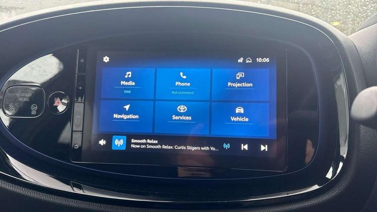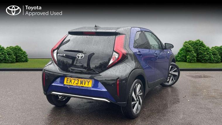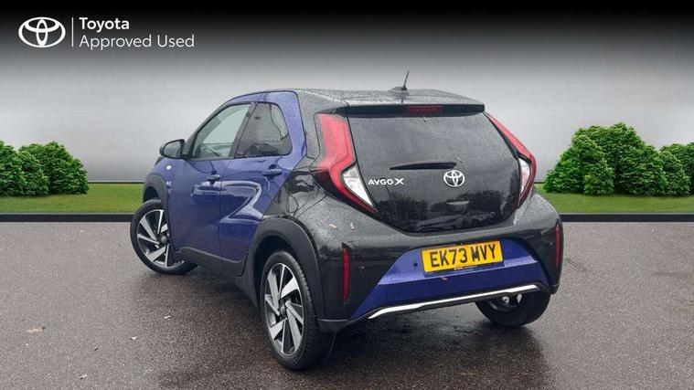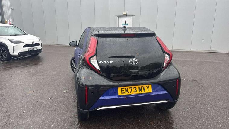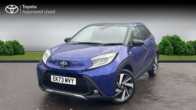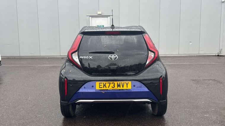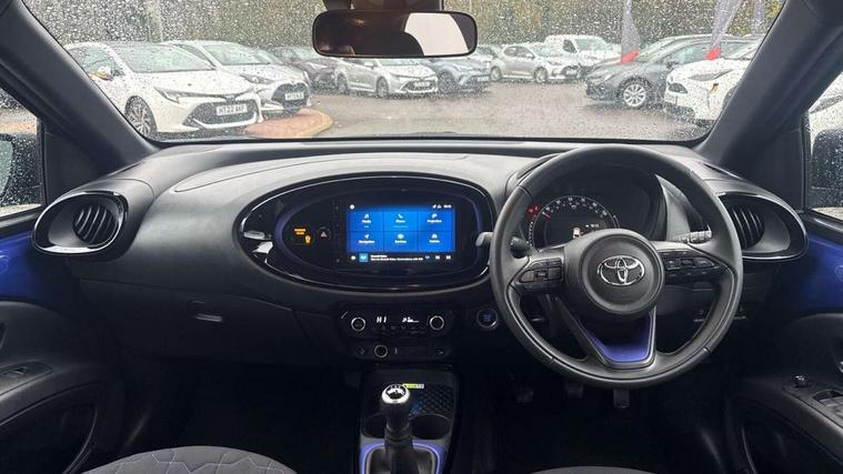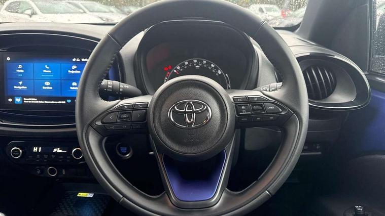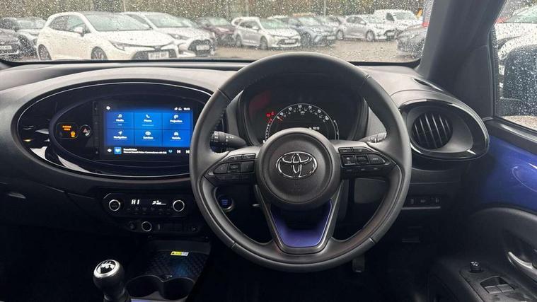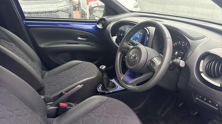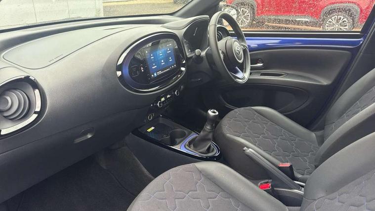 4.2" TFT colour screen, Adjustable speed limiter, Analogue speedometer, Bluetooth connectivity, Digital tachograph, Driver attention alert system, eCall emergency call system, Electric power steering, Front and rear parking sensors with auto brake, Intersection turn assist, Key reminder warning, Noise reduction kit, Pre collision system with emergency steering assist, Remote boot door release on key, Reversing camera with static guide lines, Smart entry and push button start, Speed limit display, Start and stop, Wireless charger, Wireless Smartphone Integration includes Apple CarPlay and Android auto, Vehicle Stability Control (VSC), 4 speakers, 9" HD multimedia display touch screen with Toyota smart connect, DAB digital audio broadcast, USB connector, Auto headlights, Auto wipers, Automatic headlights cut-off, Automatic high beam On/Off switch, Bicycle towing hook, Black fog light surrounds, Black side protection mouldings, Black wheel arch mouldings, Body colour door handles, Body coloured front bumper, Boot door scuff plate, Eclipse black rear bumper, Electric heated door mirrors, Follow me home headlights, Front and rear underruns in silver, Front fog lights, Front power windows, Gloss black door mirrors, Gloss black upper front grille, Headlight cut-off reminder, LED daytime running lights guide, LED front light guide, LED High mounted stop lamp, LED projector headlights, Manual day/night rear view mirror, Manual headlight levelling, Pagoda roof, Power adjustable door mirrors, Power back door, Privacy glass, Rain sensor, Rear combination lights LED bulb type, Rear side wing doors, Rear windscreen defogger, Rear windscreen wiper, Remote hazard lights system, Short antenna, Variable intermittent windscreen wipers, 12v power outlet - front, 2 seat bench in 2nd row, 3 spoke leather steering wheel, 50/50 split folding rear seat, Adhesive roof headlining, Adjustable speed limiter switch on steering wheel, Audio and telephone switches on steering wheel, Auto air conditioning, Black roof lining, Body colour satin anodised insert on steering wheel, Boot light, Centre room light, Chrome interior door handles, Chrome surround on air conditioning buttons, Clean air filter, Console box storage, Floor mats, Front and rear cup holders, Front head rest deco art, Front head restraints, Height adjustable driver seat, Intelligent adaptive cruise control switch on steering wheel, ISOFIX child restraint system on rear seats, Lane departure alert switch on steering wheel, Leather gearshift knob, Light blue ambient lighting in centre console, Manual tilt steering wheel, Manually reclining and sliding driver seat, Manually reclining and sliding front passenger seat, Multimedia switches on steering wheel, Partial synthetic leather upholstery, Pollen filter, Rear door pockets, Rear head restraints, Satin silver insert on gear shift knob, Single compartment glovebox with lights, Single front passenger seat, Soft tonneau cover, Sun visors with mirror on driver and passenger side, Voice recognition switch on steering wheel, Toyota safety sense pack - Aygo X, Anti lock braking system + Electronic brake force distribution, Child safety door lock, Emergency brake light signal (EBS), Hill start assist control (HAC), Passenger airbag on/off switch, Seat belt reminder for front and rear seats, Supplement restraints system (SRS) - 6 airbags, Traction control, Tyre pressure warning system, Immobiliser, Remote power door locks, Black wheel centre caps, Tyre repair kit,