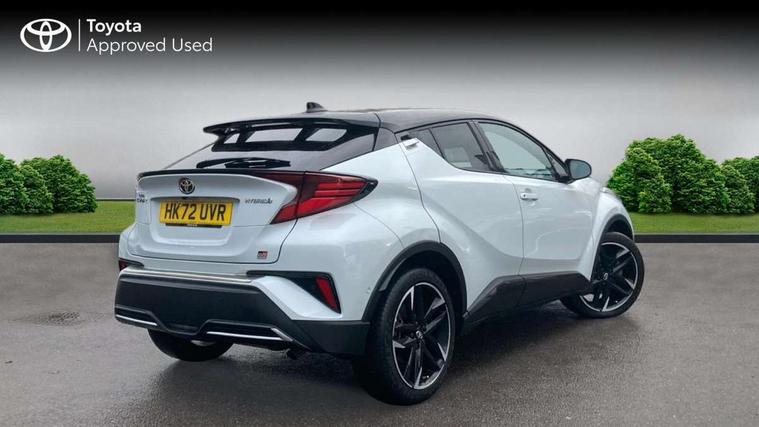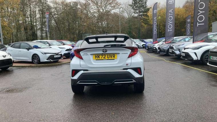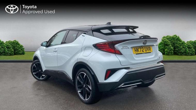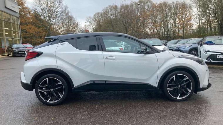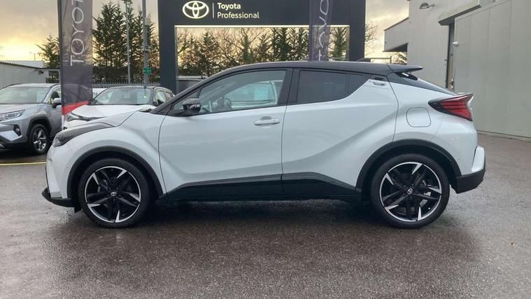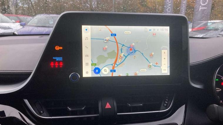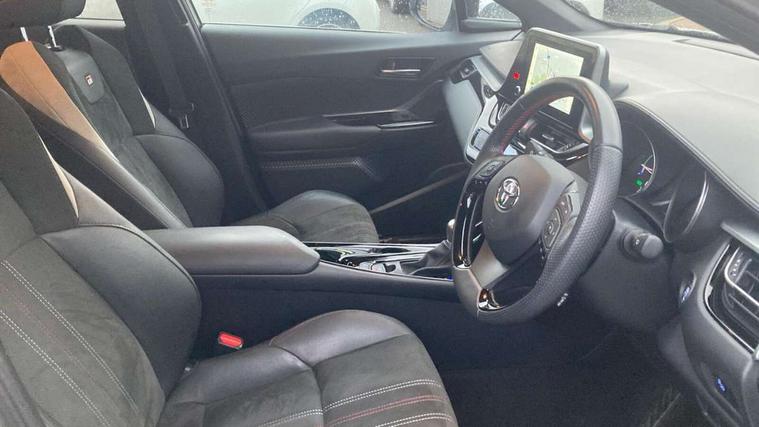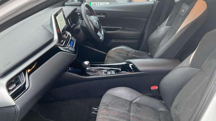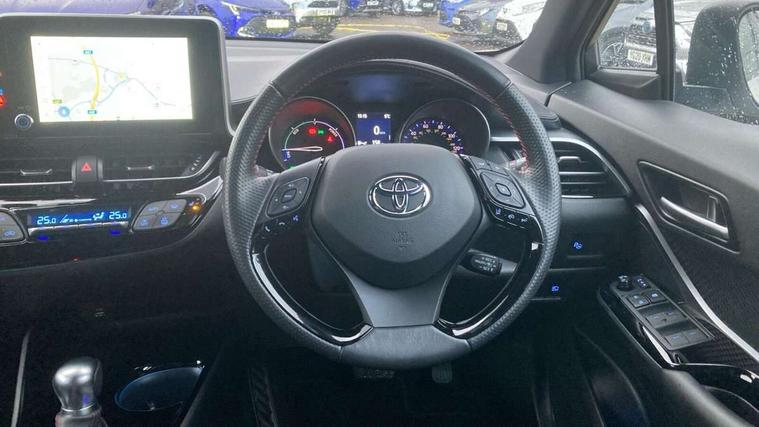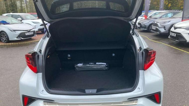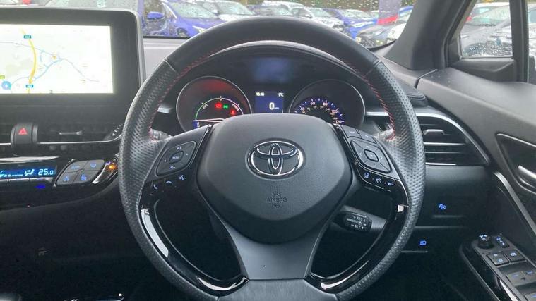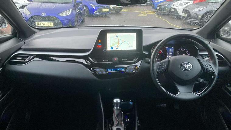 4.2" coloured TFT screen for multi-information display, Adaptive cruise control, Apple car play and Android auto, Bluetooth connectivity, E-call, Electric power steering, Hybrid system indicator, Lane departure alert with steering control, Lane trace assist, Push button tailgate release, Remote boot door release in cabin, Remote boot door release in key, Reversing camera, Road sign assist - RSA, Simple Intelligent parking assist, Smart voice assist, Touch 2 Go navigation system, Trip computer, Voice recognition, Wireless smartphone integration, Vehicle Stability Control (VSC), 6 speakers, AM/FM radio, DAB Radio (Digital Audio Broadcasting), Toyota touch 2 multimedia system with 8" display, USB connector, Wi-fi connectivity, Adaptive front light system, Adaptive LED Headlights, Anti-jam protection on power windows, Auto high beam, Auto up and down function on all power windows, Automatic headlight levelling, Automatic headlights, Automatic headlights cut-off, Black and body coloured rear bumper, Black upper front grille, Body colour door handles, Body colour door mirrors, Body coloured front bumper, Boot door release with push button, Chrome front lower bumper, Electric heated door mirrors, Follow me home headlights, Front and rear power windows, Front spoiler lip in black, Headlight cut off reminder, Honeycomb lower front grille, LED daytime running lights, LED fog lights, LED front light guide, LED High mounted stop light, LED rear brake lights, LED rear combination lights, Noise reduction layer on front windows and windscreen, Power adjustable door mirrors, Privacy glass, Rain sensor, Rear sequential indicators, Rear side wing doors, Rear spoiler, Rear tailgate, Rear window defogger, Rear window wiper, Shark fin antenna, UV-filter on driver and passenger windows, UV-filter on rear windows, Variable front intermittent wipers, 12v power outlet - front, 3 rear headrests, 3 seat bench in 2nd row, 3 spoke perforated leather steering wheel, 60/40 split folding rear seat, Adjustable rear headrests, Adjustable speed limiter switch on steering wheel, Assist grips front and centre pillar, Audio and telephone switches on steering wheel, Black front door assist grips, Blue ambient lighting on front cup holders, Blue ambient lighting on front doors, Boot light, Chrome interior door handles, Cloth upholstery, Driver and front passenger personal light, Driver and front passenger Whiplash Injury Lessening seats, Driver and passenger seatback pockets, Dual zone automatic air conditioning, Floor mats, Front cupholders, Front head restraints, Front sports seats, Glovebox with internal light, Hard tonneau cover, Heated driver and front passenger seats, Hooks for luggage holding net, Humidifying Nanoe air purifier, Illuminated entry system, Isofix attachments on outer rear seats, Leather gearshift, Light on driver sun visor, Light on passenger sun visor, Manual telescopic steering wheel, Manual tilt steering wheel, Manually height adjustable driver seat, Manually height adjustable front passenger seat, Manually reclining driver seat, Manually reclining front passenger seat, Manually sliding driver seat, Manually sliding front passenger seat, Microphone on front personal light, Mirror on driver sun visor, Mirror on passenger sun visor, Multimedia switches on steering wheel, Pollen filter, Power adjustable lumbar support on driver seat, Shopping bag hooks, Single front passenger seat, Slow opening on lower glovebox, Voice recognition switch on steering wheel, Tech with parking sensor pack - C-HR, 16 Disk front wheel brake, 3x3 point rear seatbelts, ABS+EBD+Brake assist, Electronic parking brake, Front and rear seatbelt reminder, Front passenger airbag on/off switch, Hill start assist control (HAC), Pre collision system with pedestrian detection, Pre-tensioners and force limiters, Rear door child safety locks, SRS Airbags - Driver + Front passenger, front side, front and rear curtain and driver's knee airbags, Toyota safety sense, Tyre pressure monitoring system, Tyre pressure warning system, Acoustic vehicle alert system (AVAS), Glass-breaking alarm sensors, Immobiliser, Intrusion alarm, Intrusion sensor, Motion sensor alarm, Power passenger window lock, Remote central locking, Black lower dashboard, Black upper dashboard, Piano black console, Silver deco line on upper dashboard, 19" Black machined alloy wheels, Tyre repair kit,