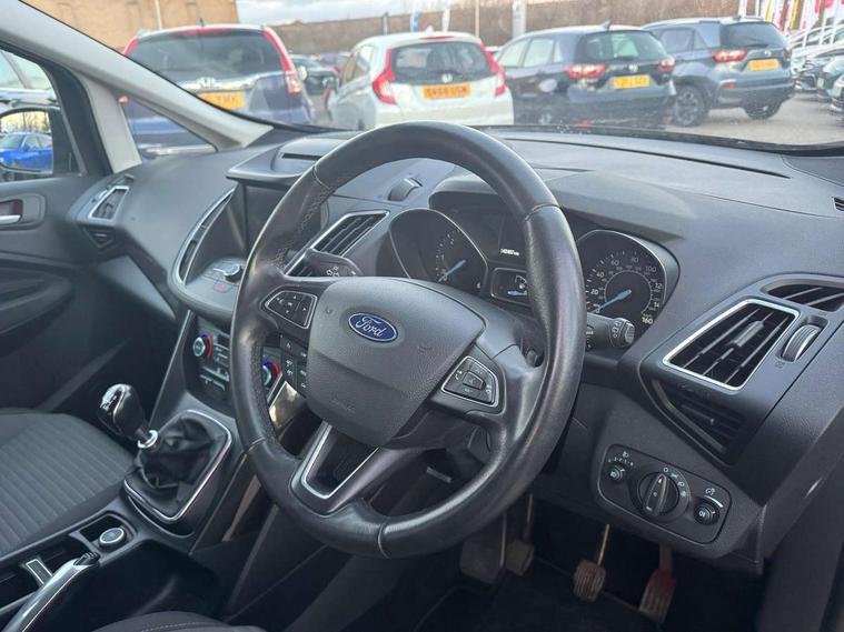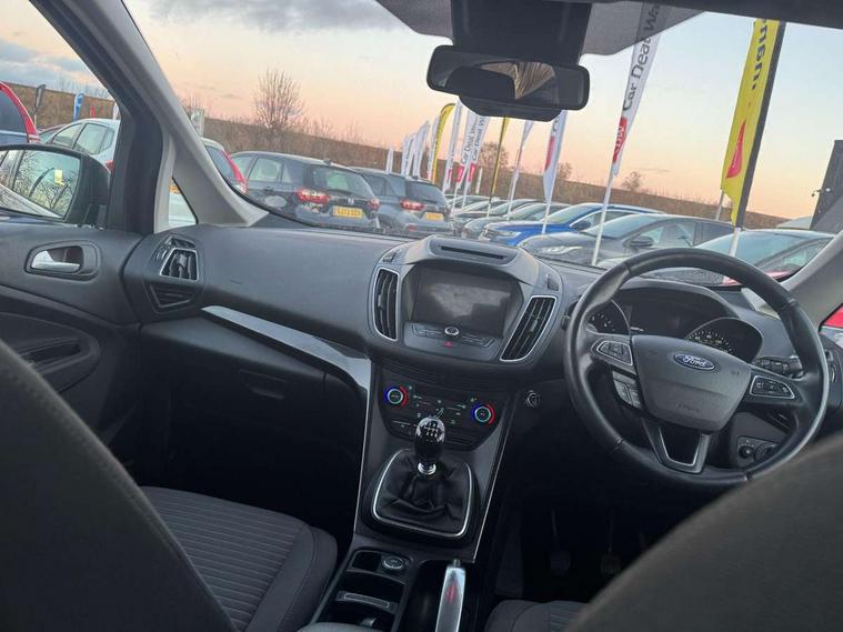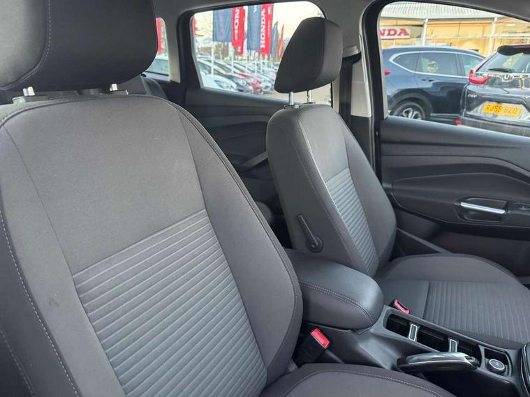 Driver's information system, Easy fuel capless refuelling system, Electric power steering, Engine start button, Multi function display colour screen, SYNC 3 DAB radio/CD, 8" colour touch screen, emergency assistance, Bluetooth connection and advanced voice control, Trip computer, Diesel particulate filter, Steering wheel mounted audio controls, USB connection, 'Global' closing of front/rear windows, Auto dimming rear view mirror, Automatic headlights, Automatic rain sensing wipers, Body colour bumpers with black rubbing strip, Body colour door handles, Body colour door mirrors with integral indicators, Chrome finish on upper door line, Chrome surround for front fog lights, Electric folding door mirrors, Electric front windows + drivers one touch, Electric heated door mirrors, Electric rear windows, Front fog lamps, Intermittent rear wash/wipe, LED daytime running lights, Quickclear heated windscreen, 12V accessory sockets - front and rear, 3 spoke steering wheel, Aluminium scuff plates, Ambient interior lighting, Auxiliary power socket, Centre armrest with storage box, Child observation mirror, Cloth upholstery, Courtesy light in luggage compartment, Driver's seat manual height adjust, Driver/passenger lumbar adjustment, Dual zone electronic climate control, Footwell illumination, Front + rear carpet mats, Front/rear courtesy lights, Fully adjustable front headrests, Isofix child seat attachment, Leather gearknob, Passenger seat height adjuster, Premium centre console, Rake/reach adjustable steering wheel, Rear parcel shelf, Satin chrome interior door handles, Sports style front seats, Three height adjustable rear head restraints, Versatile split folding rear seat - 40/20/40, 3x3 point rear seatbelts, ABS + traction control, Driver and passenger airbags, Driver and passenger side airbags, Electronic brake force distribution, Emergency brake assist, ESP, Fasten seatbelt reminder, Front and rear curtain airbags, Height adjustable front seatbelts, Hill start assist, Intelligent Protection System (IPS), Power child locks, Tyre pressure monitoring system, Anti-theft immobiliser, Keyless entry, Locking wheel nuts, MyKey system, Remote central double locking, Thatcham 1 volume sensing alarm, Satin black trim, Mini steel spare wheel,