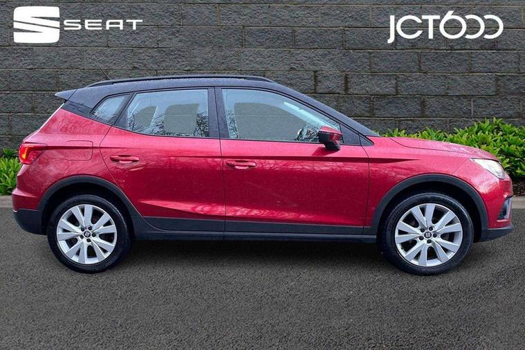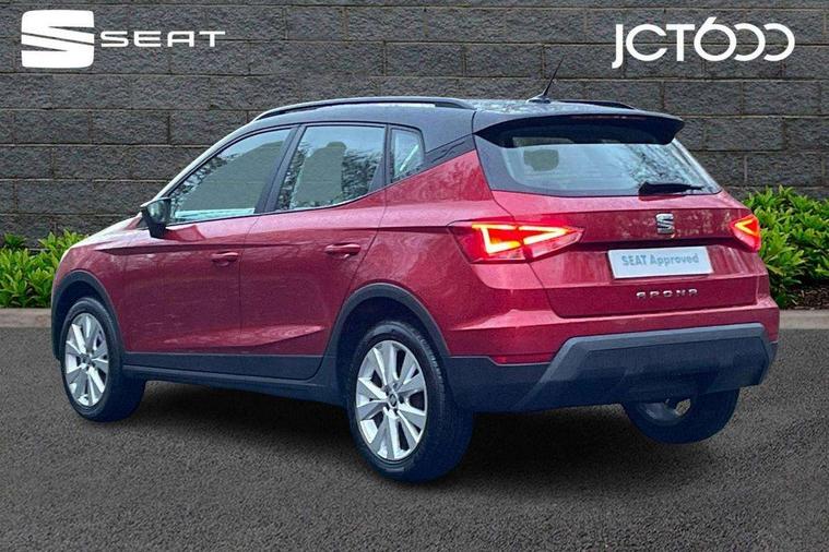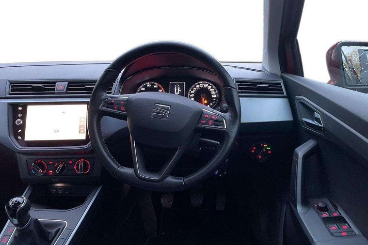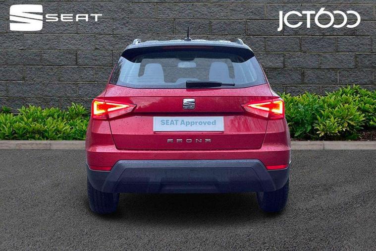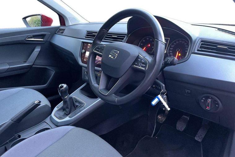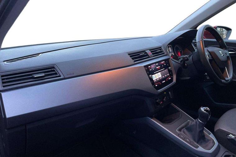 'Lights On' Reminder warning buzzer, Cruise control, Digital clock, Electric speed sensitive power steering, Front assistant collision mitigation, Full Link Smartphone Integration with Mirror Link, Apple Car Play, Google Android Auto, Low fuel warning light, Outside temperature display, Rear parking sensor, RPM counter, Trip computer, Comfort suspension, 6 speakers, Bluetooth interface for hands free and audio streaming, DAB Digital radio, Steering wheel mounted audio controls, Anti theft roof antenna, Automatic activation of hazard warning lights, Automatic headlights, Black roof rails, Black window surrounds, Body coloured bumpers, Body coloured door handle inserts, Chrome grille surround, Electric adjustable door mirrors, Electric front/rear windows with one touch/auto up/down, Electric headlight adjustment, Front fog lights with static cornering function, Halogen headlights, Hidden exhaust pipe, LED daytime running lights, LED licence plate lighting, LED tail lights, Rear fog lights, Rear window wash/wipe, Visible VIN plate, Windshield wiper with intermittent control and potentiometer, 2 cupholders, 3 rear height adjustable headrests, 60/40 split folding rear seat, Active head restraints, Air conditioning, Ambient interior lighting, Card holder, Cloth upholstery, Double boot floor, Driver and passenger sunvisors, Driver/front passenger seat height adjustment, Dust/pollen filter, Footwell ambient lighting, Front courtesy lights, Front reading light, Gear shift indicator, Height/reach adjustable steering column, Illuminated boot, Instrument lighting with brightness control, Isofix attachments on outer rear seats, Leather handbrake, Leather steering wheel and gear knob, Connectivity pack plus - Arona, 3 point seatbelts on all rear seats, ABS+EBA, Child locks on rear doors, Driver/Front Passenger airbags, Electronic stability control, Front and rear seatbelt reminder, Front side/curtain airbags, Height adjustable active front headrests, Hill hold control + Tyre Pressure monitor, Multi-Collision braking, Passenger airbag deactivate switch, Tiredness recognition system, Traction control, 2 folding remote keys with window open/close function, Immobiliser, Locking wheel bolts, Remote central locking + deadlocks, Interior chrome line trim, 17" Dynamic alloy wheels,