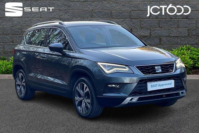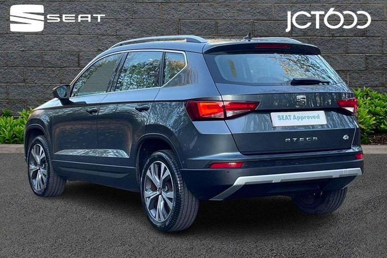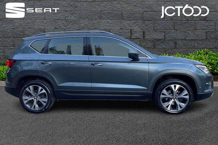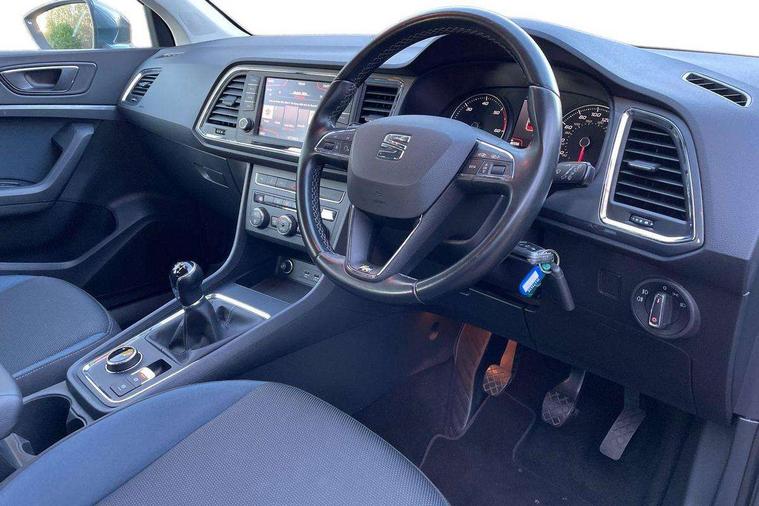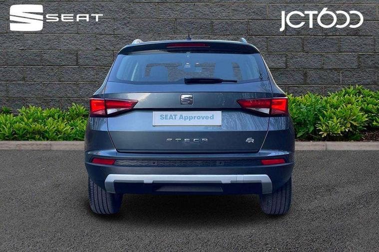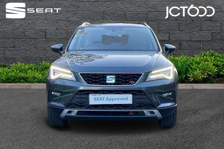 'Lights On' Reminder warning buzzer, 3.5" driver's display, 8.0" colour touchscreen with proximity sensor, Cruise control, Digital clock, Driver alert system, Electric speed sensitive power steering, Full Link Smartphone Integration with Mirror Link, Apple Car Play, Google Android Auto, Low fuel warning light, Multi function display, Outside temperature gauge, Park assist system with steering assist, Remote fuel flap release, RPM counter, Satellite navigation system, SEAT Drive profile, SEAT logo boot release, Self parking functionality (includes front and rear parking sensors), Trip computer, Comfort suspension, XDS electronic differential lock, Steering wheel mounted audio/phone controls, Automatic headlights, Black wheel arch extensions, Body colour bumpers, Body colour door handles, Body colour door mirrors, Chrome headlight surround, Chrome roof rails, Chrome side window trim, Chromed centre radiator grille surround, Electric folding door mirrors, Electrically adjustable and heated door mirrors, Front and rear electric windows, Full LED headlights, Hidden exhaust pipe, LED daytime running lights, LED front fog lights with static cornering light function, LED Headlights, LED tail lights, Matt black radiator grille, Rear fog lights, Rear wash/wipe, Tinted windows, Welcome lighting, 12V power point front, 3 height adjustable rear headrests, 4 Lashing eyes in boot, 60/40 split folding rear seat, Active head restraints, Adjustable front armrest with storage compartment, Ambient lighting, Cloth upholstery, Comfort front seats, Driver sunvisor with covered mirror + card holder, Driver/passenger lumbar adjustment, Driver/passenger sunvisors with illuminated vanity mirrors, Dual zone climate control, Footwell illumination, Front courtesy lights, Front cupholders, Front reading lights, Front seat back storage pockets, Gear shift indicator, Height adjustable driver's seat, Height adjustable front headrests, Height adjustable passenger seat, Illuminated boot, Illuminated glovebox, Instrument lighting with brightness control, Isofix child seat preparation, Leather steering wheel and gear knob, Rear armrest, Rear central air outlet, Rear reading lights, Storage box under drivers seat, Navigation system pack - Ateca, 3x3 point rear seatbelts, ABS, Auto hold function, Automatic post collision braking, Driver/Front Passenger airbags, Drivers knee airbag, Electronic parking brake, Electronic stability control, ESP+EBA, Front and rear seatbelt reminder, Front assist including city emergency braking, Front passenger airbag deactivation, Front side airbags, Hill hold control, Predictive pedestrian protection, Tiredness recognition system, Traction control, Twin curtain airbags, Tyre pressure monitoring system, 2 folding remote keys with window open/close function, Immobiliser, Locking wheel bolts, Remote central locking, Volumetric alarm with back up horn, Chrome effect dashboard facia, 18" Performance machined alloy wheels 36/2,