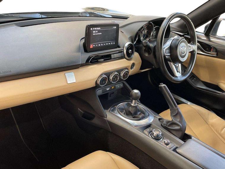 7" touchscreen with multimedia commander, Cruise control + speed limiter, Engine start/stop button, Integrated bluetooth with steering wheel mounted controls, Lane departure warning system, PAS, Rear parking sensor, Remote boot release, Satellite navigation system, Trip computer, Water temperature gauge, Limited slip differential, Sports suspension, Auxiliary input socket, Bose premium 9 speaker system, DAB Digital radio, MP3 compatible radio/single CD player, USB/iPod connection, Adaptive front lighting system, Auto dimming rear view mirror, Automatic headlamp levelling, Body colour bumpers, Body coloured door mirrors, Cherry top roof, Coming/leaving home lighting function, Dual exhaust pipes, Dusk sensitive headlamps, Electric front windows/one touch facility, Electrically heated door mirrors, LED daytime running lights, LED Headlights, Premium cloth soft top with integrated heated glass window and soft top cover, Rain sensing front wipers, Special metallic paint, 12V socket, Body coloured inner door trims, Centre console storage box, Climate control air conditioning, Cupholders, Front centre armrest, Front head restraints, Heated front seats, Height adjustable front seats, ISOFIX front passenger seat child seat compliance, Leather gear knob, Leather handbrake lever, Leather steering wheel, Leather upholstery, Lockable rear storage box, Sports seats, Tilt/slide reclining front seats, Unique floor mats, Windblocker, 3 point ELR front seatbelts with pretensioners, ABS+Electronic Brake force Distribution, DSTC-Dynamic Stability and Traction Control, Dual front airbags, Fasten seatbelt reminder, Hill hold assist, Passenger airbag deactivation system, Side airbags, Tyre pressure monitor, Remote central door locking, Smart keyless entry, Superlocking, Thatcham category 1 alarm + immobiliser, Black vinyl leather dashboard panel, 17" Black BBS alloy wheels, Tyre puncture repair kit,