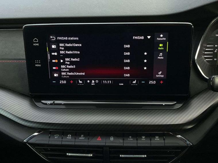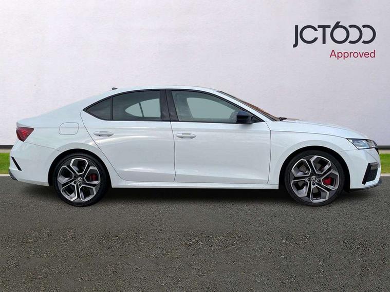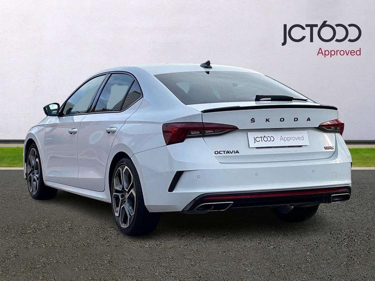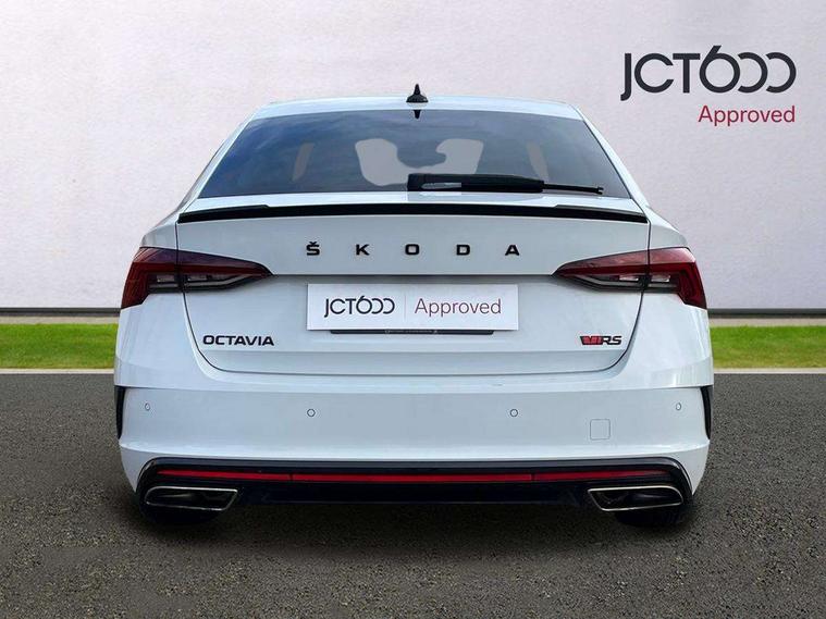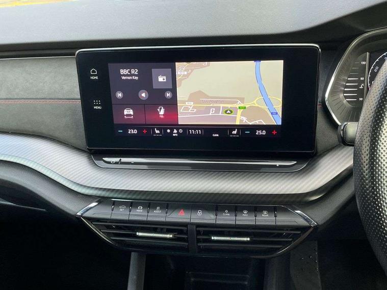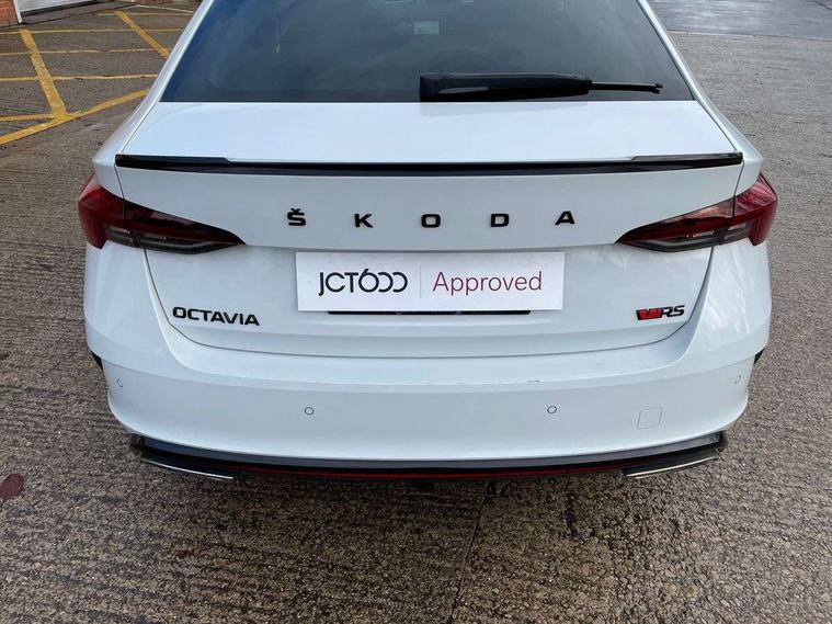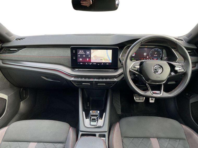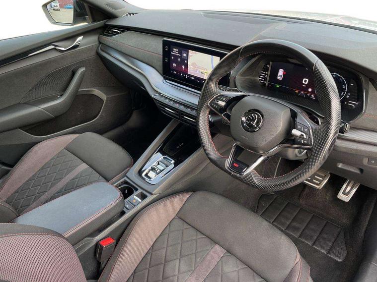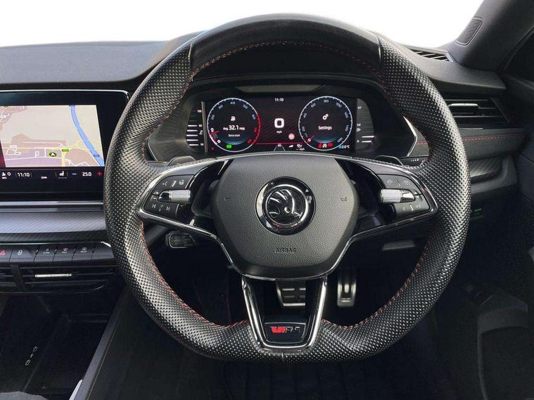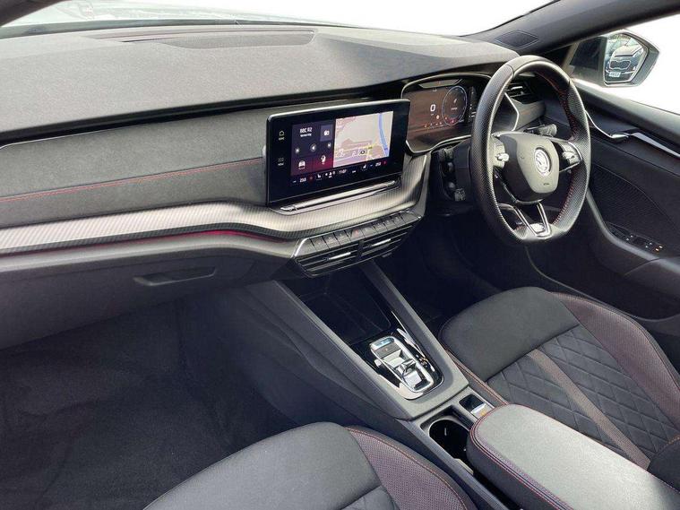 1x USB Type C port in rear view mirror (charging only), 2x USB Type C ports in rear of front centre armrest (charging only), Bluetooth system, Columbus satellite navigation with 10" touchscreen display, eCall emergency system, Front and rear parking sensors with manoeuvre assist, Front assist system, Progressive dynamic steering, Smartlink (includes android auto and mirrorlink), Speed limiter, Turn Assist, Virtual Cockpit - 10.25" digital display, Voice control system, Wireless SmartLink for Apple Car Play, Electronically controlled limited slip differential, Front and rear stabilizers, 2x USB Type C ports (for charging and data transfer), 8 Speakers, DAB Digital radio, Aero front windscreen wipers with intermittent function, Auto dimming rear view mirror, Body colour door handles, Chrome exhaust tailpipes, Door sills with vRS logo, Electric front and rear windows, Exterior gloss black sports styling including front grille, side strip, window surrounds, door mirror and badging, Full LED Matrix headlights with AFS and cornering front fog lights, Headlight washers, Heated rear windscreen, High level third brake light, Ice scraper in fuel cap, LED daytime running lights, Rain and light sensors, Rear fog light on one side, Rear privacy glass, Rear side wing doors, vRS bumpers and lip spoiler, 3 rear headrests, 3 seat bench in 2nd row, 4 foldable roof handles, Aluminium pedals, Black headlining, Black microsuede padded dash panel with red contrast stitching, Chrome inner door handles, Front centre armrest, Front head restraints, Heated front seats, Illuminated air conditioned glovebox, Leather trimmed gearshift lever, Luggage compartment lighting x1 light, Mechanical rear seat release, Parcel shelf - folding, Single front passenger seat, Sunglasses storage, Textile floor mat set, Three spoke leather sports multifunction steering wheel with paddles, Ticket holder, Umbrella in door panel, Unsplit rear bench seat and split folding backrest, LED interior light pack - Octavia, 3 point front/outer rear seatbelts+pre-tensioners, Alarm with interior monitoring, tilt sensor and back up horn, Automatic door unlocking in case of crash, Automatic fuel cut off in case of crash, Automatic warning lights in case of emergency braking, Curtain airbags and front side airbags, Driver and front passenger airbags, Drivers knee airbag, Electronic parking brake, Emergency call and proactive services, ESC including ABS, EBV, MSR, ASR, EDS, HBA, DSR, Front and rear disc brakes, Hill hold control, Hill start assist, ISOFIX on front passenger seat and outer rear seats, Manual rear child locks, Passenger airbag deactivate switch, Red brake calipers, Two tone horn, Tyre pressure monitor, Visual and acoustic seat belt reminder, Warning reflectors in front door, Door locks with immobiliser, Keyless entry and start/stop including rear doors, Remote central locking, Carbon optic decorative inserts, Gloss black air vent surrounds, 19" Altair anthracite alloy wheels,