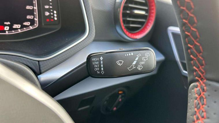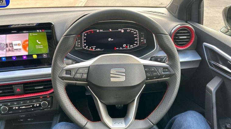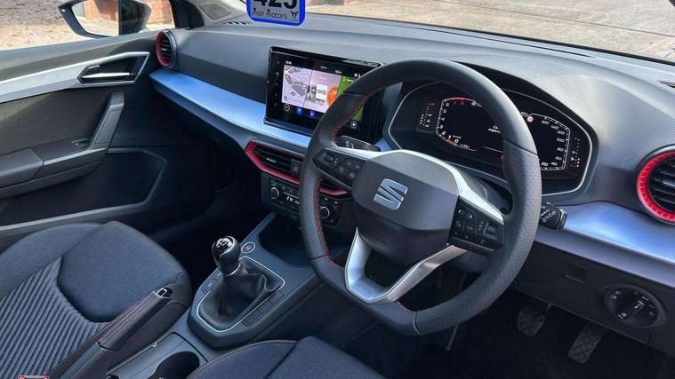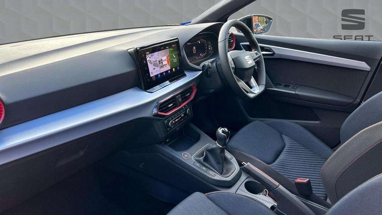 'Lights On' Reminder warning buzzer, 10" Digital cockpit, 9.2" touchscreen navigation system with type C USB socket, Voice control and DAB/AM/FM radio, Auto start and stop system, Bluetooth audio streaming with handsfree system, Digital clock, E-call, Full link smartphone integration with mirror link, wireless apple carplay, Google android auto + USB Type C cable for apple and android devices, Lane assist, Low fuel warning light, Outside temperature gauge, Power Steering, Rear parking sensor, Seat connect plus with safety, service, remote and online, SEAT logo boot release, Speed limiter, Traffic sign recognition, Trip computer, Sports suspension, Auxiliary input socket, Radio/MP3 player, SD card slot, Steering wheel mounted controls, Anti theft roof antenna, Auto dimming rear view mirror, Automatic rain sensing wipers, Black door mirror caps, Black roof spoiler, Black side skirts, Body colour bumpers, Body colour door handles, Brilliant black window surrounds, Dark tinted rear windows, Electric adjustable/heated/folding door mirrors, Electric front windows, Electric headlight adjustment, Electric panoramic sunroof, Electric rear windows, Front/rear fog lights, FULL LED automatic headlights with dynamic headlight range control, coming and leaving home, LED daytime running lights, LED 3rd brake light, LED tail lights, Rear roof spoiler with FR twin exhausts, Rear side wing doors, Rear wiper, 3 seat bench in 2nd row, 60/40 split folding rear seat, Ambient interior lighting, Chrome detailing and black headlining, Dual zone climate control with combination filter, Front courtesy lights, Front cupholders x 2, Front reading lights, Front sport bucket seats, Gear shift indicator, Glovebox, Heated front seats, Height adjustable front and rear headrests (five), Height adjustable front seats, Height/reach adjust steering wheel, Illuminated air vent surrounds, Illuminated boot, Instrument lighting with brightness control, Isofix, Leather multifunction flat bottomed sports steering wheel, Microsuede cloth upholstery, Passenger sunvisor, Single front passenger seat, Storage pockets on back of front seats, Sunvisors with mirror and driver side card holder, Safety and driving pack (S) - Ibiza, 3 point seatbelts on all 3 rear seats, ABS, Active front headrests, Child locks on rear doors, Electronic stability control, Energy recovery system, Front driver and passenger side airbags with curtain airbag and front passenger airbag deactivation, Hill hold control, Multi-Collision braking, Seat belt reminder for front and rear seats, Tiredness recognition system, Tyre pressure monitoring system, KESSY Keyless entry and go, Locking wheel bolts, Perimeter alarm and interior monitoring with backup horn and tow away protection, Remote central locking + deadlocks, 18" Performance alloy wheels in glossy black,
