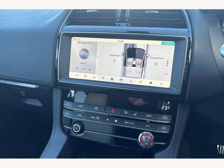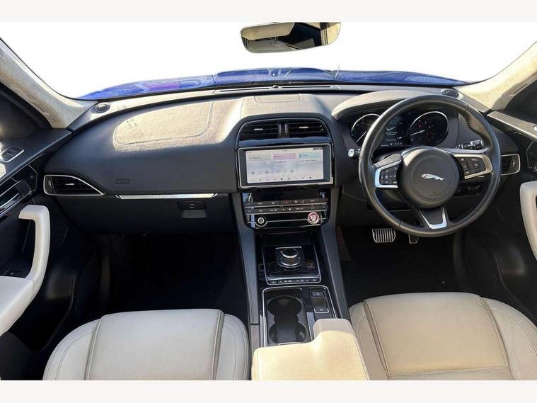 Analogue dials with 7" central TFT display, Auto speed limiter, Driver condition monitor, Eco driving style assistant, Front parking aid, Lane departure warning system, Lane keep assist with driver alert control, Outside temperature gauge, Pro services and wifi hotspot, Push button starter, Rear parking aid, Satin chrome surround on touch screen, Service interval indicator, Servotronic speed sensitive power steering, Start up sequence with movement in dials and lighting, Traffic sign recognition, Trip computer, Voice control system, All terrain progress control, AM/FM radio, Bluetooth connectivity including audio streaming, DAB Digital radio, Dynamic volume control, InControl protect, USB/iPod connection, 3 flash lane change indicators, Approach Illumination, Auto dimming rear view mirror, Automatic headlights, Black rear bumper valance, Body colour bumpers, Body colour door mirrors, Dual tailpipe, Electric front/rear windows with one touch/auto up/down, F-Pace badge, Front fog lights, Grained black door claddings, Green tinted heat insulating glass, Heated rear window with timer, Illuminated metal tread plates with Jaguar script, LED tail lights, Non acoustic front windscreen, Rain sensor windscreen wipers, Rear fog lights, Rear metal tread plates, Rear wiper, Trailer stability assist, Variable front intermittent wipers, 12V power point front, 12V power point in luggage area, 2nd row air vents, 3 rear headrests, 40:20:40 split folding rear bench seat, Bright metal foot pedals, Centre armrest console, Centre console storage box, Door sill tread plates, Fold flat front seats, Front centre armrest with storage compartment, Illuminated glovebox, Illuminated luggage compartment, Interior front door handles with separate locking switches, ISOFIX on outer rear seats, Jaguar sense, JaguarDrive selector, Multifunction steering wheel, Overhead lighting console, Premium carpet mats, Rear armrest with 2 cupholders, Reversible boot floor, Shopping hook in boot, Sport leather steering wheel, Standard seats, Steering wheel gearshift paddles, Sunvisors with illuminated vanity mirrors, Tie down hooks in luggage area, Twin front covered cupholders, Connect pro pack - F-Pace, 3x3 point rear seatbelts, ABS, Anti-whiplash front headrests, Autonomous emergency braking (AEB) with forward facing camera, Brake pad warning light, Driver/Front Passenger airbags, DSC - Dynamic Stability Control, Electronic parking brake, Front and rear curtain airbags, Front and rear seatbelt reminder, Front passenger seat occupancy sensor, Front side airbags, Grey brake calipers, Hill start assist, Power child locks, Torque vectoring brake, Traction control, Tyre pressure monitoring system, Immobiliser, Keyless Start, Perimeter alarm, Remote central locking, Valet mode, Luxtec door trim, Luxtec wrapped instrument panel, Satin chrome centre console surround,