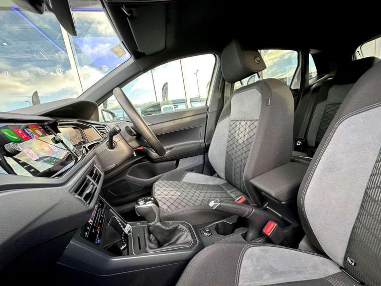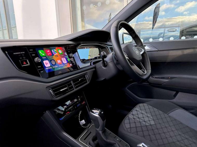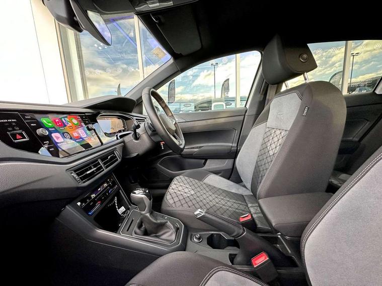 Adaptive cruise control with follow-to-stop and speed limiter, Bluetooth mobile phone interface, Digital Cockpit Pro with 10.25" Display, Driver alert system, Dynamic road sign display, Emergency call service, Power assisted speed sensitive steering, Preparation for We connect and We connect plus, Speedo and rev counter, electronic odometer, trip, service interval display and fuel gauge, Standard rear axle, Travel Assist - Lane keeping system and traffic jam assist, Travel assist including emergency assist, Trip computer, Warning signal and warning light for front and rear seatbelts not fastened, Washer fluid level indicator, Wireless app connect, Front wheel drive, Rear shock absorpion, Start-stop system with battery regeneration (recuperation - energy recovery during braking), DAB Digital radio, Diversity antenna for FM reception, Front and rear 6 speakers, Body colour bumpers, Body colour door handles, Electric front windows, Front scuff plates with R-Line logo, Heat insulating darkened glass in side and rear windows, Heat insulating glass windscreen, Power folding adjustable/heated exterior mirrors and front passenger exterior mirror lowering function, Rear electric windows, Rear fog light, Rear side wing doors, Rear windscreen washer and wiper with interval delay, Third brake light, 12V power socket in centre console, 2 USB-C ports in the front, 2 USB-C charging sockets on the center console in the rear, 3 rear head restraints, 60/40 split folding rear seat and rear seat bench not split, Air care climatronic air conditoning system with active combination filter and 2-zone temperature control, Black roof lining, Chrome plated radiator grille inserts, air vent surrounds and light switch surrounds, Door and side trim panel, Driver and front passenger seat height adjustment, Driver/passenger sunvisors with illuminated vanity mirrors, Front + rear carpet mats in recycled material, Front centre armrest, Front footwell illumination, Front seat backrest storage pockets, Front sports comfort seats, Handbrake lever handle in leather, Headliner in recycled material, Isofix child seat preparation easy-fit (for two outer rear seats, and front passenger seat) compatible with I-size, Karoso artvelours cloth upholstery, Leather trimmed gear knob, LED interior light with switch off delay and dimmer, 2 reading lights front and rear, Luggage compartment cover, Luggage compartment floor, Luggage compartment lighting, Lumbar adjustment for front seats, Single front passenger seat, Stainless steel pedals, Standard pedal cluster, Three spoke leather wrapped multifunction steering wheel with shifting paddles, Light and sight pack - Polo R-Line/Black Edition, 3 point height adj front seatbelts + pretensioners, 3x3 point rear seatbelts, ABS, Driver and front passenger airbag with front passenger airbag deactivation, Drivers and front passengers safety optimised head restraints, ESC (Electronic stability control) + EDL (Electronic Differntial lock) and ASR (Traction control), Extended and predictive pedestrian/ cyclist protection, Front curtain and side airbags with center airbag, Hill hold control, Manual child lock in rear doors, Single tone horn, Tyre pressure loss indicator, Alarm with interior protection, Anti-theft alarm system with interior monitoring, backup horn, and towing protection, Anti-theft wheel bolts, Electronic engine immobiliser, Chrome applications on rotary light, mirror adjustment, window regulator switches, outlet with frame in black, Dark grey anodised matt decorative inserts in dash and front door panels, Low rolling resistance tyres,