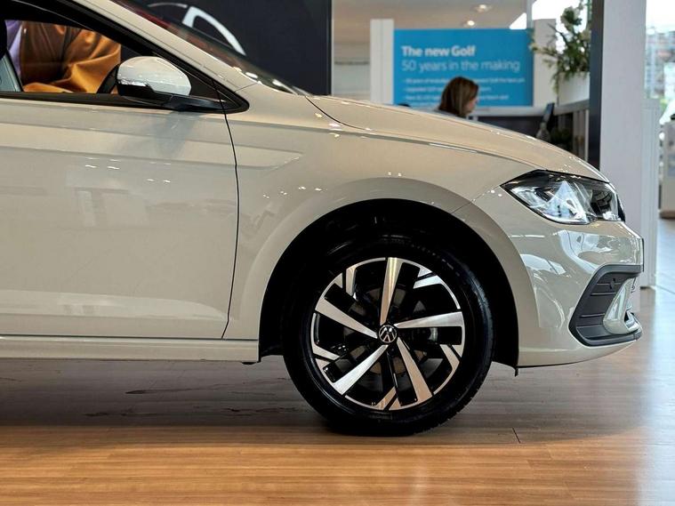 Advanced driver attention and drowsiness monitor, Bluetooth mobile phone interface, Dynamic road sign display, Emergency call service, Multifunction front facing camera for distance control, Park distance control, Power assisted speed sensitive steering, Predictive adaptive cruise control without follow-to-stop and speed limiter, Preparation for navigation system with media and internet package, Preparation for We connect and We connect plus, Rear view camera, Speedo and rev counter, electronic odometer, trip, service interval display and exterior temperature gauge, Standard rear axle, Travel Assist - Lane keeping system and traffic jam assist, Travel assist including emergency assist, Trip computer, Warning signal and warning light for front and rear seatbelts not fastened, Washer fluid level indicator, Wireless app connect, Front wheel drive, Rear shock absorpion, Start-stop system with battery regeneration (recuperation - energy recovery during braking), DAB Digital radio, Diversity antenna for FM reception, Front and rear 6 speakers, Automatic dimming interior rear view mirror, Automatic headlight control with LED separate daytime running lights with coming/leaving home function, Body colour bumpers with chrome inserts, Body colour door handles, Body colour door mirrors, Electric front windows, Engine badge deletion, Headlight range adjustment, Heat insulating and laminated safety glass windshield, LED Headlights, LED rear combination lamps, Power folding adjustable/heated exterior mirrors and front passenger exterior mirror lowering function, Rain sensor, Rear electric windows, Rear fog light, Rear side wing doors, Rear tinted glass from B-pillar backwards approx 65% tinted, Rear windscreen washer and wiper with interval delay, Third brake light, 12V power socket in centre console, 2 front and 2 rear reading lights with switch off delay and dimmer, 2 USB-C ports in the front, 2 USB-C charging sockets on the center console in the rear, 3 rear head restraints, 60/40 split folding rear seat and rear seat bench not split, Ceramique roof lining, Chrome plated radiator grille inserts, air vent surrounds and light switch surrounds, Door and side trim panel, Driver and front passenger seat height adjustment, Driver/passenger sunvisors with illuminated vanity mirrors, Front centre armrest, Front seat backrest storage pockets, Front standard seats, Handbrake lever handle in leather, Hartley/Thomas cloth upholstery, Headliner in recycled material, Isofix child seat preparation easy-fit (for two outer rear seats, and front passenger seat) compatible with I-size, Leather trimmed gear knob, Luggage compartment cover, Luggage compartment lighting, Removable luggage compartment floor, Single front passenger seat, Standard climatic zones, Standard pedal cluster, Three spoke leather wrapped multifunction steering wheel with shifting paddles, Light and vision pack - Polo, 3 point height adj front seatbelts + pretensioners, 3 point seat belt for centre rear seat, 3 point seatbelts, outer rear with ECE lable, ABS, Driver and front passenger airbag with front passenger airbag deactivation, Drivers and front passengers safety optimised head restraints, ESC (Electronic stability control) + EDL (Electronic Differntial lock) and ASR (Traction control), Extended and predictive pedestrian/ cyclist protection, Front assist with autonomous emergency braking (for Adaptive Cruise Control ACC up to 130 mph), Front curtain and side airbags with center airbag, Front disc brakes, Hill hold control, Manual child lock in rear doors, Rear drum brakes, Single tone horn, Tyre pressure loss indicator, Alarm with interior protection, Anti-theft alarm system with interior monitoring, backup horn, and towing protection, Anti-theft wheel bolts, Electronic engine immobiliser, Lava stone black gloss/matt decorative inserts in dash and front door panels, 16" Torsby alloy wheels, Low rolling resistance tyres,