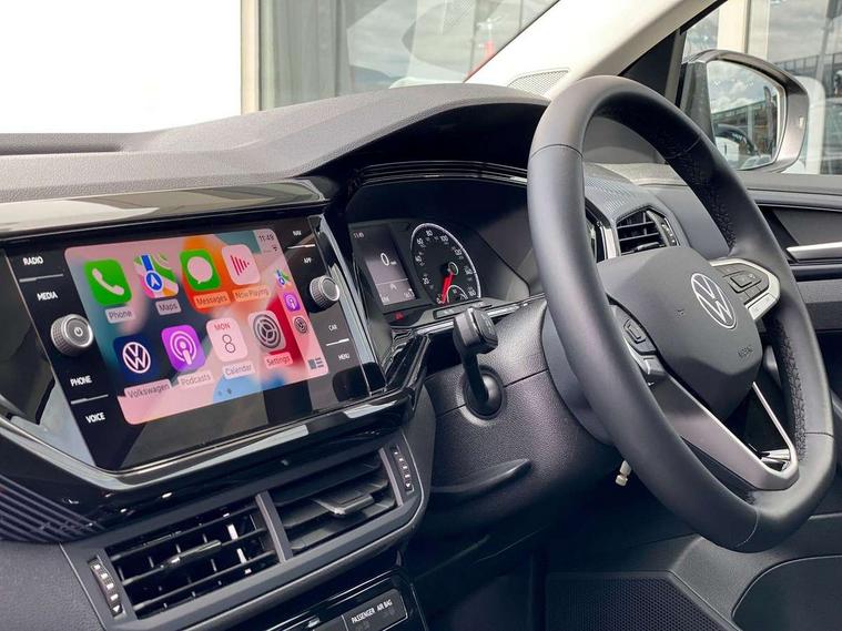 'Lights On' Reminder warning buzzer, Adaptive cruise control including front assist, forward collision warning, autonomous emergency braking, speed limiter, Blind spot monitoring, Bluetooth telephone and audio connection for compatible devices, Car information display, Digital cockpit, Driver alert system, eCall emergency call system, Lane assist, Low washer fluid warning light, Multifunction computer with visual gear change recommendation for fuel consumption, Operating permit alteration, Power assisted speed sensitive steering, Speedo, rev counter, electronic odometer, trip, service interval display, exterior temperature and fuel gauge, Stop/start system, Warning sound and light for doors and tailgate open, Warning sound and light for front seatbelts unfastened, We Connect Go Dongle, Wireless Car net app connect with Apple CarPlay, combined functionality of Apple CarPlay/Android Auto and MirrorLink, Battery regeneration during braking, Misfuel prevention device, 2x USB connection with USB charging sockets and in rear centre console, DAB Digital radio receiver, Diversity antenna for FM reception, Multi device interface (MDI) with USB connection, Music playback - MP3, WMA and AAC files, Premium USB cable for Apple or Android smartphone compatibility, Simultaneous pairing of 2 compatible mobile devices, Title and cover art display, Automatic hazard lights activation under emergency braking, Black door mirrors, Black roof rails, Body colour door handles, Body coloured bumpers, Dusk sensor + automatic driving lights, Electrically foldable, adjustable and heated door mirrors with reverse activated kerb view adjustment on passenger's side, Front and rear electric windows, Front fog lights with static cornering function, Galvanised body, Heated rear window, LED third brake light, Lower door sills and door pillars in black, Radiator grille with high gloss surface and chrome strip, Rear fog light on one side, reversing light on both sides, Rear lights incorporating LED technology, Rear side wing doors, Rear tinted glass 65% approx light absorbing from B pillar backwards, Rear window aerial, Rear windscreen washer and wiper with interval delay, Reflectors in all doors, Tailgate with integrated roof spoiler, Windscreen wipers/ intermittent wipe + 4 position delay, 12V Accessory socket in centre console, 3 rear head restraints and 3 rear three point seat belts with ECE label, 3 seat bench in 2nd row, 60/40 split folding rear seat backrest, Comfort front sport seats, Diag cloth upholstery, Drawer under drivers seat, Driver and front passenger sunvisor with vanity mirror, Driver's sunvisor with ticket holder, Dust and pollen filter, Front + rear carpet mats, Front and rear reading lights X 2, Front centre armrest with storage compartment, Front seat back storage pockets, Front seats with adjustable lumbar support, Glovebox, Heating and fresh air system with 4 stage blower, Height/reach adjust steering wheel, Instrument lighting white adjustable panel illumination, Interior light with delay, Isofix child seat preparation for 2 rear child seats, Luggage compartment cover, Luggage compartment lighting, Manual air conditioning, Moveable and foldable Rear bench seat, Single front passenger seat, Storage compartment in drivers and front passengers door, Three spoke multi-function leather trimmed steering wheel and gearknob, Variable boot floor, Anti-lock Braking System (ABS) with Hydraulic Brake Assist (HBA), Automatic post collision braking system, Driver and front passenger safety-optimised head restraints, Drivers and Front Passengers airbags with front passengers airbag deactivation switch, ESC with EDL, ASR, EDTC and trailer stabilisation function, Front and rear curtain airbags, Front disc brakes and rear drum brakes, Front seat side impact airbags, Height-adjustable front three-point seat belts with tensioners, Hill start assist, Pre crash preventive occupant protection, Rear door child safety locks, Rigid safety cell with front and rear crumple zones, Single torn horn, Tyre pressure loss indicator, Volkswagen roadside assistance, Alarm with interior protection and deactivation via infotainment system, Child security locks in rear doors, Electronic engine immobiliser, Remote tailgate unlocking using key fob, Decorative inserts transition high gloss black/platnium grey, 17" Manila black diamond turned surface alloy wheels + anti theft wheel bolts, Breakdown kit,