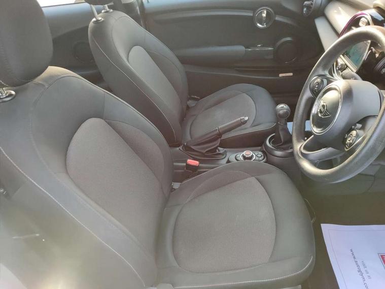 Acoustic seat-belt warning, Basic bluetooth function with USB audio, Brake fluid level warning light, Brake pad wear indicator warning light, DTC - Dynamic traction control, Exterior temperature gauge, Intelligent emergency call, MINI TeleServices, Oil level indicator, On board computer, Push button starter, Service interval indicator, Servotronic PAS, Electronic differential lock, Auxiliary input socket, DAB digital radio module, 2 speed wipers+intermittent wipe, Anti dazzle mirror, Anti trapping/one touch open close front windows, Body coloured bumpers, Chrome bezels around rear lights and headlights, Chrome door handles, Chrome exhaust tailpipe, Chrome grille surround, Chrome plated trim on bottom edge of window, Chrome strip on lower grille, Electric front windows, Electric rear windows, Electrically adjustable door mirrors, Flared wheel arches, Follow me home headlights, Green tinted heat insulating glass, Heated door mirrors/heated windscreen washers, Heated rear window with auto timer, High gloss black tailgate, LED fog lights, LED rear lights, Rear wiper, Side scuttles, White indicator lights, 2 rear head restraints, 4 boot load lashing points, 4 way manually adjustable passenger seat with height, reach, tilt, backrest and headrest, 6-way manually adjustable driver's seat, Active carbon filter, Adjustable front seats backrest, Air recirculation system, Auxiliary socket in centre console storage compartment, Centre console storage, Driver's seat height adjuster, Driver/passenger sunvisors, Easy entry seats, Front and rear cupholders, Front head restraints, Front passenger grab handle, Gear/selector and handbrake in artificial leather, Internal chrome door handles, Isofix child seat preparation, Luggage compartment lighting, Multifunction steering wheel, Reach + rake adjustable steering column, Rear grab handles, Rear storage trays, Split folding rear seats, Storage compartments in doors, Toolkit in luggage compartment, 3 point seatbelts, 3x3 point rear seatbelts, ABS/EBD, ASC+T, Cornering brake control (CBC), Crash Sensor - activates hazard/interior lighting + unlocks doors, Driver and passenger airbags, Driver/front passenger side airbags, DSC - Dynamic Stability Control, Fuel cut off safety device, Head airbags, Hill start assist, Passenger airbag deactivation system, Seatbelt pretensioners, Tyre pressure warning, Ventilated front disc brakes, Drive away door locking, Locking wheel bolts, Remote central locking/doors+fuel cap+tailgate, Second remote key, Thatcham category 1 alarm + immobiliser,
