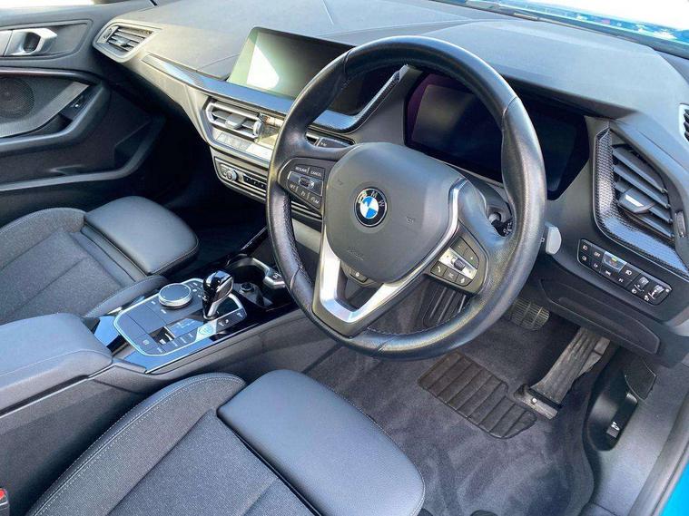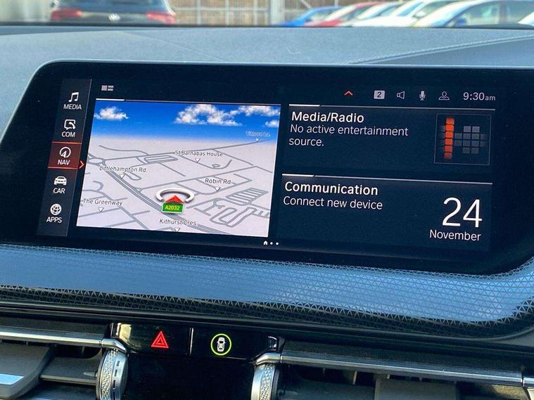 Active guard plus, Attentiveness assist, Bluetooth / WiFi interface for wireless connection of mobile terminal devices and audio streaming, BMW ConnectedDrive online services, BMW Teleservices, Check Control warning system for monitoring of lights and door/luggage compartment open warning, Cruise control with brake assist, Eco pro mode, Electric power steering with Servotronic steering optimised at all speed ranges, Front axle single joint with specific axle kinematics to minimise drive influences on steering + provide increased rigidity agile driving behaviour, Integrated owners handbook, Lane departure warning system, Oil sensor for level and grade, On board computer, Optimum shift indicator, Personal Profile, Pull away assistant, Rigidly mounted rear subframe - Multi link construction with separate spring / damper configuration and excellent driving characteristics, Speed limit Info including no-overtaking indicator, Speed limiter, Aluminium lightweight construction, Anti roll bar front and rear, Balancer shaft, Double VANOS twin scroll turbocharging system, Drive Performance Control, Electronic differential lock, High precision injection, Petrol Particulate Filter, Suspension with twin tube gas filled shock absorbers with degressive characteristic curve, VALVETRONIC engine management, DAB Digital radio, Auto dimming rear view mirror, Automatic windscreen wipers and automatic headlight, Body colour door handles, Body colour mirror caps, Body colour roof trims, Chrome exhaust twin tailpipes round 90mm in left, Direction indicator side lights in exterior mirrors, Fading support, Follow me home headlights, Front and rear bumper system with replaceable deformation elements, Front and rear electric windows with open and close fingertip control, anti trap facility and comfort closing, Front bumper in Body colour with exclusive Sport air inlets finished in High gloss Black, Front door sill finishers in black plastic with M designation in metallic look, Green tinted heat protection glazing, Heated, electrically adjustable exterior mirror aspheric on driver side, convex on passenger side, High gloss shadowline window frame, Recess cover mirror frames and B/C pillar embelisher trim, High level third brake light, Integrated front windscreen with washer jets, Kidney grille in chrome frame with highgloss black struts, LED daytime running lights, LED eyebrow turn indicators, LED front fog lights, Lightweight engineering, Manual headlight beam throw control, Manual headlight levelling, Matt black air guide grilles, Matt black wheel arch trim, Model designation on electric bootlid, Nearside reverse light in rear light cluster, Preparation for high beam assistant, Rear bumper in Body colour with exclusive Sport design elements finished in High gloss Black, Rear fog lights, Rear side wing doors, Rear window wiper, Shark fin antenna, Trailer stabilisation logic, Visible VIN plate, Welcome lighting, 12V power socket in front centre console with blanking plug, 3 rear seat head restraints, 3 seat bench in 2nd row, 3 spoke sports leather steering wheel in black leather with black stitching and decorative finisher in pearl chrome, Black boot net with lashing eyes, Cargo function on 2nd seat row, Child seat ISOFIX attachment for two outer rear seats and front passenger seat with anchorage points, Conditioned based service, Folding rear clothes hook, Four grab handles integrated in roof lining, Front and rear door pockets with bottle holders, Front and rear side armrest integrated into door trim, Front armrest, Front sports seats, Glove compartment, Height adjustable front head restraints, Luggage compartment for bag hooks on left and right, foldable luggage compartment liner and four lashing eyelets, Manual adjust steering wheel, Multi-function controls for steering wheel, Single front passenger seat, Storage compartment in centre console, Sun visors with vanity mirrors and insert tab, Two front centre console cupholders, Two zone automatic air conditioning, Velour floor mats, BMW live cockpit professional pack- 1 Series, Connected pack professional - 1 Series, Interior lights pack - 1 Series, 2 tone horn, 3 point seatbelts on all seats, front pyrotechnic belt tensioners, stopper and belt force limiters, rear coded belt buckles, Airbags - Front driver/passenger, front and rear curtain head protection, front side, manual deactivation of front passenger airbag, Anti lock braking system (ABS) with brake assist, BMW emergency call, Brake drying, Braking readiness, Child proof locking system in rear door, City braking function, Comfort modes, Cornering brake control, Crash sensor activating central locking release, hazard warning lights, fuel cut off, interior lighting + activation of safety battery terminal clamp, Driver and front passenger seat belt security check, Dynamic stability control + (DSC+), Dynamic Traction Control - DTC, Electrically operated hand brake including automatic hold function, Front and rear disc brakes, Seatbelt warning, Side impact protection, Tyre pressure monitoring system, Warning triangle and first aid kit, Central locking switch for all doors, fuel filler cap and luggage compartment, Deadlocking function system to all doors, Drive away locking system on all doors and luggage compartment with de-activated in iDrive settings, Locking wheel bolts, Remote central locking with two Integrate key, one button for opening and closing all lock, open and close window, button for open luggage compartment, Start/stop button illuminated in centre console with keyless engine start and auto start stop deactivation button, Thatcham Cat.1 alarm and immobiliser, Wheel slip limitation close to the actuator (ARB), Contrast stitching on instrument panel, Illuminated Berlin interior trim in front, Electrically powered 12V compressor, Reduced rolling resistance tyres,