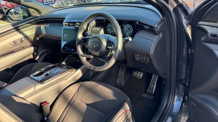 10.25" super vision instrument cluster, 10.25" touchscreen satellite navigation with mapcare and live services, Apple car play/Android Auto, Blind spot collision avoidance assist, Blind spot Collision Warning (BCW), Bluetooth system, Cruise control - smart adaptive speed control with stop and go function, Digital clock, Drive mode selector, Driver attention warning, E-call, Emergency stop signalling system, Forward Collision Avoidance Assist (FCA) - Car, Pedestrian and Cycle, Forward Collision Avoidance Assist Junction Turning (FCAJX), Front and rear parking sensors, Intelligent speed limit assist, Lane follow assist, Lane keep assist, PAS, Rear cross traffic collision avoidance (RCCA), Rear cross traffic collision warning (RCCW), Rev counter, Reversing camera, Roll over sensor, Smart power tailgate, Tailgate open warning light, Trip computer, Trip odometer, Voice recognition, Water temperature gauge, Windscreen washer fluid sensor and warning indicator, Wireless phone charging pad, DAB Digital radio, Krell premium audio system with 8 speakers and subwoofer, Steering wheel mounted audio/phone controls, USB connections in front and rear, Adjustable intermittent front windscreen wipers with aero wiper blade, Auto dimming rear view mirror, Automatic defog system, Automatic headlights with dusk sensor, Automatic windscreen wipers with rain sensor, Black headlamp bezels, Body colour bumpers, Body colour door mirrors with integrated indicators, Body colour exterior door handles, Body coloured wheel arches, Dark chrome effect radiator grille, Electric tilt/slide panoramic sunroof, Electrically adjustable, heated and power folding door mirrors, Follow me home headlights, Front and rear electric windows with anti-trap mechanism and one touch control, Front fog lights, Gloss black door frame moulding, High beam assist, High level third brake light, LED daytime running lights, LED rear lights, MFR - LED headlight with static bending light, N Line body coloured side mouldings, N Line design front grille, N Line Exclusive front and rear bumpers, N Line rear spoiler with fins, Positioning Lights - LED, Privacy glass - Rear windows and tailgate, Rear side window blinds, Rear side wing doors, Rear wash/wipe with intermittent wipe setting, Roof rails, Silver front and rear skid plate, Sports twin tip exhaust and diffuser, Tinted glass with windscreen shade band, Trailer stability assist, 12V power outlets in front console and luggage compartment, 3 seat bench in 2nd row, 40/20/40 split folding rear seat, Adjustable head restraints (Up and down), Alloy pedals, Ambient lighting, Black headliner, Cupholders in rear armrest, Door courtesy lights, Driver and passenger sunvisors with illuminated LED vanity mirrors, Driver's seat electric lumbar support, Driver's seat manual height adjust, Front and rear door pockets, Front armrest with storage box, Front door pocket bottle holders, Front passenger seat lumbar adjustment, Heated front seats, Heated steering wheel, Height/reach adjustable steering column, Illuminated/air conditioned glove compartment, ISOFIX child seat anchorage points attached on outer rear seats, Leather wrapped steering wheel, Leather/suede upholstery, LED personal and overhead console lamp, Luggage area underfloor compartment, Luggage compartment lighting, Luggage cover, Luggage hooks, Manual height adjustable front passenger seat, Map and reading lights, N Line logo on steering wheel, Retractable load cover, Single front passenger seat, Sunglasses holder, Three zone climate control, 3x3 point rear seatbelts, Active bonnet, Airbag - Front, front side, curtain and centre front airbags, Anti-lock brake system (ABS), Brake assist function, Childproof rear door locks, Downhill brake control, Electric parking brake with auto hold function, Electronic stability control, Front and rear seatbelt reminder, Front passenger airbag deactivation switch, Front seatbelt pretensioners, Hill start assist control (HAC), Multi-Collision braking, Outer rear seatbelt height adjustment, Seatbelt height adjustment for front seats, Traction control, Tyre pressure monitoring system with individual tyre pressure display - TPMS, Alarm, Deadlocks, Immobiliser, Locking wheel nuts, Remote control central locking, Smart key with keyless entry and engine start/stop button, Speed sensitive auto door locking, 19" Alloy wheels, Tyre repair kit,