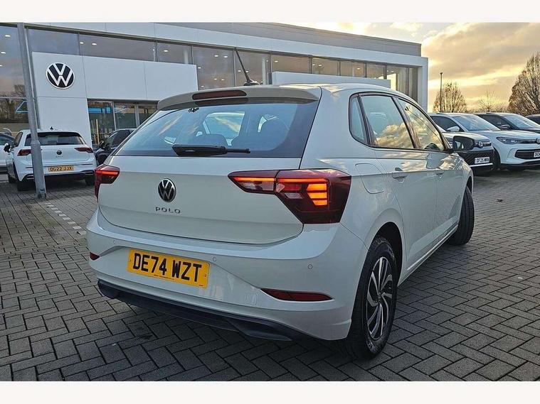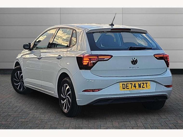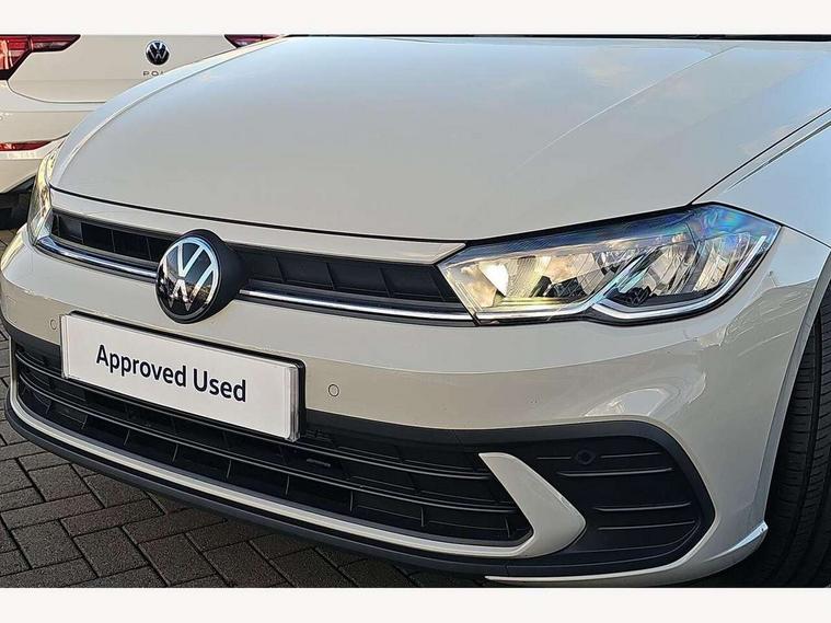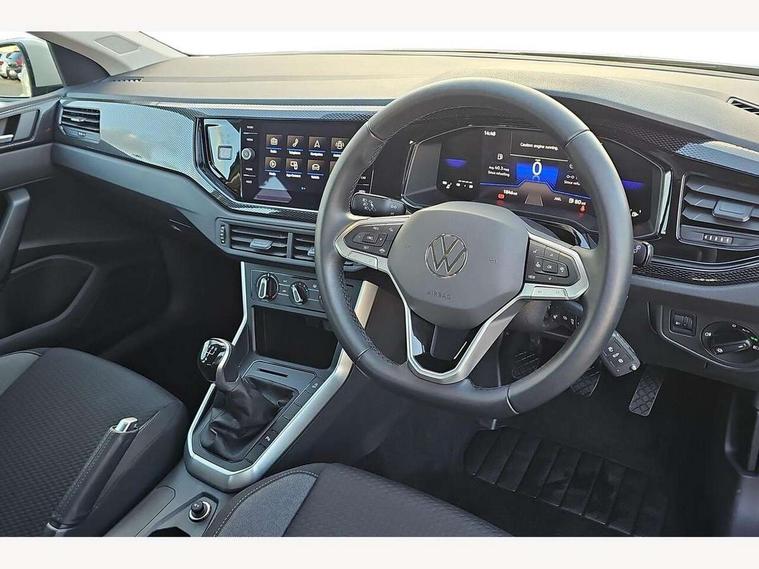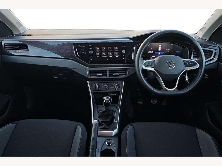 Advanced driver attention and drowsiness monitor, Bluetooth mobile phone interface, Cruise control + speed limiter, Dynamic road sign display, Emergency call service, Lane keeping system Lane Assist, Multifunction camera, Power assisted speed sensitive steering, Preparation for navigation system with media and internet package, Preparation for We connect and We connect plus, Speedo and rev counter, electronic odometer, trip, service interval display and exterior temperature gauge, Standard rear axle, Trip computer, Warning signal and warning light for front and rear seatbelts not fastened, Washer fluid level indicator, Wireless app connect, Front wheel drive, Rear shock absorpion, Start-stop system with battery regeneration (recuperation - energy recovery during braking), DAB Digital radio, Diversity antenna for FM reception, Front and rear 6 speakers, Automatic dimming interior rear view mirror, Automatic headlight control with LED separate daytime running lights with coming/leaving home function, Body colour bumpers with chrome inserts, Body colour door handles, Body colour door mirrors, Electric front windows, Engine badge deletion, Headlight range adjustment, Heat insulating and laminated safety glass windshield, LED Headlights, LED rear combination lamps, Power folding adjustable/heated exterior mirrors and front passenger exterior mirror lowering function, Rain sensor, Rear electric windows, Rear fog light, Rear side wing doors, Rear windscreen washer and wiper with interval delay, Third brake light, 12V power socket in centre console, 2 front and 2 rear reading lights with switch off delay and dimmer, 2 USB-C ports in the front, 2 USB-C charging sockets on the center console in the rear, 3 rear head restraints, 60/40 split folding rear seat and rear seat bench not split, Ceramique roof lining, Chrome plated radiator grille inserts, air vent surrounds and light switch surrounds, Door and side trim panel, Driver and front passenger seat height adjustment, Driver/passenger sunvisors with illuminated vanity mirrors, Front centre armrest, Front seat backrest storage pockets, Front standard seats, Handbrake lever handle in leather, Hartley/Thomas cloth upholstery, Headliner in recycled material, Isofix child seat preparation easy-fit (for two outer rear seats, and front passenger seat) compatible with I-size, Leather trimmed gear knob, Luggage compartment cover, Luggage compartment lighting, Removable luggage compartment floor, Single front passenger seat, Standard climatic zones, Standard pedal cluster, Three spoke leather wrapped multifunction steering wheel, Light and vision pack - Polo, 3 point height adj front seatbelts + pretensioners, 3x3 point rear seatbelts, ABS, Driver and front passenger airbag with front passenger airbag deactivation, Drivers and front passengers safety optimised head restraints, ESC (Electronic stability control) + EDL (Electronic Differntial lock) and ASR (Traction control), Extended and predictive pedestrian/ cyclist protection, Front assist with autonomous emergency braking (for Adaptive Cruise Control ACC up to 130 mph), Front curtain and side airbags with center airbag, Front disc brakes, Hill hold control, Manual child lock in rear doors, Rear drum brakes, Single tone horn, Tyre pressure loss indicator, Alarm with interior protection, Anti-theft alarm system with interior monitoring, backup horn, and towing protection, Anti-theft wheel bolts, Electronic engine immobiliser, Lava stone black gloss/matt decorative inserts in dash and front door panels, Low rolling resistance tyres,