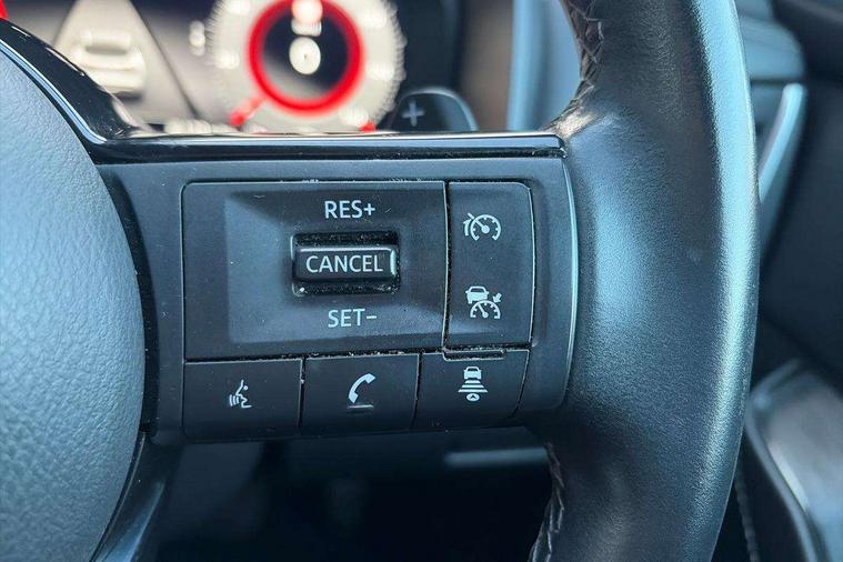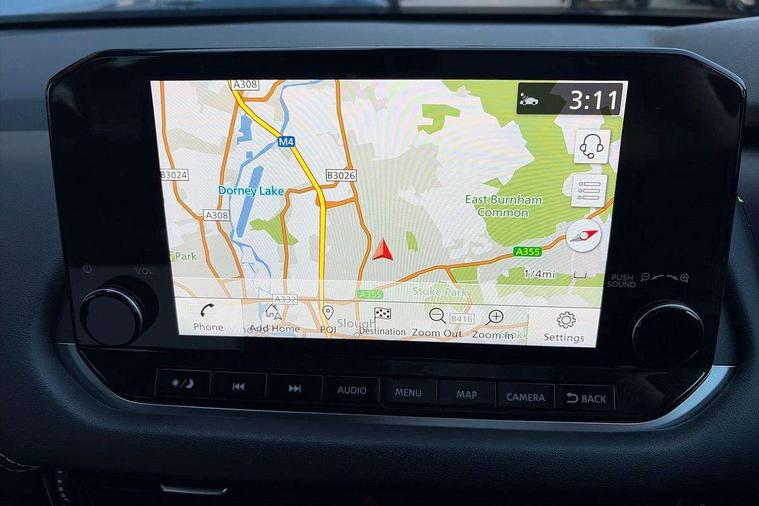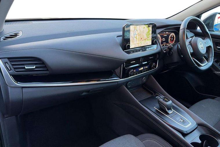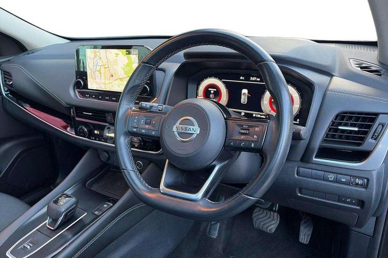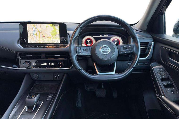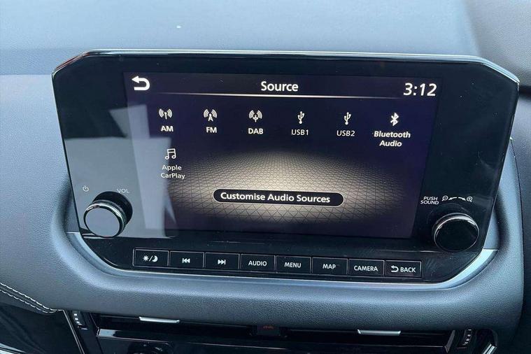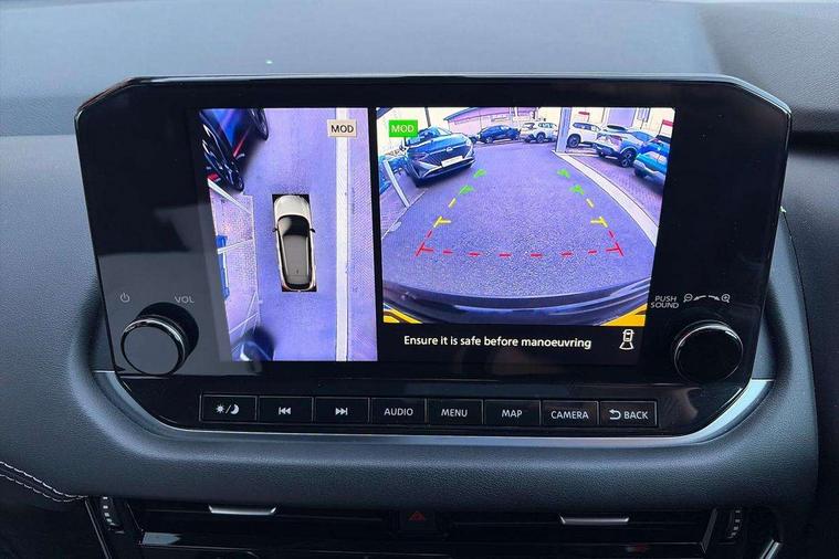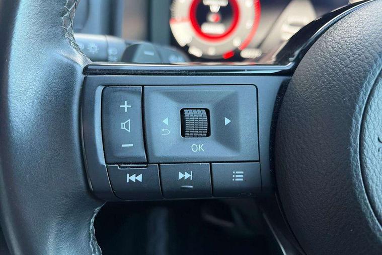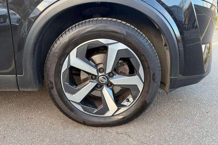 Blind spot warning, Drive modes (sport, normal, eco), Electric speed sensitive power steering, Emergency and breakdown call, Front and rear parking sensors, Full Digital 12.3" TFT Digital Combimeter, Google maps services - search, weather, 3D maps and Google street view, Idle stop/start system, Intelligent around view monitor, Intelligent Cruise control (ICC), Intelligent driver alert system, Intelligent forward collision warning, Intelligent lane intervention, Lane departure prevention, Lane departure warning system, Maximum speed limiter, Moving object detection, Nissan connect 12.3 inch touchscreen infotainment system, Nissan connect navigation, Push button starter, Rear cross traffic alert, Remote control services - door locks, lights, horn and car locator, Telematics - notifications and connectivity services, TomTom live traffic services, Traffic sign recognition with legal speed adjustment, Trip computer, Virtual personal assistant and firmware over the air capability, Wireless Apple CarPlay and wired Android Auto, 6 speakers, AM/FM audio system with DAB, Bluetooth audio streaming, Front USB connections (Type-A and Type-C), Rear USB charging only ports (Type-A and Type-C), Auto dimming rear view mirror, Auto rear wiper when reversing, Automatic hazard signal with emergency stop signal, Body colour mirror caps, Body coloured door handles, Bodyside mouldings, Chrome side window finisher, Door handle with button, Dusk sensor, Electric auto folding door mirrors, Electrically adjustable and heated door mirrors with LED turn indicator, Follow me home headlights, High beam assist, Intelligent auto headlights, LED daytime running lights, LED Headlights, LED rear lights, One touch front and rear electric windows with remote opening and closing, Partially body coloured bumpers, Privacy glass, Rain sensor, Rear bumper with graphite insert, Rear reversing light (bulb lighting), Rear roof spoiler, Rear side wing doors, Rear styling plate, Shark fin antenna, Splash free rain sensing wipers, Super UV and infrared cut glass, Three blink turn signal, 12v power socket in dashboard and luggage, 2 way electrical driver lumbar adjustment, 2x Rear coat hooks, 3 bench rear seats in 2nd row, 3 rear headrests, 4 folding assist grip, 6 Luggage hooks - 4 on floor, 2 on side, 6-way manually adjustable driver's seat, 60/40 split folding rear seat bench, Ambient lighting around centre console, Centre console storage tray, Chrome interior door handles, Cloth monoform upholstery, Driver and front passenger sunvisors with illuminated vanity mirrors, Driver seat back pocket, Dual zone automatic climate control with pollen filter, Front and rear door storage, Front cupholders x 2, Front door with bottle holders, Glovebox with light, Hard trunk cover, Height adjustable front headrests, Leather steering wheel, Luggage board system, Luggage space lighting, Manually adjustable passenger (slide recline + lifter), Multifunction steering wheel, Passenger seat back pocket, PVC front centre console and armrest, Rear armrest with 2 cupholders, Rear door bottle holders, Single front passenger seat, Soft PVC kneepad, Steering wheel gearshift paddles, Steering wheel switches, Sunglasses holder, Tilt/telescopic adjustable steering wheel, Two rear isofix child seat anchorage points with top tether, Welcome light and console tray ambient lighting, 3x3 point rear seatbelt pretensioners + load limiters, ABS, ESP, EBD and brake assist, Active brake limited slip, Auto hold function, Child locks on rear doors, Curtain and front side, far side airbags, Driver and passenger airbags, Driver, passenger and 2nd row rear seat belt reminder, Electronic parking brake, Front seatbelt pretensioners + load limiters, Height adjustable front seatbelts, Hill start assist, Intelligent blind spot intervention, Intelligent front emergency braking with pedestrian, cyclist recognition and junction assist, Intelligent rear automatic braking, Tyre pressure monitoring system, Vehicle dynamic control, Capless fuel filler, Engine immobiliser, Nissan i-key, Remote central door locking with deadlocking, Thatcham Cat.1 alarm, Interior instrumental panel B finisher, 18" Diamond cut alloy wheels, Tyre puncture repair kit,